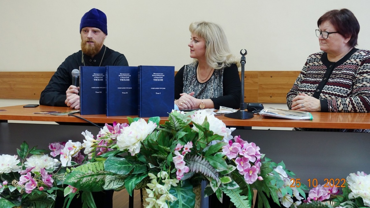 В клубе православных авторов состоялась презентация Собрания трудов Митрополита Новосибирского и Бердского Тихона25 октября 2022 года, в клубе православных авторов «В начале было Слово» состоялась презентация Собрания трудов Митрополита Новосибирского и Бердского Тихона. Клуб православных авторов создан в 2012 году по благословению митрополита Тихона при Новосибирской областной организации «Общество книголюбов». «Настоящий сборник трудов Высокопреосвященнейшего Тихона, митрополита Новосибирского и Бердского, охватывает годы его учебы в Московской Духовной Академии, служения в Троице-Сергиевой Лавре, работы и, впоследствии, руководства Издательским Советом Русской Православной Церкви, служения на Новосибирской кафедре до 2018 года, когда благодарная его духовная паства поздравила своего архипастыря с 70-летием со дня рождения. Издаваемые проповеднические труды владыки митрополита Тихона разнообразны как по своему содержанию, так и по форме. Это послания, слова, беседы, поучения, речи и доклады на различных конференциях и форумах. Но при всем их разнообразии они представляют собой единое целое по духу, являясь исповеданием Святой Православной Веры и свидетельством о святости Православной Церкви Христовой. В своих словах, беседах и поучениях владыка Тихон призывает свою паству к регулярному чтению Святого Евангелия. Он неустанно свидетельствует о том, что именно в слове Божием таится благодатная сила ко спасению всякого верующего (Рим. 1, 16), могущая утешать, целить, очищать и освящать жизнь человека. В проповедническом служении митрополит Тихон следует своему Небесному покровителю- святителю Тихону, епископу Воронежскому, Задонскому Чудотворцу. Святитель Тихон учил: «Святое слово Божие - или слушать, или читать, и в нем часто поучаться весьма нужно, ради следующих причин. Оно веру, без которой, по свидетельству апостола, Богу угодить невозможно, насаждает в нас. Веру насажденную укрепляет и возращает. Надежду утверждает и до конца постоянной соделывает. Любовь к Создателю насаждает и укореняет. Слово Божие любовь и к ближнему делает, благочестивого в благочестии утверждает, в печалех и скорбех утешает, унылых и нерадивых возбуждает, грешников к покаянию обращает. Словом Божиим вся Святая Церковь в вере пребывает, утверждается и спасается» (Святитель Тихон Задонский. Творения. 5-е изд. Т. 1. М., 1889. С. 169-180). Для понимания Священного Писания нужна помощь Божия. Поэтому митрополит Тихон постоянно призывает свою паству к молитве, благодарению, благоговению и стяжанию других добродетелей. Владыка Тихон также постоянно призывает к упражнению ума в чтении и слушании отеческих писаний, житий святых, обогащению своих знаний о православной вере и церковной жизни через обращение к. святоотеческому преданию. Хранение предания, как завещал святой апостол Павел (2 Фес. 2, 15; 1 Тим. 6, 20) - это залог сохранения святой веры православной, благочестия и спасения. Нравственный закон, запечатленный Творцом в сердце человека, и заповеди Божии, начертанные в Священном Писании, - это также важнейшие составляющие в проповедническом служении владыки Тихона. Разъяснением заповедей Божиих наполнены все катехизические беседы и поучения владыки митрополита. Это всецело соответствует словам святого Псалмопевца, призывающего нас поучаться в Законе Г