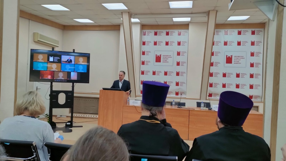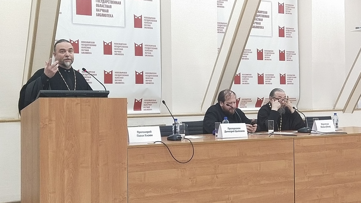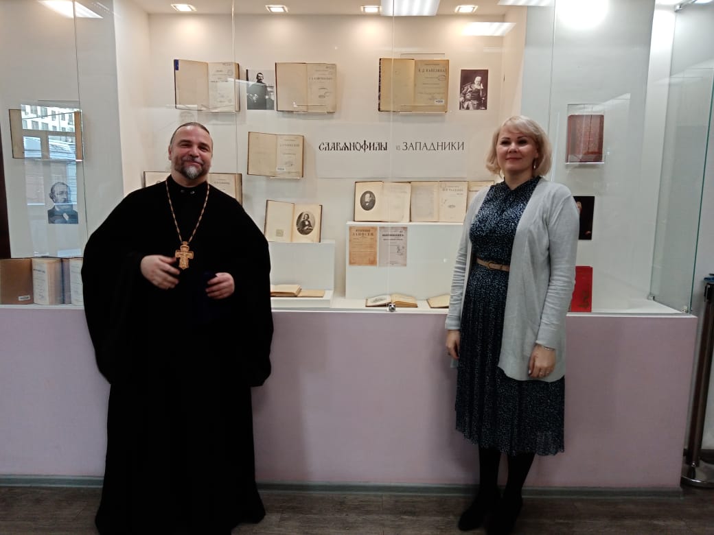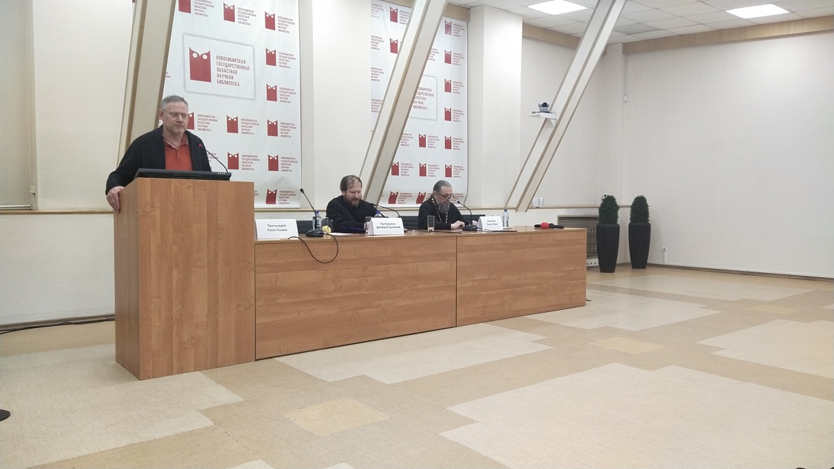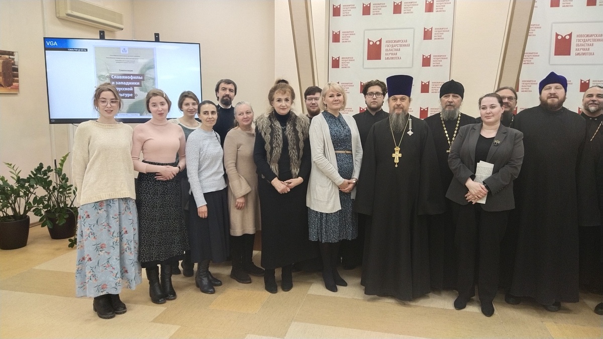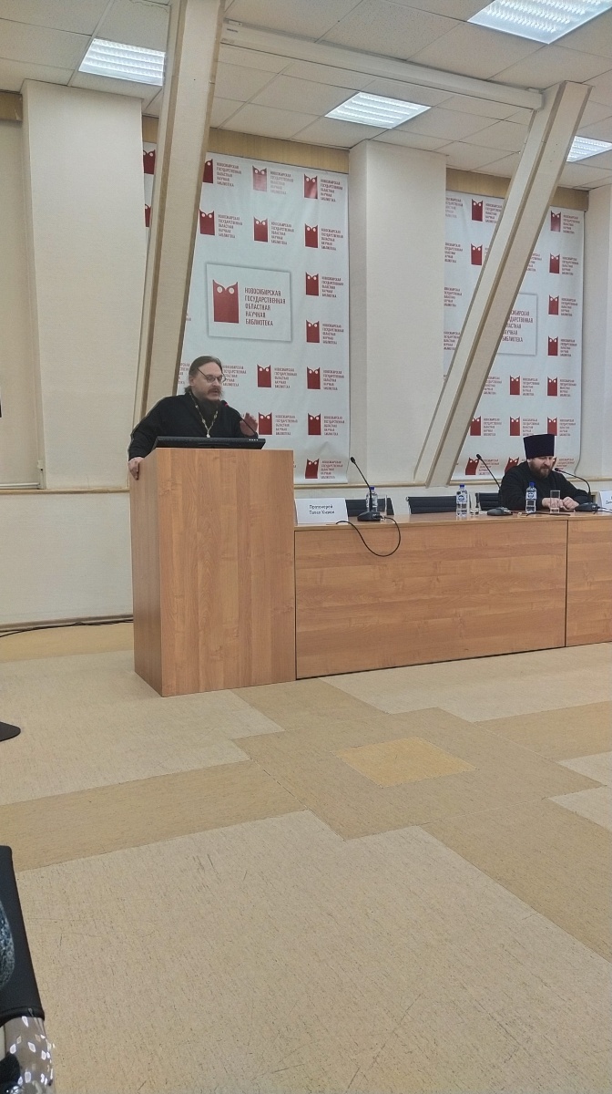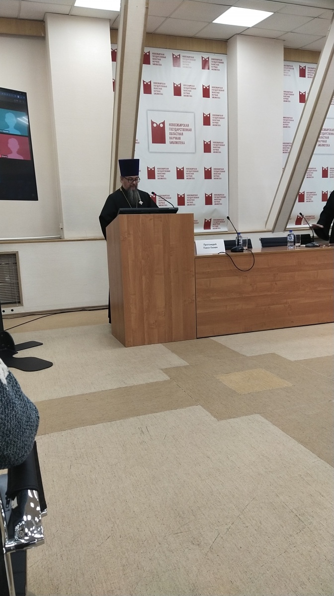 ![]() 24 ноября состоялся Симпозиум «Славянофилы и западники в русской культуре»24 ноября 2022 г. Новосибирская православная духовная семинария провела совместно с Новосибирской государственной областной научной библиотекой научный Симпозиум «Славянофилы и западники в русской культуре». Симпозиум прошел в конференц-зале областной библиотеки. Научный форум собрал более 40 участников из Вузов и научных учреждений. Ректором Семинарии было оглашено приветственное слово участникам от Митрополита Новосибирского и Бердского Никодима. Собравшихся лично поприветствовали Владимир Геннадьевич Деев, заместитель директора по научной и библиотечной работе Новосибирской государственной областной научной библиотеки, а также Ректор Новосибирской православной духовной семинарии протоиерей Павел Кизюн. После чего участники выслушали доклады специалистов, докторов наук по теме Симпозиума. Катасонов Владимир Николаевич, профессор, заведующий кафедрой философии Общецерковной аспирантуры и докторантуры имени святых Кирилла и Мефодия, член Межсоборного присутствия Русской Православной Церкви (г. Москва) сделал онлайн-доклад «Духовная родина и европейские соблазны», посвященный славянофильству и западничеству как магистральным переплетениям отечественной культуры. Далее слушатели имели возможность познакомиться с докладом (в записи) Донских Олега Альбертовича, доктора философских наук, профессора Новосибирского государственного университета экономики и управления «Белинский против Гоголя: проблема духовной неполноценности». В докладе были затронуты темы духовной целостности в отношении критики Гоголя со стороны западников. Долгушин Димитрий, протоиерей, доктор филологических наук, ведущий научный Институт истории СО РАН и преподаватель Новосибирской православной духовной семинарии в докладе «Одно ли сердце билось у русского Януса? Славянофилы и западники в 1840-х годах» очертил конкретные аспекты взаимодействия западников и славянофилов в сороковых годах девятнадцатого века. Завершающим научным докладом симпозиума стало сообщение Кошечко Анастасии Николаевны, доктора филологических наук, доцента кафедры истории и социальной работы Томского государственного университета систем управления и радиоэлектроники, лектора Всероссийского общества «Знание». «Перекрестье Востока и Запада в публицистике и романах Ф.М. Достоевского». Как специалист по творчеству Ф.М. Достоевского Анастасия Николаевна сделала важные обобщения, касающиеся связи публицистики Достоевского, его мыслей и учения с современностью. В перерыве участники форума познакомились с научной и выставочной деятельностью НГОНБ, посетили выставку «Славянофилы и западники в русской культуре». В 13-30 начался круглый стол «Духовное наследие Востока и Запада», который проводил к.филос. н. иеромонах Платон (Флах). На круглом столе выступили к.и.н. Журавлев В.В., Алексеев В.Н., к.ф.н., Цепелева Н.В. к.филос.н., а также докладчики и участники симпозиума. На круглом столе были затронуты важные вопросы взаимоотношения Востока и Запада в отечественной культуре.