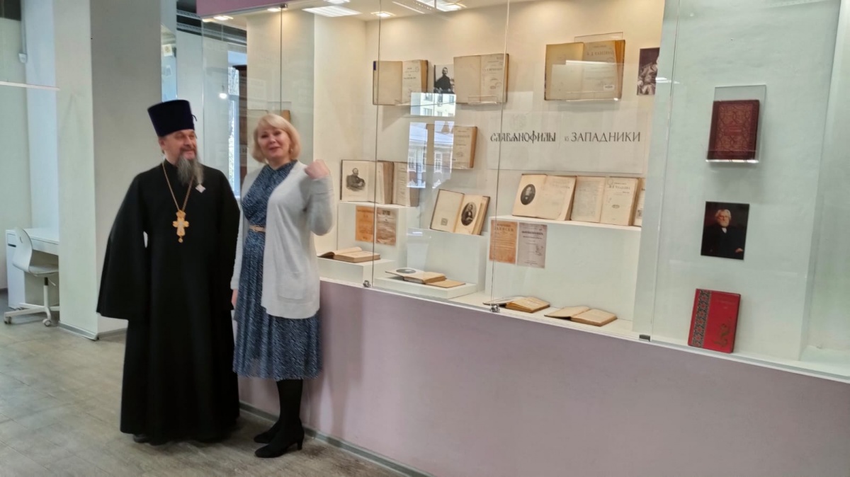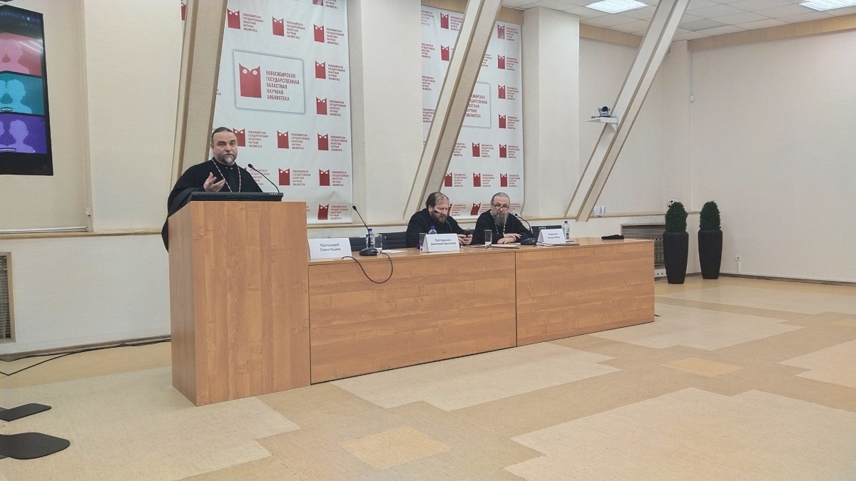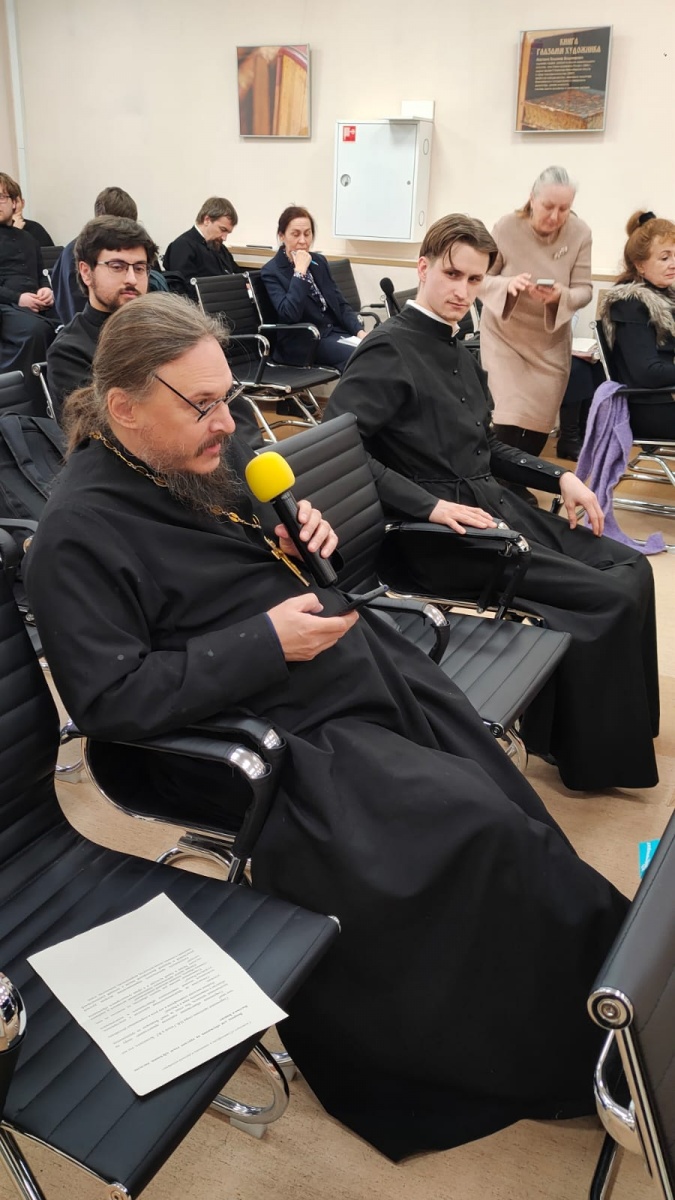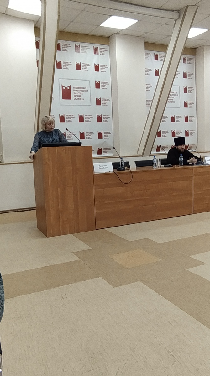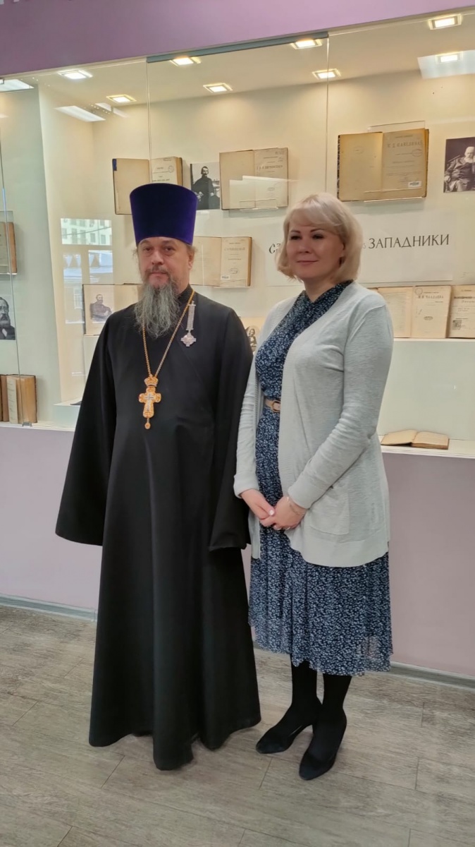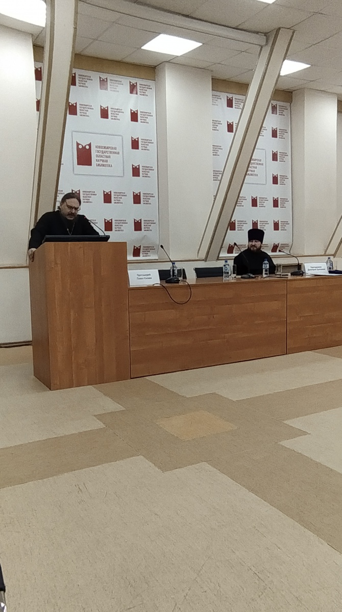 ![]() 24 ноября состоялся Симпозиум «Славянофилы и западники в русской культуре»24 ноября 2022 г. Новосибирская православная духовная семинария провела совместно с Новосибирской государственной областной научной библиотекой научный Симпозиум «Славянофилы и западники в русской культуре». Симпозиум прошел в конференц-зале областной библиотеки. Научный форум собрал более 40 участников из Вузов и научных учреждений. Ректором Семинарии было оглашено приветственное слово участникам от Митрополита Новосибирского и Бердского Никодима. Собравшихся лично поприветствовали Владимир Геннадьевич Деев, заместитель директора по научной и библиотечной работе Новосибирской государственной областной научной библиотеки, а также Ректор Новосибирской православной духовной семинарии протоиерей Павел Кизюн. После чего участники выслушали доклады специалистов, докторов наук по теме Симпозиума. Катасонов Владимир Николаевич, профессор, заведующий кафедрой философии Общецерковной аспирантуры и докторантуры имени святых Кирилла и Мефодия, член Межсоборного присутствия Русской Православной Церкви (г. Москва) сделал онлайн-доклад «Духовная родина и европейские соблазны», посвященный славянофильству и западничеству как магистральным переплетениям отечественной культуры. Далее слушатели имели возможность познакомиться с докладом (в записи) Донских Олега Альбертовича, доктора философских наук, профессора Новосибирского государственного университета экономики и управления «Белинский против Гоголя: проблема духовной неполноценности». В докладе были затронуты темы духовной целостности в отношении критики Гоголя со стороны западников. Долгушин Димитрий, протоиерей, доктор филологических наук, ведущий научный Институт истории СО РАН и преподаватель Новосибирской православной духовной семинарии в докладе «Одно ли сердце билось у русского Януса? Славянофилы и западники в 1840-х годах» очертил конкретные аспекты взаимодействия западников и славянофилов в сороковых годах девятнадцатого века. Завершающим научным докладом симпозиума стало сообщение Кошечко Анастасии Николаевны, доктора филологических наук, доцента кафедры истории и социальной работы Томского государственного университета систем управления и радиоэлектроники, лектора Всероссийского общества «Знание». «Перекрестье Востока и Запада в публицистике и романах Ф.М. Достоевского». Как специалист по творчеству Ф.М. Достоевского Анастасия Николаевна сделала важные обобщения, касающиеся связи публицистики Достоевского, его мыслей и учения с современностью. В перерыве участники форума познакомились с научной и выставочной деятельностью НГОНБ, посетили выставку «Славянофилы и западники в русской культуре». В 13-30 начался круглый стол «Духовное наследие Востока и Запада», который проводил к.филос. н. иеромонах Платон (Флах). На круглом столе выступили к.и.н. Журавлев В.В., Алексеев В.Н., к.ф.н., Цепелева Н.В. к.филос.н., а также докладчики и участники симпозиума. На круглом столе были затронуты важные вопросы взаимоотношения Востока и Запада в отечественной культуре.