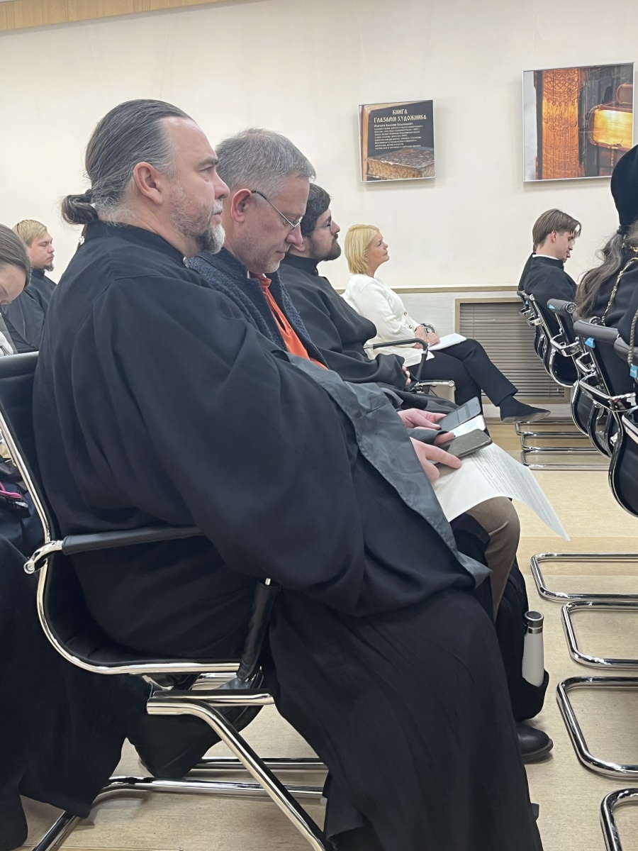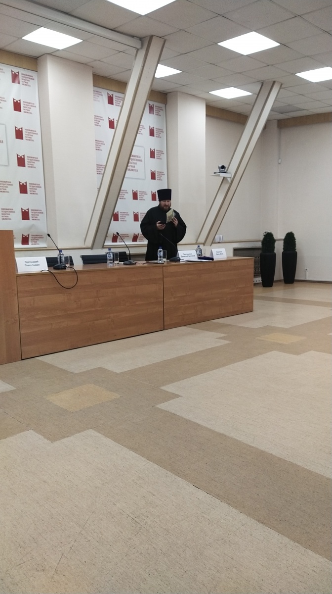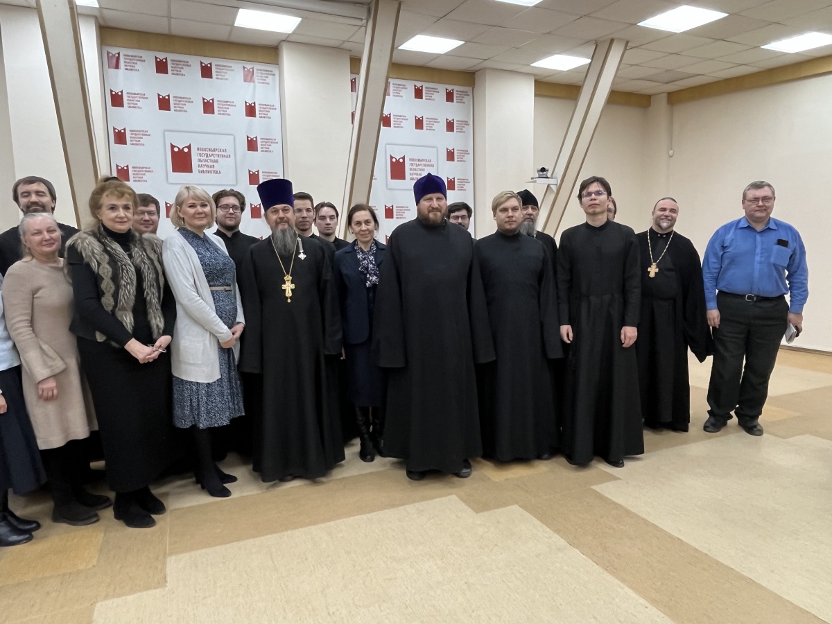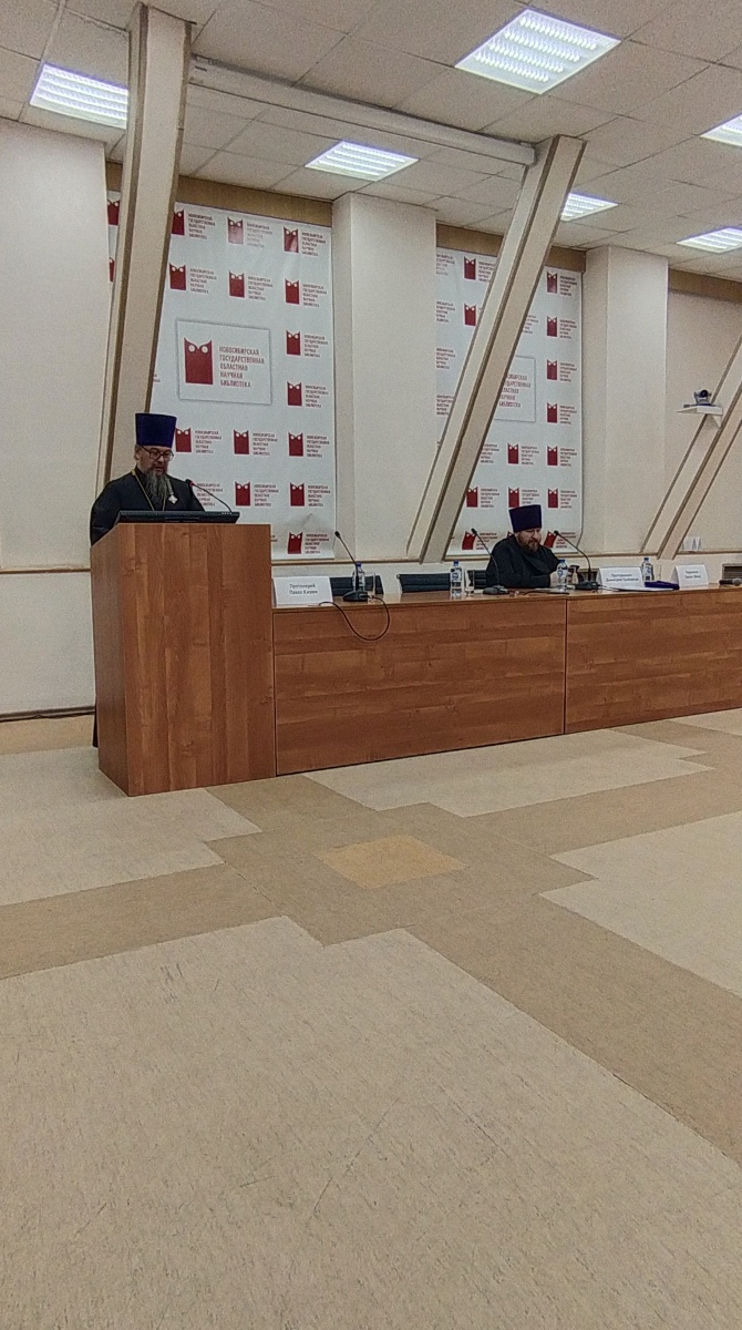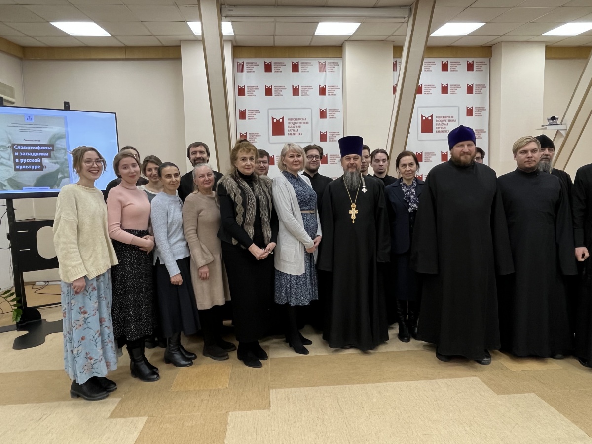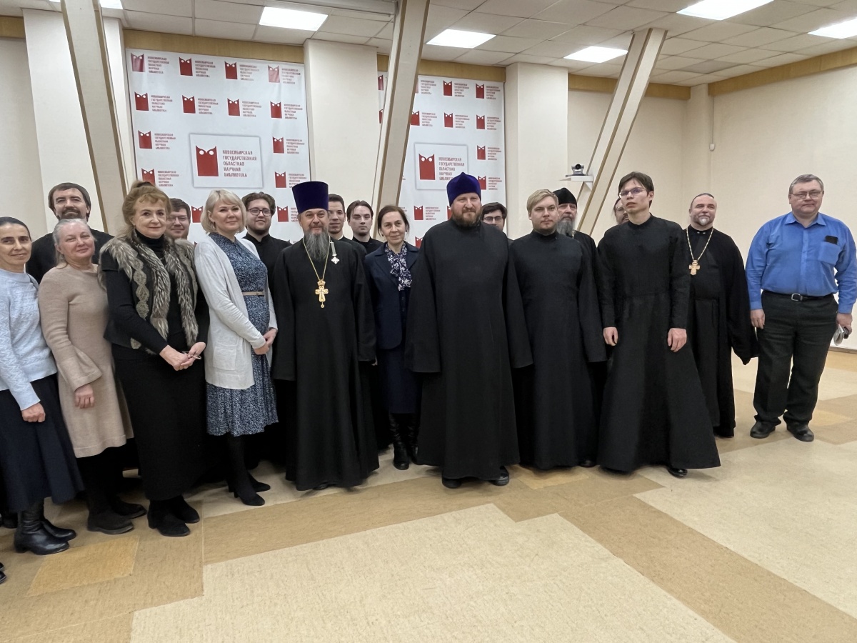 ![]() 24 ноября состоялся Симпозиум «Славянофилы и западники в русской культуре»24 ноября 2022 г. Новосибирская православная духовная семинария провела совместно с Новосибирской государственной областной научной библиотекой научный Симпозиум «Славянофилы и западники в русской культуре». Симпозиум прошел в конференц-зале областной библиотеки. Научный форум собрал более 40 участников из Вузов и научных учреждений. Ректором Семинарии было оглашено приветственное слово участникам от Митрополита Новосибирского и Бердского Никодима. Собравшихся лично поприветствовали Владимир Геннадьевич Деев, заместитель директора по научной и библиотечной работе Новосибирской государственной областной научной библиотеки, а также Ректор Новосибирской православной духовной семинарии протоиерей Павел Кизюн. После чего участники выслушали доклады специалистов, докторов наук по теме Симпозиума. Катасонов Владимир Николаевич, профессор, заведующий кафедрой философии Общецерковной аспирантуры и докторантуры имени святых Кирилла и Мефодия, член Межсоборного присутствия Русской Православной Церкви (г. Москва) сделал онлайн-доклад «Духовная родина и европейские соблазны», посвященный славянофильству и западничеству как магистральным переплетениям отечественной культуры. Далее слушатели имели возможность познакомиться с докладом (в записи) Донских Олега Альбертовича, доктора философских наук, профессора Новосибирского государственного университета экономики и управления «Белинский против Гоголя: проблема духовной неполноценности». В докладе были затронуты темы духовной целостности в отношении критики Гоголя со стороны западников. Долгушин Димитрий, протоиерей, доктор филологических наук, ведущий научный Институт истории СО РАН и преподаватель Новосибирской православной духовной семинарии в докладе «Одно ли сердце билось у русского Януса? Славянофилы и западники в 1840-х годах» очертил конкретные аспекты взаимодействия западников и славянофилов в сороковых годах девятнадцатого века. Завершающим научным докладом симпозиума стало сообщение Кошечко Анастасии Николаевны, доктора филологических наук, доцента кафедры истории и социальной работы Томского государственного университета систем управления и радиоэлектроники, лектора Всероссийского общества «Знание». «Перекрестье Востока и Запада в публицистике и романах Ф.М. Достоевского». Как специалист по творчеству Ф.М. Достоевского Анастасия Николаевна сделала важные обобщения, касающиеся связи публицистики Достоевского, его мыслей и учения с современностью. В перерыве участники форума познакомились с научной и выставочной деятельностью НГОНБ, посетили выставку «Славянофилы и западники в русской культуре». В 13-30 начался круглый стол «Духовное наследие Востока и Запада», который проводил к.филос. н. иеромонах Платон (Флах). На круглом столе выступили к.и.н. Журавлев В.В., Алексеев В.Н., к.ф.н., Цепелева Н.В. к.филос.н., а также докладчики и участники симпозиума. На круглом столе были затронуты важные вопросы взаимоотношения Востока и Запада в отечественной культуре.