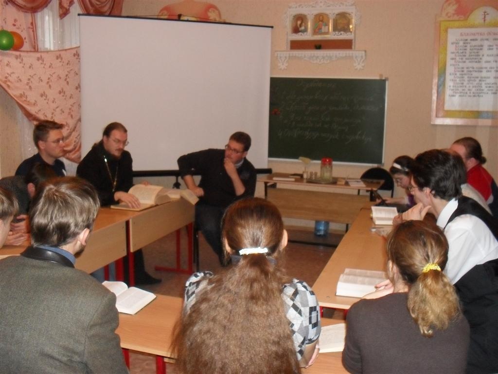 Молодежный слет в Барабинском благочинии. Пять длинных днейЕще на летнем молодежном лагере «Радонеж» возникла идея провести в ноябрьские выходные слет в наиболее удаленном, северо-западном округе Новосибирской епархии, молодежь которого находится в самом «невыгодном» положении: отсюда до Омска ближе, чем до Новосибирска, не всегда и не всем удается выбраться на епархиальные мероприятия. Таким образом, проще было организовать слет на месте, а несколько выходных дней подряд позволили поучаствовать всем желающим. Испросив благословения у Высокопреосвященнейшего Владыки Тихона, мы приступили к работе. Третье ноября, последний день перед выходными, последняя пара в куйбышевском филиале новосибирского педуниверситета. В аудитории пятьдесят человек студентов (кто захотел прийти), несколько преподавателей и два священника: настоятель куйбышевского храма отец Виталий Антонов и я – гость из Новосибирска. Тема беседы – брак и семья, православный взгляд. Тема волнует всех. О том, что тема эта проблемная знают тоже все. Официальная статистика по России: за первый квартал 2010 года такова: заключено 185969 браков - и 153406 разводов, итого более 80% процентов неудач. Это означает, что восемь признаний в любви и верности из десяти закончатся трагедией, по статистике они обречены на провал. А причина у большинства банальная – не сошлись характерами… Что делать, чтобы так не случилось с новыми семьями, вот вопрос, на который мы пытались найти ответ в беседе со студентами в течение полутора часов. Нашли? Не знаю, но ребята, по собственным их словам, многое поняли. Ко всенощной начали съезжаться в храм делегаты слета. Завтра – праздник в честь Казанской иконы Божией Матери, воспоминание освобождения Москвы от католических интервентов, праздник российского народа, объединившегося под знаменами Православия для защиты Отечества. А в государственном календаре – День народного единства. Символично. Хорошее время для начала работы православного молодежного слета. Вечером после службы – ужин в воскресной школе храма в честь Рождества Иоанна Предтечи и совместное чтение молитвенного правила. Завтра нам предстоит причастие Святых Христовых Таин. Четвертое ноября. Праздничную Литургию служим вшестером, соборно. Отцы, занимающиеся молодежью, приехали сами и привезли своих делегатов из Барабинска, Татарска, Чанов, Кыштовки, но большинство ребят, конечно, куйбышевцы – принимающая сторона. Были гости и из коченевской молодежной группы. Хоть это другое благочиние, но – по той же железнодорожной ветке. Решили тоже поучаствовать. Молебен перед началом слета, обед, а дальше – активная работа: знакомство делегатов, разговор о сути молодежного служения, о тех задачах, которые ставит перед молодежью Церковь. В перерыве – небольшая экскурсия по историческому центру города, для того, чтобы немного развеяться и потом, с новыми силами приступить к работе. После экскурсии – рассказ-презентация о том, что и как можно делать православной молодежи при храме. Чем заполнить занятия молодежного клуба, как провести историческую экспедицию к месту разрушенной церкви, как организовать турпоход, как привлечь заинтересованных людей. Яркие фотографии на экране, многообразие возможных форм работы: все это вызывает много вопросов. Главный из них – как адаптировать опыт мо
