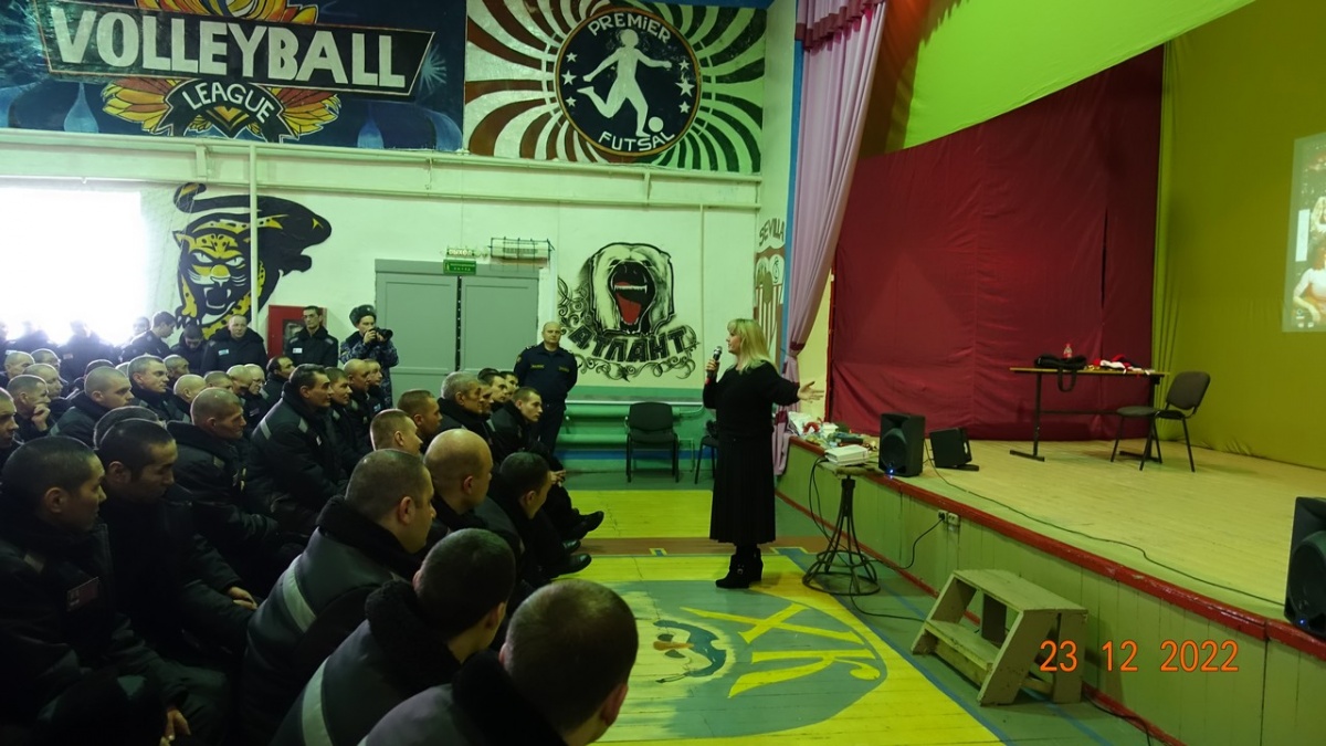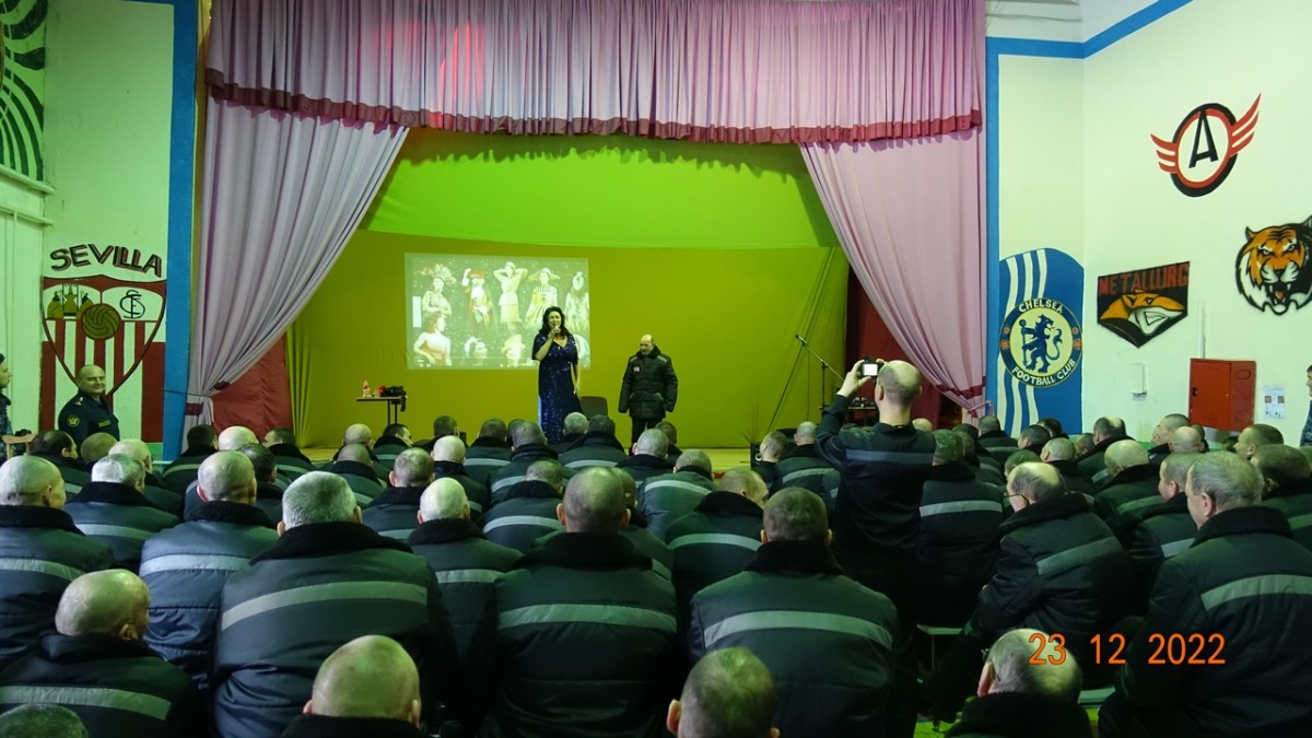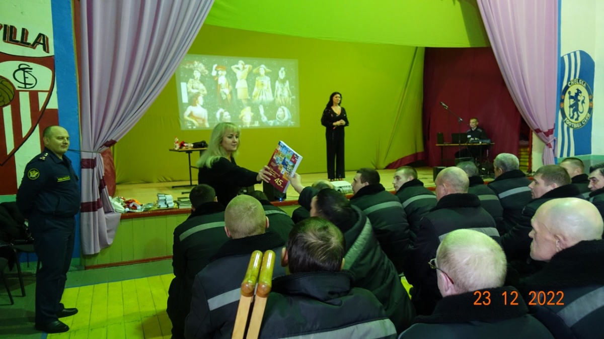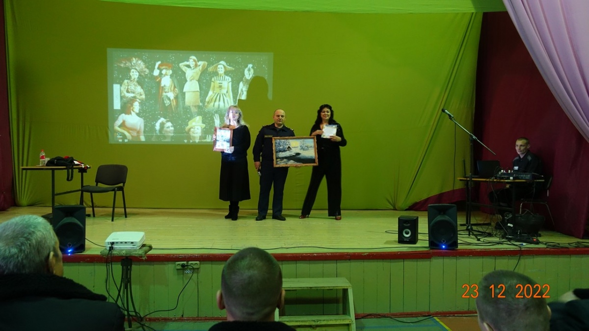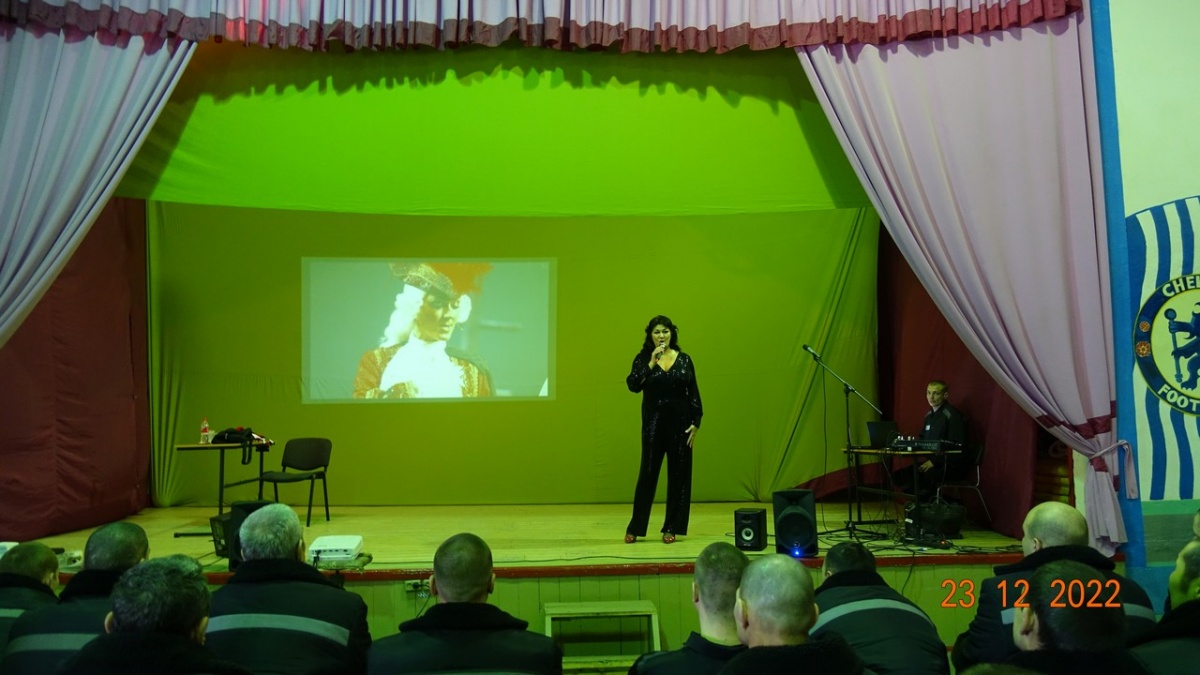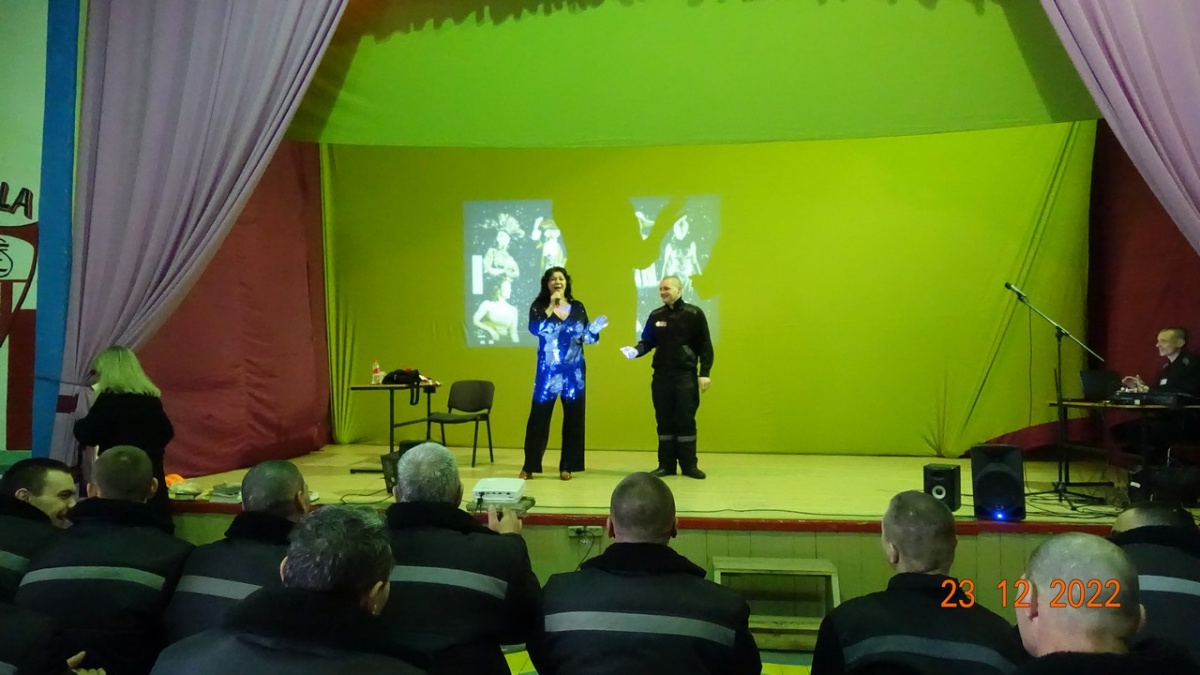 Заслуженная артистка России Вероника Гришуленко, выступила в исправительной колонии № 823 декабря 2022 года, в исправительной колонии строгого режима №8 прошел сольный концерт Вероники Гришуленко – заслуженной артистки России, лауреата национальной премии «Золотая маска», яркой представительницы жанра оперетты и мюзикла. Вероника Гришуленко уже выступала с сольными концертами во всех Новосибирских исправительных колониях, на ее концертах побывало более 1000 тысячи осужденных. Все ее концерты, прошли в рамках благотворительной акции «Давайте улыбнемся». Акция проходит в исправительных учреждениях с 2007 года и включает в себя проведение культурно-просветительских мероприятий. Вероника Гришуленко - солистка Новосибирского музыкальной театра, обладательница великолепного лирико-колоратурного сопрано, лауреат премии «Парадиз». В ее исполнении прозвучали шлягеры из мировых оперетт, романсы из кинофильмов, песни о Великой России. На концерте, в исправительной колонии № 8 побывало около 300 осужденных. От клуба православных авторов «Новосибирского общества книголюбов» в колонию переданы: альманахи творческих работ, журналы «Душа», газеты «Вестник Новосибирской митрополии», иконы и духовно-просветительская литература. Заместитель начальника учреждения полковник внутренней службы Олег Карамышев, вручил артистке благодарственное письмо от руководства ИК-8 ГУФСИН России по Новосибирской области и подарок, сделанный руками осужденных. Зрители долго не расходились, фотографировались на память, брали автографы, благодарили за хорошее настроение и делились друг с другом улыбками, ведь недаром акция называется «Давайте улыбнемся» Автор и руководитель акции «Давайте улыбнемся» - Н. Пендюрина-Капина