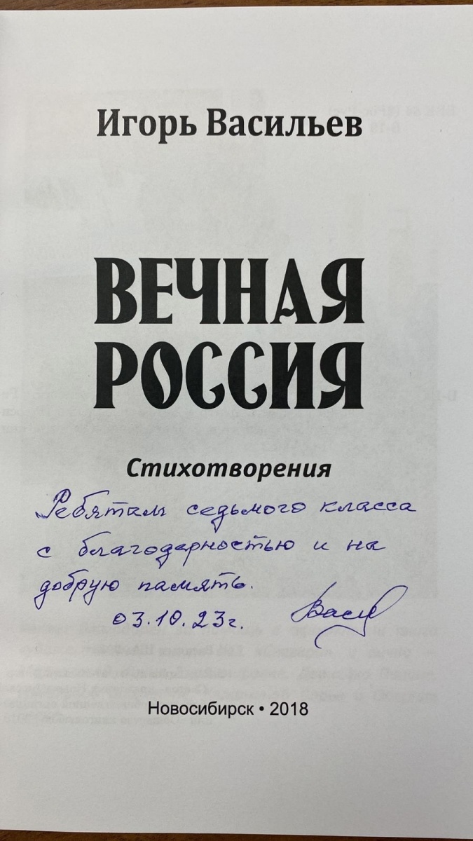«Новосибирские книголюбы» выступили в школе №45Члены клуба православных авторов «Новосибирского общества книголюбов» провели урок мужества «У Отчизны героев не счесть» в "Мочищенской средней школе № 45". Патриотическое воспитание - одно из главных направлений воспитания современного поколения. В учениках необходимо воспитывать гордость за историю страны, за дела предков, способствовать выработке активной жизненной позиции. Перед учащимися 6-х и 7-х классов выступили - историк, поэт, писатель, Лауреат Всероссийских литературных конкурсов Васильев Игорь Алексеевич и писатель, член правления "Новосибирского общества книголюбов " Ганьшин Вадим Леонидович. Встреча прошла при содействии члена клуба православных авторов «В начале было Слово» Новосибирского общества книголюбов., атамана ХКО "Станица Никольская" НОКО СВКО., члена общественного совета по взаимодействию с МВД по Новосибирскому району Панченко Игоря Григорьевича. В библиотеку школы были переданы книги Новосибирских поэтов и писателей. пресс-служба «Новосибирского общества книголюбов»