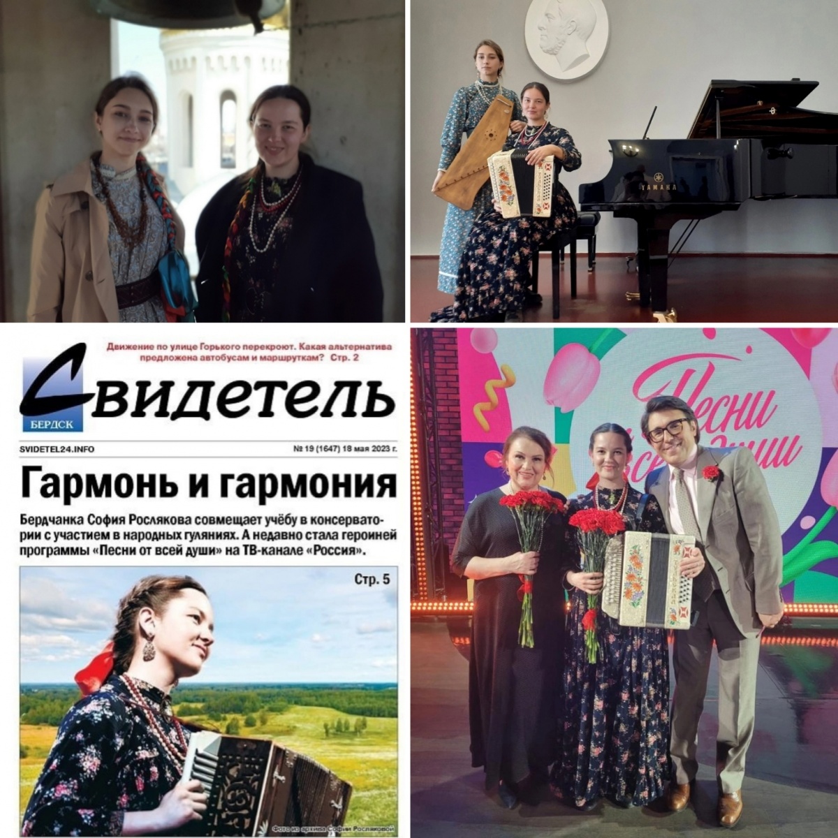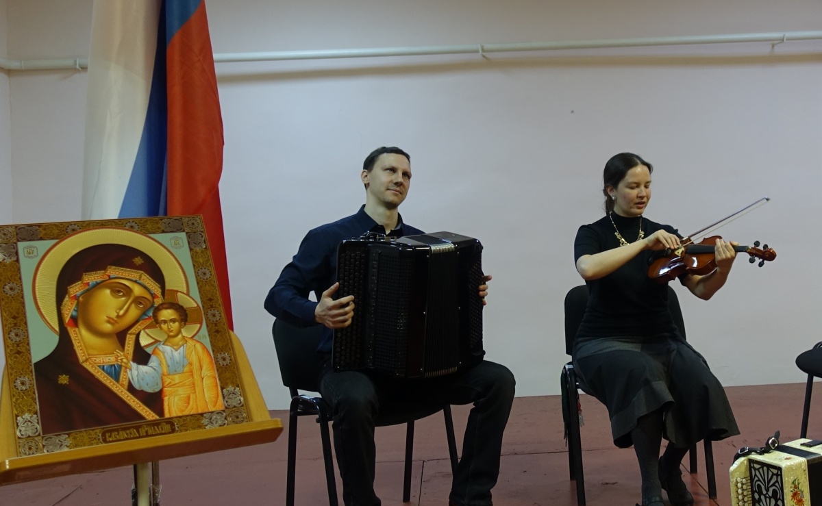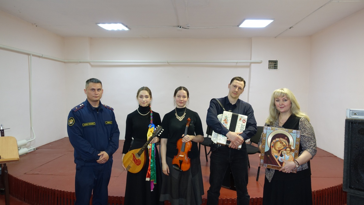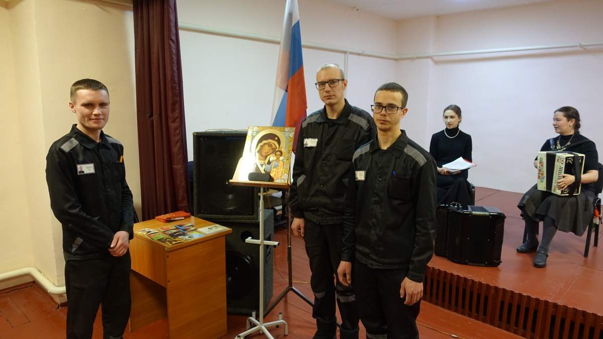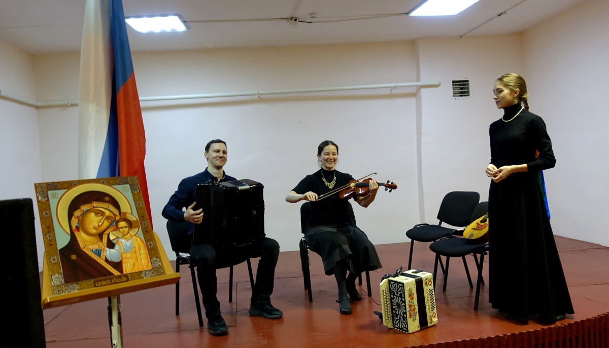 Концерт «Христос, Весна, Победа!» прошел в исправительной колонии №3.В исправительной колонии №3 прошел праздничный, патриотический концерт ансамбля народных инструментов «Христос, Весна, Победа!». В концерте приняли участие: Кузнецов Юрий (ведущий), Усенко Александра (вокал) и София Рослякова (вокалист-инструменталист) София Рослякова –певица, мультиинструменталист, играет на фортепиано, баяне, различных видах гармоней и балалайке. Лауреат всероссийских и международных конкурсов. София студентка Новосибирской государственной консерватории имени Глинки по классу баяна, класс профессора Чернички Г.П. Закончила Новосибирский областной колледж культуры и искусств по классу баяна и гармони (класс преподавателя Горшкова Е.В.)., Бердскую музыкальную школу имени Свиридова (в классе Вылегжаниной Е.В.). Владеет разными разновидностями гармоник, пишет обработки народных мелодий, играет на вечёрках, аккомпанирует певцам и плясунам, проводит праздники в русских традициях, руководит хором храма в честь Георгия Победоносца в городе Бердске. Участница телепередач "Играй, гармонь" и "Песни от всей души". Лауреат международных конкурсов и фестивалей, в том числе "Играй, гармонь!", "Мир Сибири" и других. Соавтор проекта "Времена года" для оркестра русских народных инструментов и фольклорного ансамбля, лауреат межрегионального Сибирского конкурса молодых исполнителей на народных инструментах имени А.Н. Романова, музыкальный руководитель трио "Во поле". Концерт «Христос, Весна, Победа!» прошел в рамках культурно-просветительского проекта «Давайте улыбнемся». Руководитель проекта журналист, руководитель «Новосибирского православного общества книголюбов» Наталья Пендюрина. https://vk.com/n.pendyurinakapina В концерте прозвучали классические произведения великих композиторов, русские народные и патриотические песни, Пасхальные песнопения, песни военных лет, о Родине, войне и о Победе. Концерт «Христос, Весна, Победа!» проходил в клубе исправительного учреждения около двух часов. В завершении мероприятия, начальник отдела по воспитательной работе с осужденными И.С.Рябчук поблагодарил артистов и вручил им благодарственные письма. От "Новосибирского общества книголюбов" в колонию переданы:книги Новосибирских поэтов и писателей, иконы и духовно-просветительская литература. Культурно-просветительский проект «Давайте улыбнемся» продолжается.https://www.youtube.com/@user-wp7dn6cy9z/videos