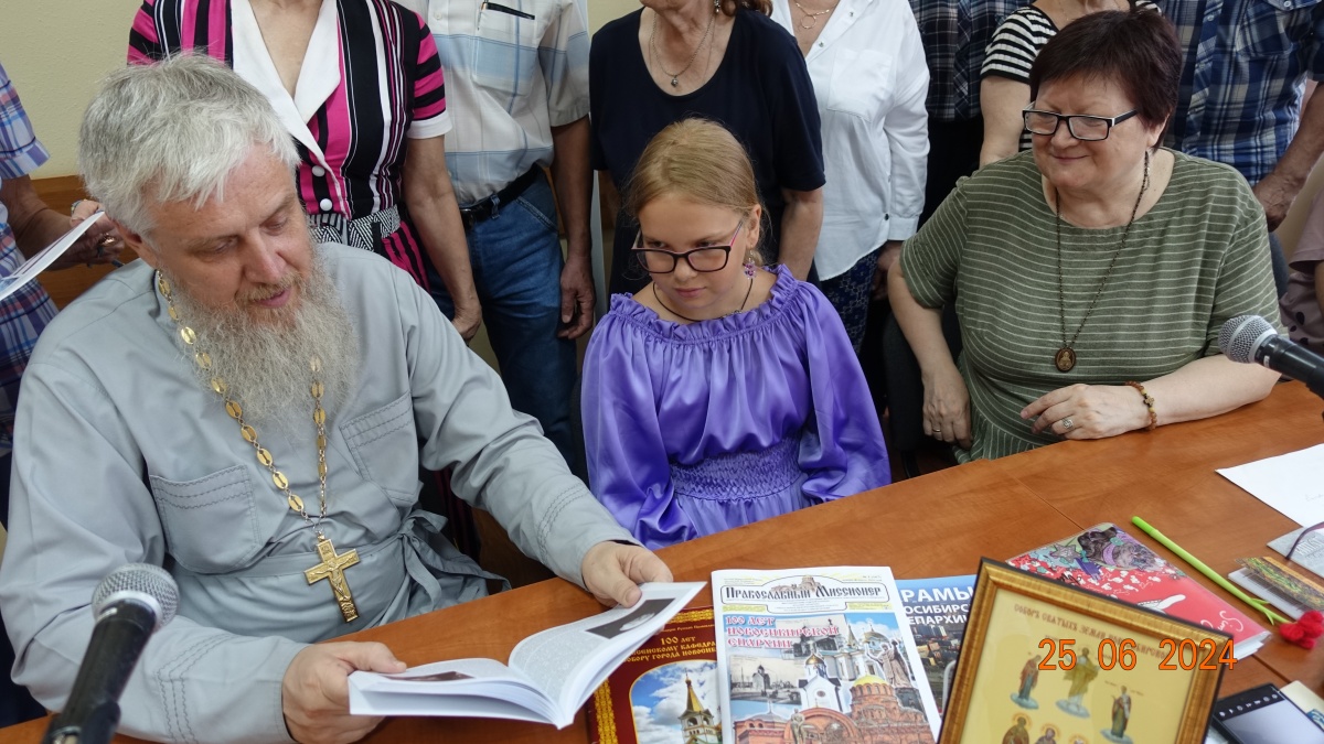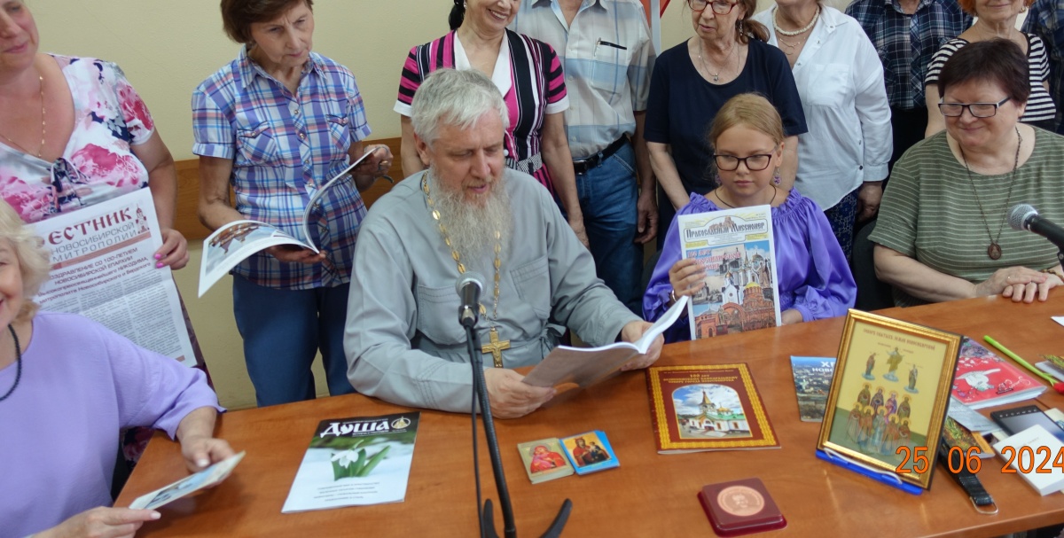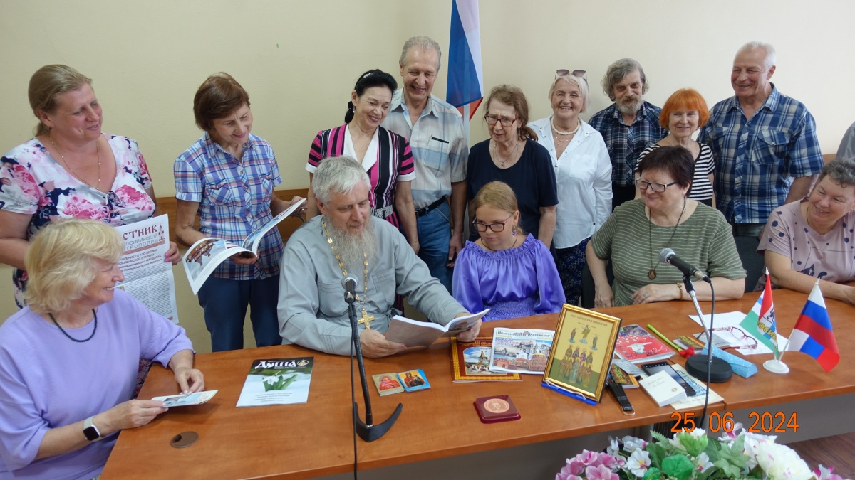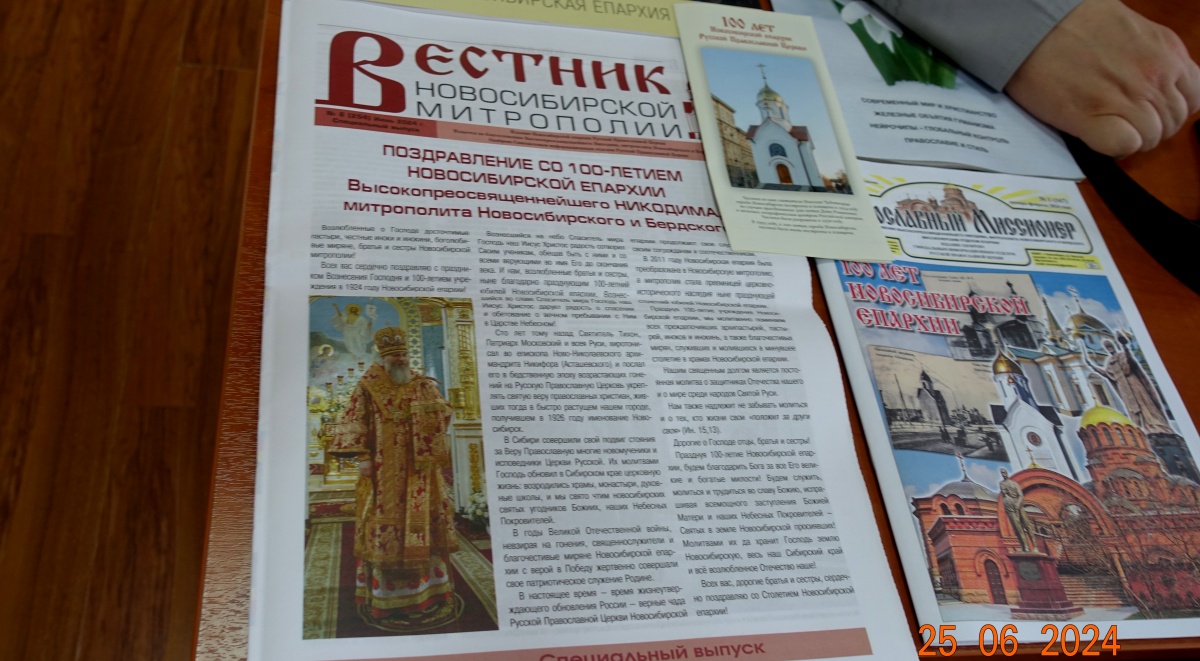 100 –летний юбилей Новосибирской Епархии отметили в клубе Новосибирских православных авторов.25 июня 2024года в клубе православных авторов «В начале было Слово» состоялась очередная творческая встреча, посвященная 100- летию Новосибирской епархии. Клуб создан по благословению Митрополита Тихона при Новосибирской областной общественной организации «Общество книголюбов» в 2012 году. Духовный наставник Новосибирских книголюбов, руководитель Центра милосердия при Вознесенском кафедральном соборе иерей Владимир Добринов, поздравил всех с праздниками. Рассказал о том, как прошли юбилейные торжества в Новосибирской Митрополии и передал в архив «Новосибирского общества книголюбов» икону Собора святых земли Новосибирской, очерк истории Новосибирской Епархии и юбилейный выпуск Епархиального Вестника. Затем батюшка ответил на многочисленные вопросы. Работал «Открытый микрофон» и как всегда звучали стихи. Клуб православных авторов «Новосибирского общества книголюбов» объединяет: поэтов, писателей, издателей, читателей и всех кому интересны основы православной письменности и культуры. Многолетняя деятельность «Новосибирского общества книголюбов» неразрывно связана с Новосибирской Епархией. В 2024 году «Новосибирскому обществу книголюбов» 50 лет. http://infomania.ru/map/?p=8013 В 2012 году, к 75-летию Новосибирской области вышел в свет литературно-краеведческий сборник, совместная книга правительства Новосибирской области и Новосибирской митрополии «ЧУВСТВО РОДИНЫ. ВЕРА И ДЕЛА»Сборник охватил то время, когда началось активное возрождение церковной жизни Новосибирской области – строились новые храмы, открывались православные учреждения образования, начинали действовать социальные институты Церкви. В нем рассказывается о любви жителей к своему региону и России, о трепетном отношении к истории и культуре, о желании созидать и создавать на благо Родины.