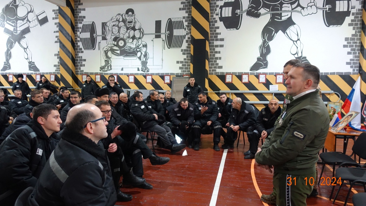 В исправительной колонии №18 состоялась встреча с ветеранами ЧВК Вагнер, участниками Проекта «К».31 октября 2024года, в исправительной колонии строгого режима №18 состоялась встреча с ветеранами ЧВК Вагнер участниками Проекта «К» . Основная цель проведения патриотических мероприятий- формирование осознанного, бережного отношения к своей Родине, её истории, культуре и духовно-нравственным ценностям. Мы живем в тревожное, военное время. Ежедневно, в боях, гибнут наши соотечественники. И наш долг помнить об этом и быть полезными своему Отечеству. Чтобы под давлением потрясений и угроз, происходящих в стране, в душе всех Россиян проросли тихие слова покаянного канона, с которых мы начинаем каждый Великий пост: "Душа моя, душа моя, восстань, что ты спишь? Конец приближается, и ты смутишься; пробудись же, чтобы пощадил тебя Христос Бог" В мероприятии приняли участие ветераны СВО, участники Проекта «К». В 2022 году осужденные из Новосибирских исправительных колоний, вступили в ряды ЧВК «Вагнер» для участия в специальной военной операции на Донбассе. Именно так, начинался проект «К». Впоследствии их стали называть «кашники». То есть, заключенным дали возможность искупить свою вину кровью, приняв участие в СВО, в обмен на помилование и возможность вернуться в нормальную жизнь. Тысячи бойцов проекта «К» отдали свою жизнь в боях за Родину. Многие из них награждены государственными наградами России. Все судимости с них сняты, их биографии очищены и сейчас, те, кто вернулись живыми домой готовы жить и работать на благо Родины. В мероприятии приняли участие ветераны СВО. Все они, мужественно сражались за Родину. У всех есть боевые награды. Среди них Олег Снигирев-сибиряк, ветеран СВО, герой ЛНР, награжден золотой звездой героя Луганской Народной Республики. А так же орденом мужества, двумя медалями за отвагу, медалью участника операции "Бахмутская мясорубка", медалью "За взятие Бахмута (Артемовска), медалью" чёрный крест" ЧВК Вагнер, "Пурпурный крест" ЧВК Вагнер. Встреча состоялась по инициативе куратора Новосибирской группы ветеранов боевых действий «Проекта К» ЧВК Вагнер, журналиста Натальи Пендюриной. Нами запланировано провести ряд патриотических мероприятий, в том числе и в исправительных учреждениях Новосибирска. Н.В.П. Пресс-служба НОООК «Проект К»https://vk.com/n.pendyurinakapina