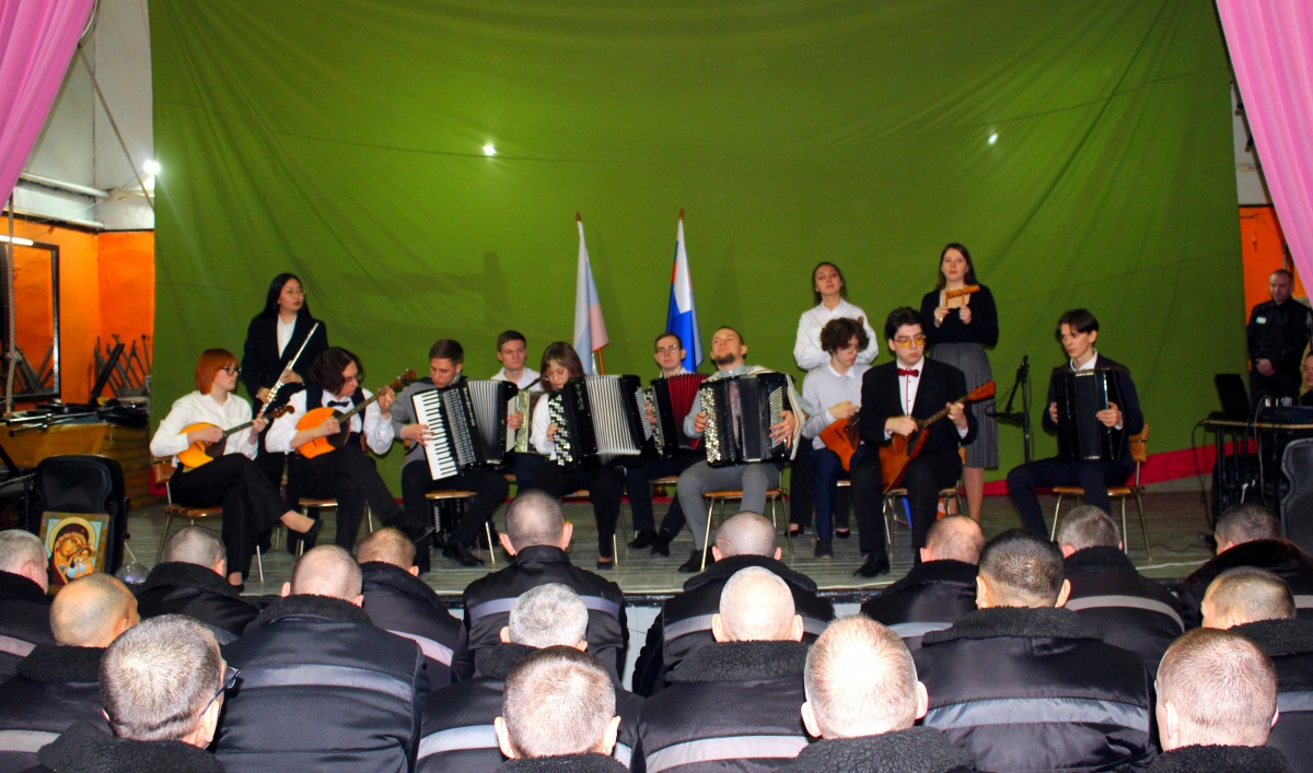 Праздничный гала-концерт «Россия- священная наша держава!» прошел в исправительной колонии №819 февраля 2025 года, в исправительной колонии строгого режима №8, состоялся праздничный гала-концерт «Россия- священная наша держава!» В концерте приняли участие четыре творческих коллектива. Ансамбль танца «Сибирь» (руководитель Ольга Валерьевна Федоскина), ансамбль народных инструментов «Эксклюзив» (рук.Надежда Михайловна Катковская), вокальная студия «NETI SOUD”-(рук. Гребенчук Владислав Евгеньевич), коллектив dance group "New Siberia” (рук.Орлов Илья Викторович) Творческие коллективы восьмой раз выступают в Новосибирских исправительных учреждениях. За это время, на их концертах побывало более трех тысяч осужденных. Центр культуры в НГТУ основан в 1993 году. В его состав входит более 20 творческих коллективов, многие из которых являются неоднократными лауреатами всероссийских и международных фестивалей и конкурсов. В коллективах занимается около 800 студентов и сотрудников университета. Ансамбль танца "Сибирь", ансамбль народных инструментов "Эксклюзив", вокальная студия «NETI SOUD”-лучшие из лучших. Творческие коллективы являются участниками многих конкурсов и фестивалей, масштабных праздников, таких как День города., Парад Российского студенчества., Российская Студенческая Весна., День Победы и мн.др. Концертная программа была яркой и насыщенной. В завершении концерта от администрации колонии№8, всем творческим коллективам были вручены благодарственные письма и подарки, сделанные осужденными в рамках кружковой работы. Концерт состоялся в рамках социального проекта «Давайте улыбнемся», который проходит в исправительных учреждениях ГУФСИН России по Новосибирской области с 2006 года и включает в себя проведение патриотических, культурно-просветительских мероприятий. (руководитель проекта журналист Наталья Пендюрина).https://vk.com/n.pendyurinakapina От «Новосибирского православного общества книголюбов» на всех мероприятиях пропагандируется и распространяется духовно-просветительская литература и иконы. Пресс-служба «Новосибирского православного общества книголюбов»