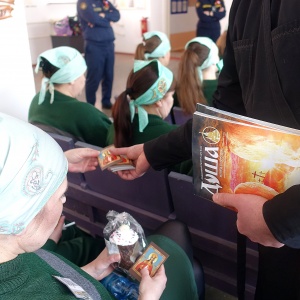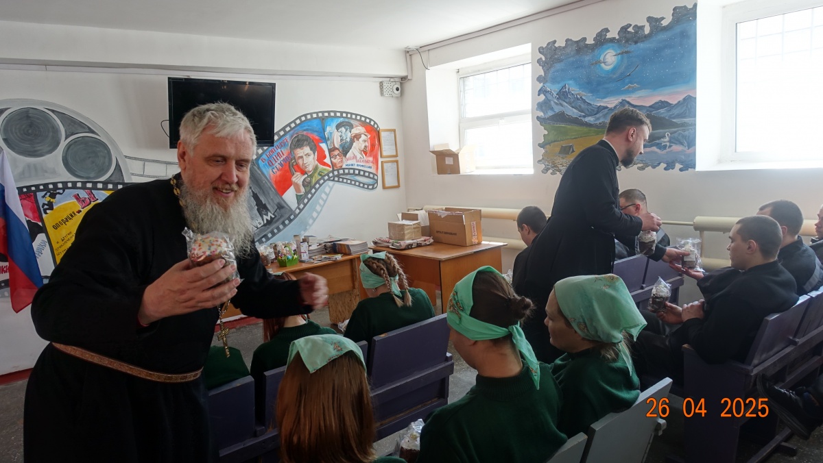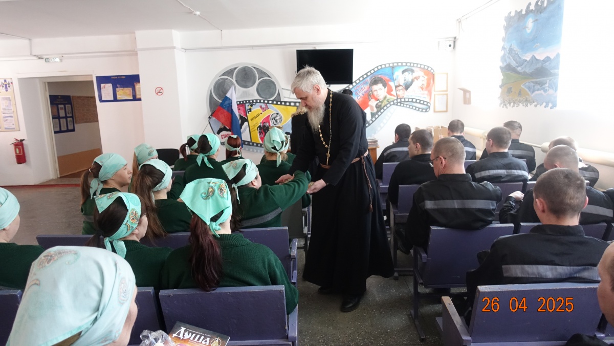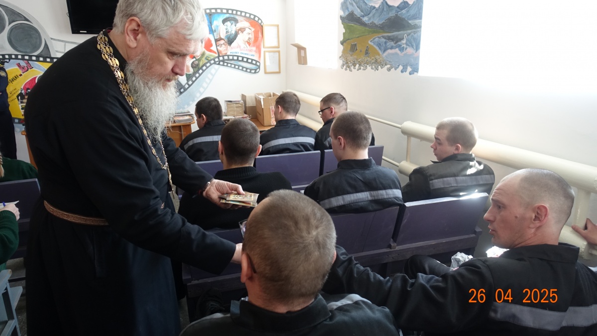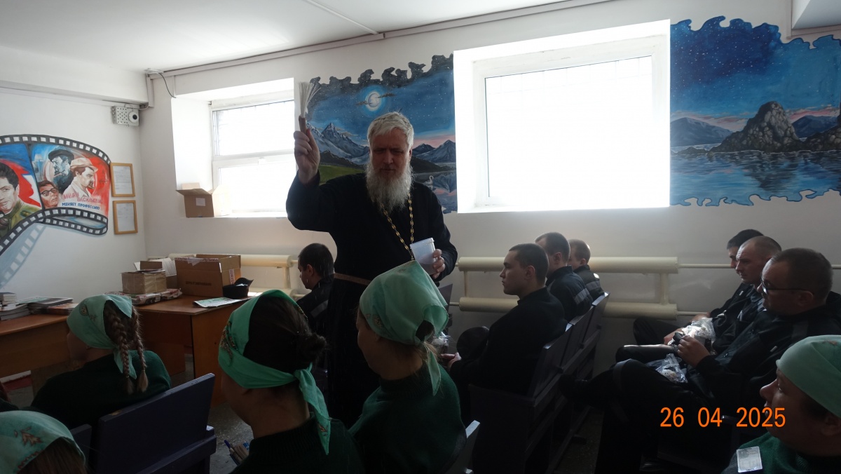 В СИЗО 1 встретили праздник Светлого Христова Воскресения26 апреля 2025года, в СИЗО 1 состоялось торжественное мероприятие посвященное празднику Светлого Христова Воскресения и 80-летию со Дня Победы в Великой Отечественной Войне «Вера вечна, Вера славна - наша Вера Православна!» В мероприятии приняли участие священнослужители Вознесенского Кафедрального Собора Новосибирской Епархии: руководитель центра милосердия при Вознесенском кафедральном соборе иерей Владимир Добринов, диакон Сергий Ходаковский и журналист Наталья Пендюрина. Мероприятие прошло в рамках просветительского цикла «Духовно- нравственные ценности, как основа народного единства». Основной смысл просветительского цикла – тесное переплетение духовности и государственности, морали и нравственности. На планируемых встречах-беседах, осужденные смогут приобрести знания основ православной письменности и культуры. Священнослужители поздравили осужденных с праздником Великой Пасхи, рассказали историю праздника и пропели пасхальные часы. Отцы пожелали всем присутствующим, быть терпимее друг к другу и приумножать любовь к родной земле. Пасхальные гостинцы - освященные куличи, конфеты, иконы и духовную литературу подарили всем присутствующим. Так же на встрече говорили о 80-летнем юбилее со Дня Победы в Великой Отечественной войне, подвигах героев России и о любви к Родине. Священники вместе с осужденными пропели «Вечную память» «вождям и воинам, жизнь свою за веру и Отечество положившим». Христос Воскресе! журналист Н.Пендюрина https://vk.com/n.pendyurinakapina