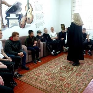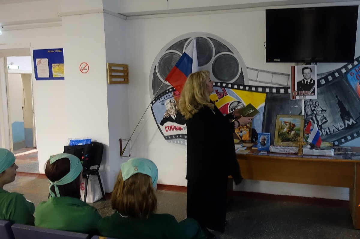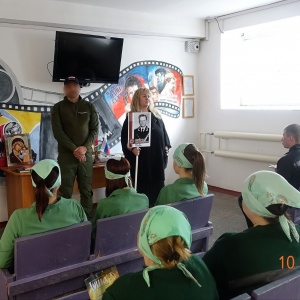 Она провела презентацию двух сборников стихов «Я не ушел», «По зову сердца», изданных в РИЦ «Новосибирского общества книголюбов» и рассказала осужденным о своих героических предках, участниках Великой Отечественной Войны, которые научили ее любить свою Родину.