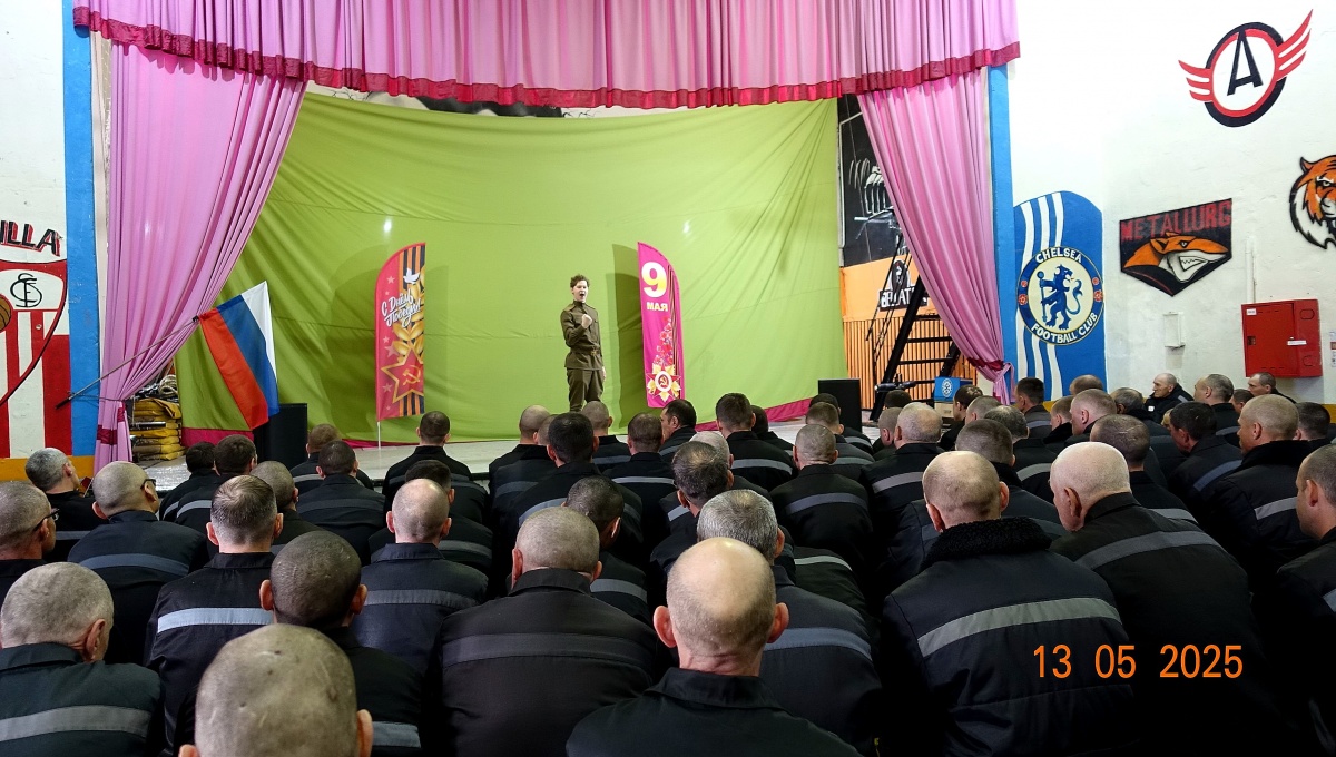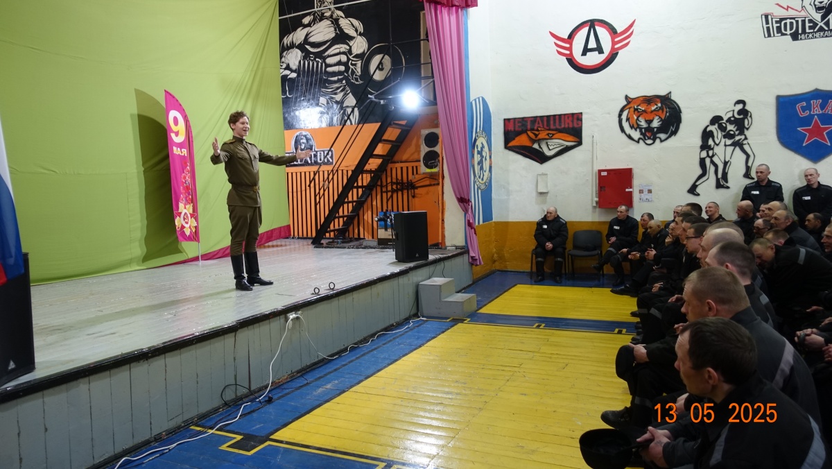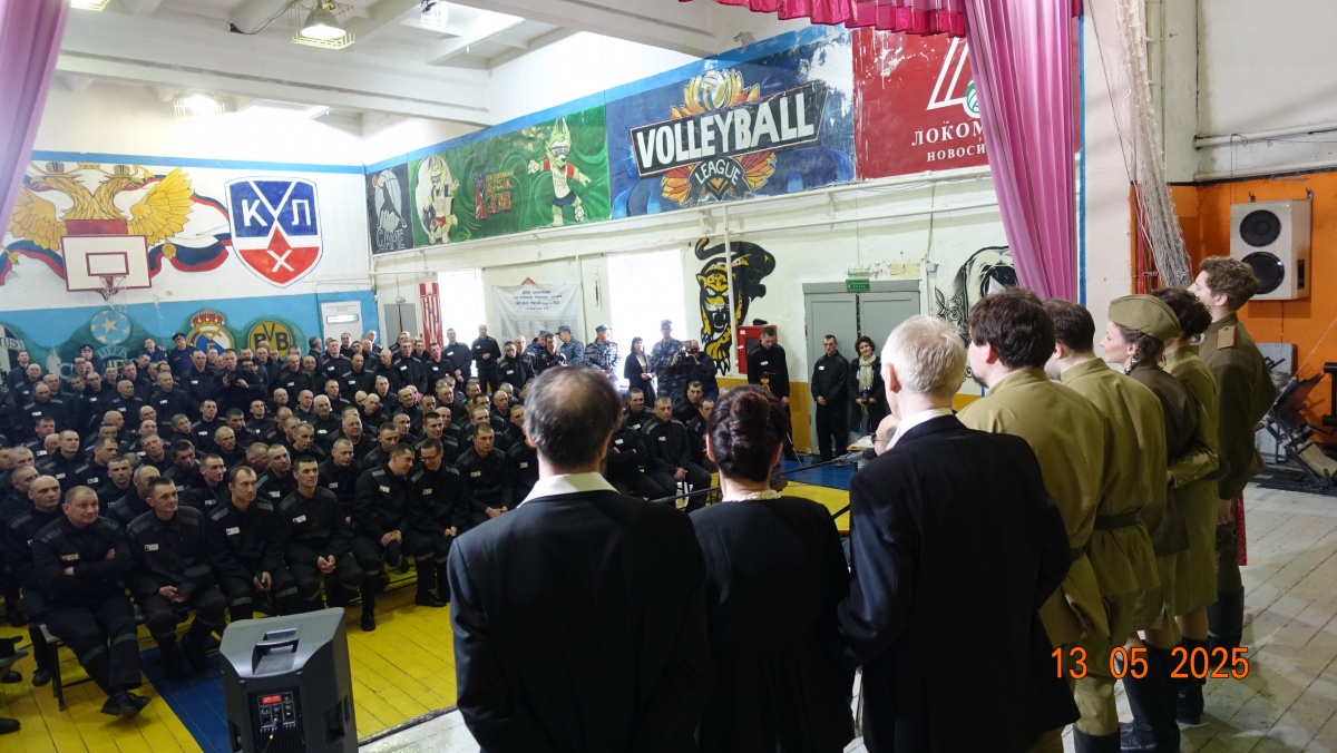 «Новосибирский городской драматический театр под руководством Сергея Афанасьева" выступил в исправительной колонии №813 мая 2025 года «Новосибирский городской драматический театр под руководством Сергея Афанасьева" посетил исправительную колонию строгого режима №8. Актеры представили зрителям свой новый музыкально-поэтический концерт-спектакль "Новосибирск поры военной", подготовленный специально к 80-летию со Дня Победы в Великой Отечественной войне. Показ спектакля прошел в рамках социального проекта «Давайте улыбнемся». Автор и руководитель проекта Наталья Пендюрина. Музыкально-поэтический концерт-спектакль "Новосибирск поры военной" рассказывает зрителям о большом вкладе в Великую Победу нашего родного Новосибирска, заслуженно носящего гордое звание "Город трудовой доблести". Спектакль посвящен памяти великого подвига нашего народа, а также истории нашего города Новосибирска. Со сцены театра прозвучали стихотворения и песни о судьбах тех, кому довелось оказаться в горниле тяжелых испытаний тех страшных лет войны. О военном быте, фронтовой дружбе и любви, о простом ежедневном подвиге солдат и тружениках тыла. Музыкально-поэтический концерт-спектакль "Новосибирск поры военной" смогли увидеть более 300 осужденных. Остальные увидят спектакль в записи по кабельному телевидению. Новосибирский городской драматический театр являет собой уникальный в нашем городе пример авторского театра, основателем и художественным руководителем которого является Сергей Николаевич Афанасьев. Театр выступает в исправительных учреждениях уже третий раз. Руководство ГУФСИН России по Новосибирской области выражает благодарность всему коллективу театра за интересный спектакль, важную и полезную информацию об истории нашего города и за доставленную радость увидеть игру настоящих прекрасных актеров, патриотов нашей страны. "Одним из основных направлений пенитенциарной пробации является воспитательная работа с осужденными. В рамках этого направления проводится большое количество мероприятий, в том числе с привлечением общественности, такие как сегодняшний спектакль одного из ведущих театров нашего региона. Мероприятия, проводимые в рамках социального проекта "Давайте улыбнемся" будут продолжены" - прокомментировал заместитель начальника ГУФСИН России по Новосибирской области Денис Репной. Пресс-служба «Новосибирского общества книголюбов» https://vk.com/n.pendyurinakapina
