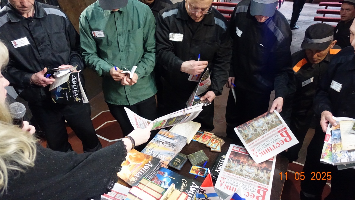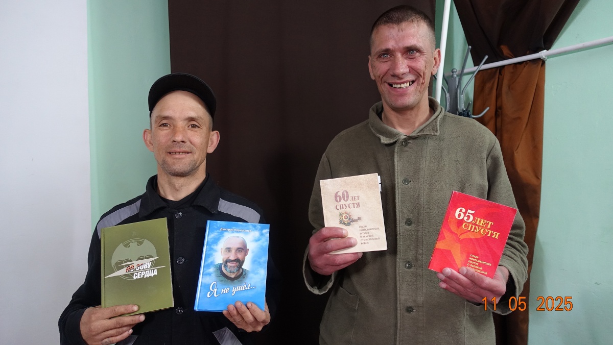 В ИК №10 состоялась встреча посвященная 80-летию со дня Победы в Великой Отечественной Войне "О героях былых времен"11 мая 2025 года, в ИК №10 состоялась встреча посвященная 80-летию со дня Победы в Великой Отечественной Войне «О героях былых времен». Мероприятие прошло в рамках просветительского цикла «Духовно- нравственные ценности, как основа народного единства». Перед осужденными ИК 10 выступила руководитель просветительского цикла, журналист Н.В.Пендюрина.Она провела презентацию двух сборников стихов «65 лет спустя, «Я не ушел», изданных в РИЦ «Новосибирского общества книголюбов» и рассказала о своих героических предках, участниках Великой Отечественной Войны, которые научили ее любить свою Родину. Мой дед (отец отца) Пендюрин Иван Григорьевич (1914-1971) полковник, участник Великой Отечественной Войны, дошел до Берлина и с Победой вернулся в Новосибирск, где продолжил нести службу в Доме офицеров Новосибирского гарнизона. Награждён: двумя орденами Красной Звезды, орденом Красного Знамени, орденом Отечественной войны II степени, двумя медалями «За боевые заслуги», медалью «За Победу над Германией в ВОВ 1941–1945 гг.», медалью «За взятие Будапешта». Похоронен на Новосибирском военном кладбище. Мой дед (отец матери) Виктор Викторович Копылов (1910-1969) и его жена, моя бабушка Любовь Ефимовна Поляева (1913-1983) были актерами первого Новосибирского драматического театра. В 1944 году приказом отдела искусств Новосибирского Облисполкома, для художественного обслуживания фронта была командирована в Москву бригада артистов Новосибирского театра в составе 10 человек. Они были в составе этой бригады. Это была единственная фронтовая бригада, сформированная из артистов Новосибирских театров. Группа артистов Областного драматического театра находилась в командировке в 1944-1945 годах. За это время артисты дали 250 концертов в воинских подразделениях на линии фронта. Главная задача артистов состояла в том, чтобы создать непринужденную, праздничную атмосферу - дать полный отдых и поднять дух бойцам. В театральном музее хранится дневник актера и руководителя бригады - Копылова Виктора Викторовича, в котором собраны истории о героях былых времен - защитниках нашего Отечества» От Сибирского книжного союза «Новосибирского общества книголюбов» в библиотеку учреждения были переданы журналы и книги. Пресс-служба «Сибирского книжного союза» Новосибирского общества книголюбов. https://vk.com/n.pendyurinakapina