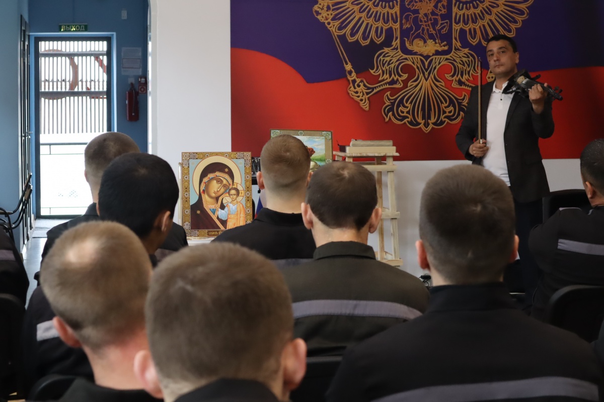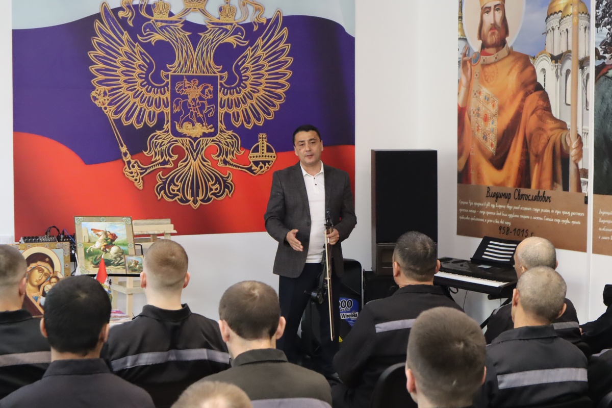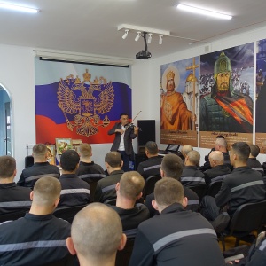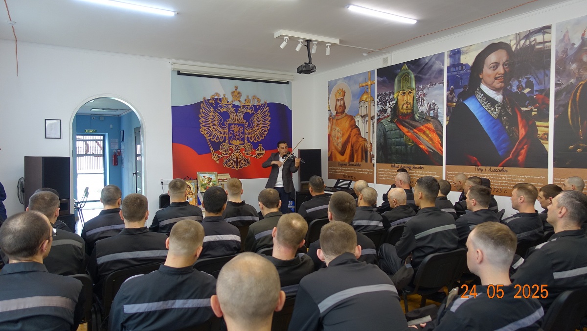 Патриотический концерт скрипача-виртуоза Давида Агиняна прошел в колонии № 1824 мая 2025года, в честь 80-летия со Дня Победы в Великой Отечественной Войне, в исправительной колонии строгого режима №18 состоялся патриотический концерт скрипача виртуоза Давида Агиняна – «В единстве наша сила!» Давид Агинян – композитор, скрипач-виртуоз, лауреат Всероссийских музыкальных конкурсов играет на электроскрипке. Концерты известного музыканта, с успехом прошли во всех уголках России. На его концертах звучит классика, джаз, рок. Электроскрипка – особенный инструмент, с ее помощью мир услышал новое звучание классических композиций. Электроскрипка имеет ряд отличий от акустической. Она может издавать более мощный звук, который не будет теряться среди оркестра, при этом контролировать силу звучания может сам музыкант. В концерте прозвучали популярные классические произведения великих композиторов, этническая, Армянская скрипка и другие музыкальные произведения, которые произвели большое впечатление на осужденных. С начала 2022 года, Давид объехал с благотворительными концертами почти все районы Новосибирской, Кемеровской, Томской областей. Выступил в Хакасии, Удмуртии, Калининграде, Владивостоке, в Херсонской области. Благотворительные сборы с концертов (около миллиона рублей) он отправил в спец.фонды в поддержу специальной военной операции. На счету Давида более 700 благотворительных выступлений по всей России. В мае 2025 года, Давид был награжден знаком «За содействие специальной военной операции» В концерте так же, приняли участие музыканты из ик18. Давид Агинян, в рамках социального проекта «Давайте улыбнемся», в шестой раз выступил в Новосибирской колонии. Одной из ключевых основ данного проекта является прививка чувства патриотизма. Формирование любви к своей стране, уважения и гордости к ее истории, культуре и духовно-нравственным ценностям. Автор и руководитель проекта Н.Пендюрина. https://vk.com/n.pendyurinakapina