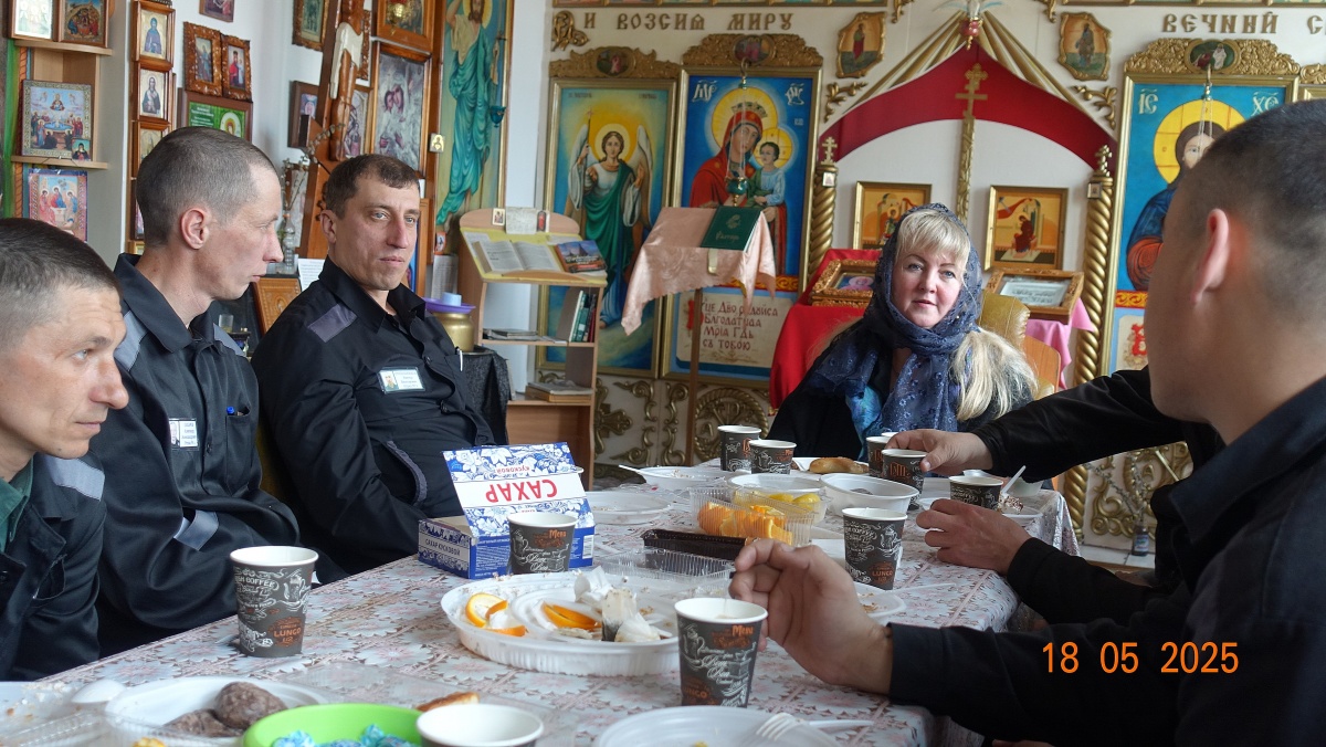 В ик 8 слушатели курса «Нравственные ценности, как основа народного единства» отметили день рождения своего руководителя.18 мая 2025 года, в православном храме Святой Великомученицы Анастасии Узорешительности, действующем на территории исправительной колонии строгого режима № 8, состоялась просветительская встреча из цикла «Нравственные ценности, как основа народного единства». Основной смысл просветительского цикла – тесное переплетение духовности и государственности, морали и нравственности. На духовно-просветительских встречах-беседах, осужденные получают знания основ православной веры, письменности и культуры. Встреча прошла в особо торжественной обстановке, поскольку была приурочена ко дню рождения руководителя просветительского цикла Наталии Пендюриной. Программа была насыщенной и душеполезной. Сначала был небольшой концерт в клубе, затем чаепитие и беседа в Храме. Вкусные торты, подарки, сделанные своими руками, хорошее настроение и много слов любви. Любовь – основание христианской жизни. Без нее христианский подвиг и все добродетели лишаются смысла: «Если имею дар пророчества, и знаю все тайны, и имею всякое познание и всю веру, так что могу и горы переставлять, а не имею любви, – то я ничто. И если я раздам все имение мое и отдам тело мое на сожжение, а любви не имею, нет мне в том никакой пользы» (1Кор.13:2-3). Основные признаки христианской любви определены апостолом: «Любовь долготерпит, милосердствует, любовь не завидует, любовь не превозносится, не гордится, не бесчинствует, не ищет своего, не раздражается, не мыслит зла, не радуется неправде, а сорадуется истине; все покрывает, всему верит, всего надеется, все переносит» (1Кор.13:4-7). Слава Богу за все! Автор просветительского цикла Н.Пендюрина https://vk.com/n.pendyurinakapina