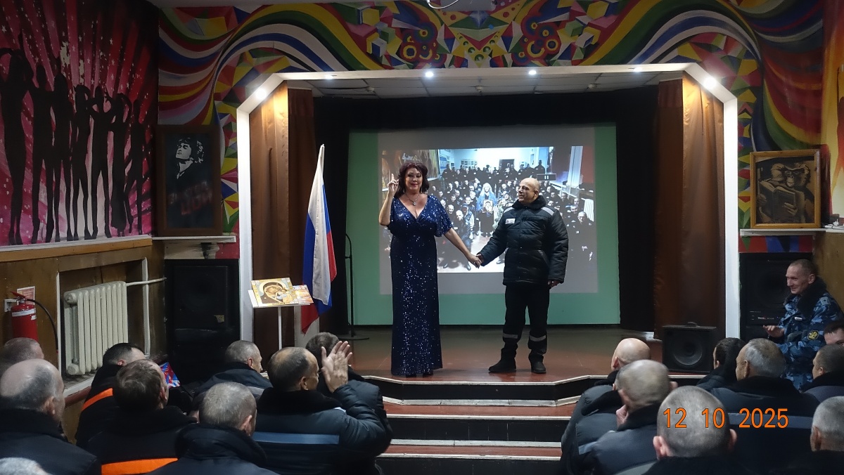 В преддверии Покрова Пресвятой Богородицы в ЛИУ 10 прошел сольный концерт Заслуженной артистки РФ Вероники Гришуленко.12 октября 2025 года, в преддверии праздника Покрова Пресвятой Богородицы в ФКУ ЛИУ 10 состоялось культурно-просветительское мероприятие. Всем присутствующим подарили иконы, духовно-просветительскую литературу, рассказали об истории праздника Покрова Пресвятой Богородицы, о его традициях и значении для каждого верующего христианина. Затем состоялся сольный концерт Вероники Гришуленко – заслуженной артистки России, лауреата национальной премии «Золотая маска». Вероника- солистка Новосибирского музыкальной театра, обладательница великолепного лирико-колоратурного сопрано, лауреат премии «Парадиз», она была и остается одной из звезд города Новосибирска. Талантливая актриса с яркой внешностью исполнила шлягеры из мировых оперетт, романсы из кинофильмов и песни о Великой России. Вероника, уже неоднократно выступала с сольными концертами в новосибирских исправительных учреждениях, на ее концертах побывало более трех тысяч осужденных. Все ее концерты прошли в рамках социального проекта "Давайте улыбнемся" (автор и руководитель Н.Пендюрина) https://vk.com/n.pendyurinakapina