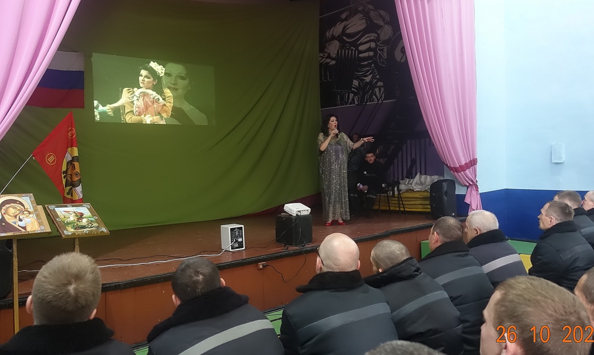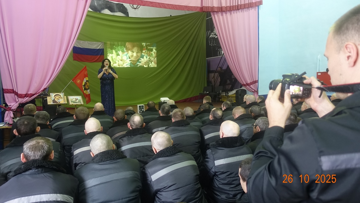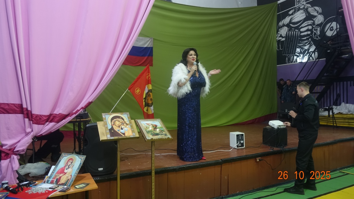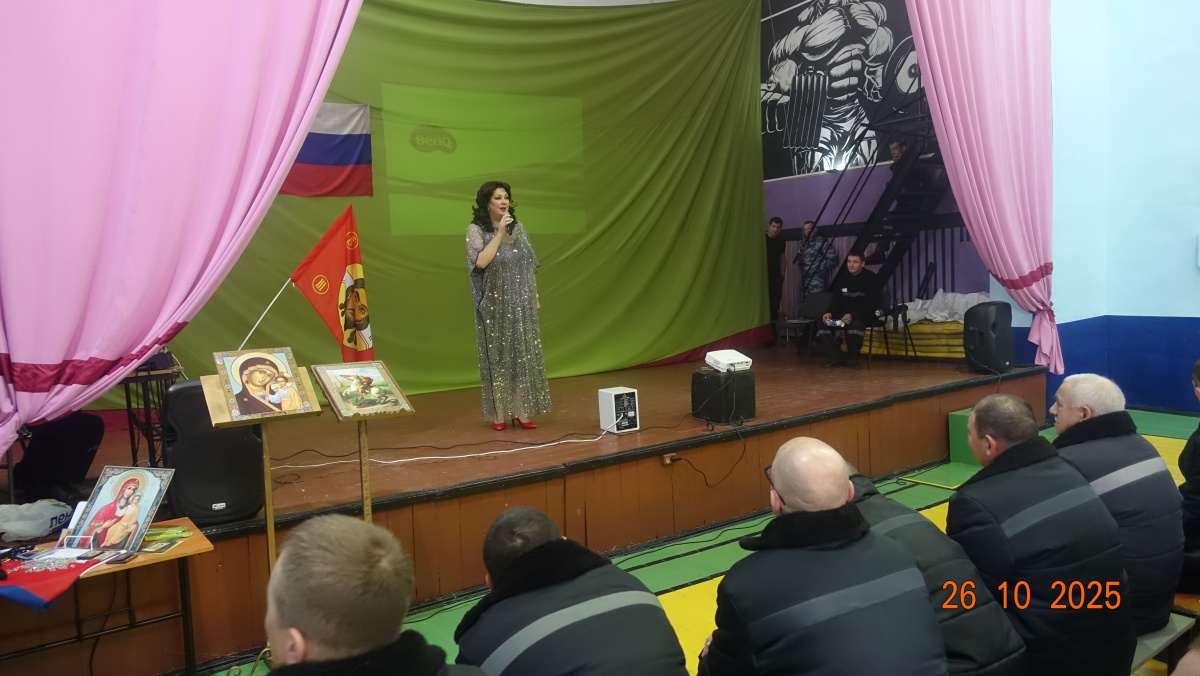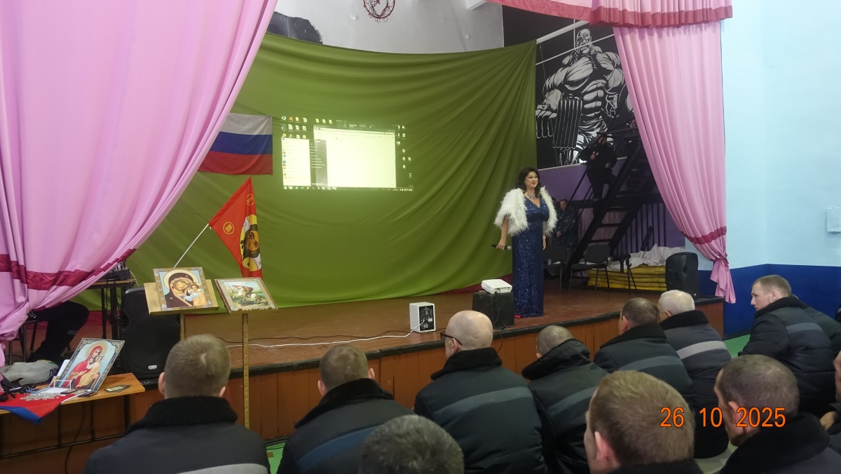 «Нет краше России моей»- сольный концерт Заслуженной артистки РФ Вероники Гришуленко прошел в ик 826 октября 2025 года в исправительной колонии строгого режима № 8 состоялся патриотический концерт Вероники Гришуленко «Нет краше России моей». Вероника- заслуженная артистка России, лауреат национальной премии «Золотая маска», яркая представительница жанра оперетты и мюзикла, солистка Новосибирского музыкальной театра, обладательница великолепного лирико-колоратурного сопрано, лауреат премии «Парадиз». Талантливая артистка с яркой внешностью исполнила шлягеры из мировых оперетт, романсы из кинофильмов и песни о Великой России. Вероника Гришуленко выступала с сольными концертами во всех новосибирских исправительных учреждениях, на ее концертах побывало более трех тысяч осужденных. Все ее концерты состоялись в рамках социального проекта «Давайте улыбнемся». (Автор и руководитель – православный журналист Наталья Пендюрина). «Музыкальный концерт актрисы Вероники Гришуленко, с большим удовольствием послушали все осужденные и сотрудники учреждения. Культурно-просветительские мероприятия положительно влияют на досуг осужденных, расширяют у них кругозор и воспитывают любовь к искусству», - прокомментировал заместитель начальника учреждения Александр Захаркин. От «Новосибирского союза православных авторов» на всех мероприятиях пропагандируется и распространяется духовно-просветительская литература и иконы. Мероприятия данного проекта, никогда и никем не финансировались. Все происходит с помощью Божией. Слава Богу за все. Союз православных авторов «Новосибирского общества книголюбов» https://vk.com/n.pendyurinakapina