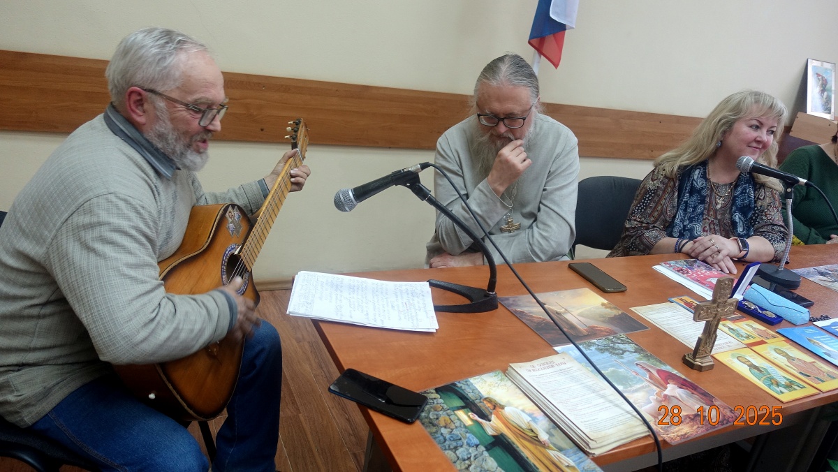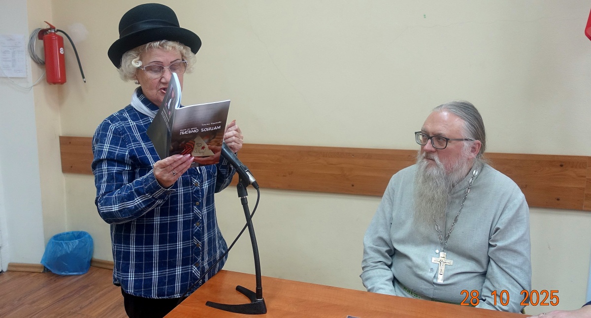 28 октября состоялась встреча протоиерея Алексея Солодкина с православными авторами Новосибирска28 октября 2025 года в клубе православных авторов «В начале было Слово», состоялась встреча с клириком храма иконы Богородицы «Утоли моя печали» протоиереем Алексеем Солодкиным. Отец Алексей читал свои замечательные короткие и очень яркие рассказы о приходской жизни, которых у него накопилось множество. Он рассказывал удивительные истории, которые достались ему от очевидцев и участников этих событий. Удивительно устроены ум и глаза, и память писателя. Он видит жемчуга и изумруды там, где мы замечаем только унылую и грязную дорогу. Простые житейские истории вдруг превращаются в яркие, острые, нравственные тексты, которые хочется слушать бесконечно. Может, Бог даст, когда-то и мы научимся замечать удивительную красоту жизни, которая окружает нас на каждом шагу. Во второй части встречи работал открытый микрофон «Живое слово» – звучали стихи и все желающие делились своими размышлениями о вере и жизни. В более широком смысле, «живое слово» может относиться к самому процессу поиска веры и смысла жизни, который священник помогает человеку найти. На встрече православных авторов состоялось выступление музыкального коллектива «Добродея» (рук. Л.М.Полищук) Клуб православных авторов создан по благословению Митрополита Тихона при Новосибирской областной общественной организации «Общество книголюбов» в 2012 году. Клуб объединяет: поэтов, писателей, издателей, читателей и всех, кому интересны основы православной письменности и культуры. руководитель клуба православных авторов, журналист Н. Пендюрина https://vk.com/n.pendyurinakapina