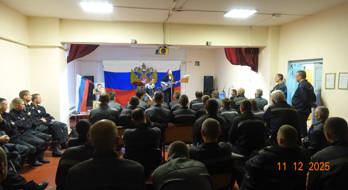 Песни под гитару спели в исправительной колонии №311 декабря 2025 года в исправительной колонии №3 прошел концерт песен Российских композиторов. Хорошая песня- часть нашей культуры, обладает большой силой и объединяет людей. В России много хороших песен, которые стали уже народными. В концерте приняли участие Новосибирские музыканты: лауреат музыкальных конкурсов, преподаватель по вокалу и гитаре Анна Сурикова и барабанщик, преподаватель ударных инструментов Алексей Бачков. В концерте прозвучали популярные музыкальные произведения Российских исполнителей: Надежды Кадышевой, Леонида Агутина, Пелагеи, Олега Газманова, Владимира Преснякова, группы «Любэ» и др. Концерт проходил в клубе колонии около двух часов, в завершении артистам вручили благодарственные письма. Основная цель проведения патриотических мероприятий- формирование осознанного, бережного отношения к своей Родине, её истории, культуре и духовно-нравственным ценностям. Концерт прошел в рамках просветительского проекта «Давайте улыбнемся» (автор Н.Пендюрина). От «Новосибирского союза православных авторов» на всех мероприятиях пропагандируется и распространяется духовно-просветительская литература и иконы. Союз православных авторов«Новосибирского общества книголюбов» https://vk.com/n.pendyurinakapina