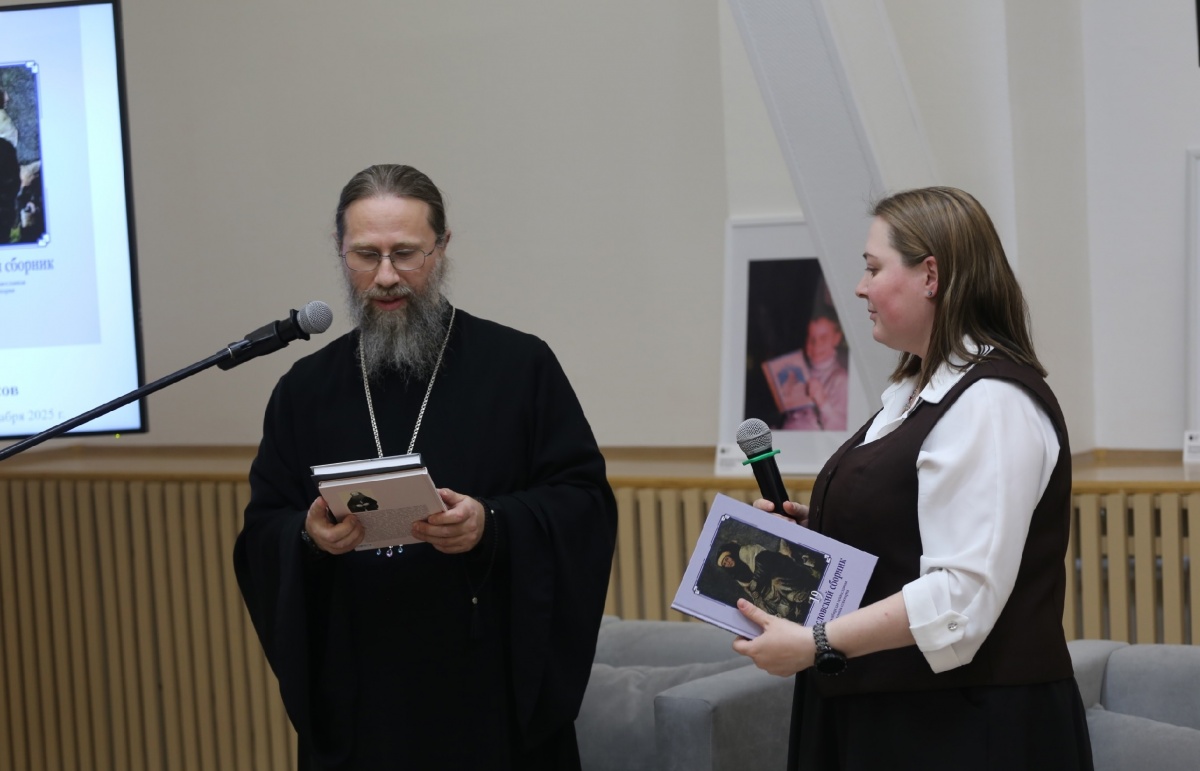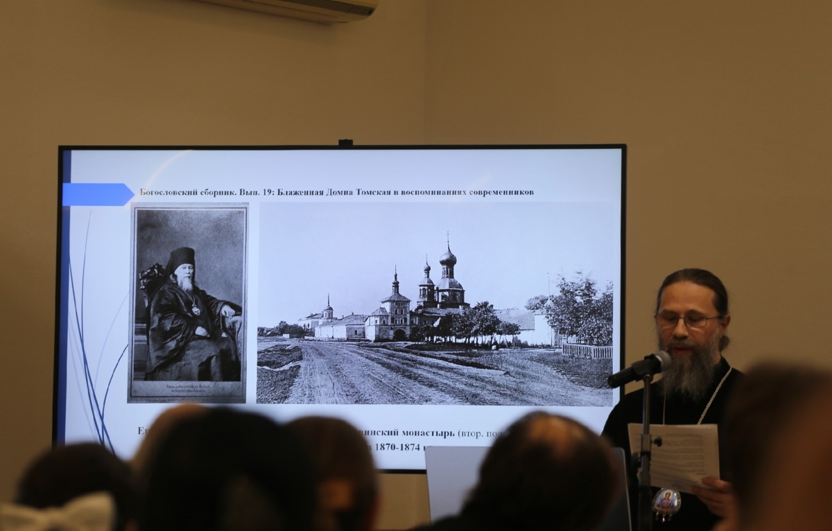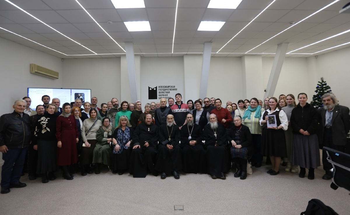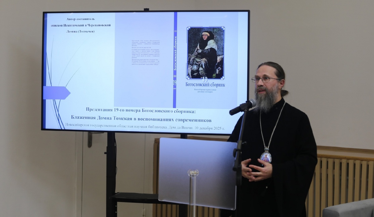 Презентация специального выпуска «Богословского сборника», посвященного блаженной Домне Томской10 декабря 2025 года по благословению Высокопреосвященнейшего Никодима, митрополита Новосибирского и Бердского, в конференц-зале Новосибирской государственной областной научной библиотеки состоялся торжественный вечер-презентация специального выпуска журнала «Богословский сборник-19», посвященного подвигу и духовному наследию блаженной Домны Томской. Мероприятие открыла ведущая вечера К.Н.Шелестюк, начальник отдела ценных и редких книг НГОНБ. Во вступительном слове она подчеркнула значимость представленного издания для сохранения исторической памяти и духовного просвещения. С кратким приветствием к собравшимся от имени ректора Новосибирской православной духовной семинарии, главного редактора Богословского сборника, обратился протодиакон Дмитрий Цыплаков, проректор по научной работе Новосибирской Православной духовной семинарии. Литературную часть программы представили члены Клуба православных авторов «В начале было Слово», под руководством Натальи Владимировны Пендюриной. В исполнении поэтов Натальи Качуровской, Игоря Васильева, Василия Басалаева и Леонида Киргизова прозвучали стихи, проникнутые глубоким духовным чувством и осмыслением подвига христианского служения. Выступление завершилось стихотворением Анны Белоус, посвященного всем добрым пастырям Церкви, которых церковный народ зовёт "батюшками`. Центральным событием вечера стал ключевой доклад епископа Искитимского и Черепановского Леонида, автора специального выпуска, на тему «Подвиг блаженной Домны Томской: взгляд из XXI века». Владыка подробно осветил жизненный путь, духовные труды и значение подвижничества блаженной Домны для современного мира, представив плоды своего глубокого исследовательского труда. После этого состоялась оживленная дискуссия с ответами на вопросы из зала. Студенты Новосибирских духовных школ и гости смогли принять участие в открытой дискуссии на актуальные темы: как сделать жития святых близкими и понятными для молодежи, какова роль литературы и искусства в осмыслении духовного подвига, а также какие имена сибирской агиографии особенно нуждаются сегодня в изучении и популяризации. Вечер завершился заключительным словом ведущей и общим фотографированием на память. Презентация стала значимым событием в культурной и духовной жизни Новосибирска, объединив ученых, деятелей культуры, духовенство и всех, кто интересуется историей Православия на Сибирской земле. Новосибирская православная духовная семинария