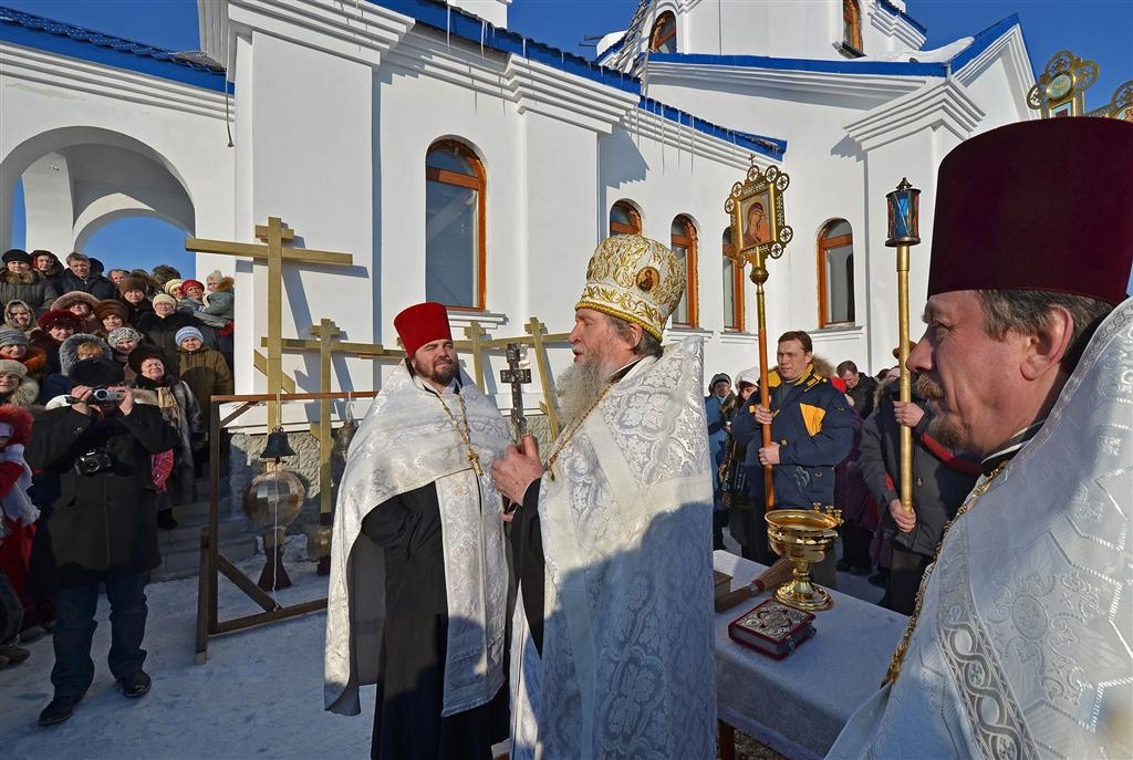 27 февраля в пос. Линево состоялось освящение крестов, куполов и колоколов храма в честь Покрова Пресвятой Богородицы27 февраля в пос. Линево по благословению Архиепископа Новосибирского и Бердского Тихона состоялось освящение крестов, куполов и колоколов строящегося храма в честь Покрова Пресвятой Богородицы. Чин освящения при большом стечении народа совершили протоиерей Александр Реморов, помощник Управляющего Новосибирской Епархии, благочинный Юго-Восточного округа иерей Игорь Затолокин и настоятель прихода протоиерей Борис Дмитрук. Сотни сельчан, не смотря на небольшой мороз, вместе со священнослужителями, молились о благопоспешествовании в деле строительства храма. За молебном собрались сельчане, руководители местной администрации, благодетели. Много было детей и молодежи, наблюдавших с большим интересом. Каждый мог позвонить в специально установленные представителями Новосибирской Школы звонарей три храмовых колокола. Для всего поселка - это стало торжественным историческим событием. Освящение и установка купола - один из завершающих этапов строительства нового храма в честь Покрова Пресвятой Богородицы. В 1992 году на приспособленном под храм помещении стала действовать православная община. По инициативе (в то время главы поселения) А.Н. Рукаса началось строительство новой большой каменной церкви, получившее широкую поддержку жителей, организаций поселка и благотворителей. Протоиерей Александр Реморов от лица Архиепископа Новосибирского и Бердского Тихона поздравил собравшихся с радостным событием и выразил надежду, что в скором времени состоится великий чин освящения храма. Дом Божий строится и благоукрашается трудами жителей и благотворителей. Уже сегодня это мощный духовный маяк, который ориентирует человеческие души на исцеление и, в конечном счете, на возрождение прежней духовной силы нашей страны.
