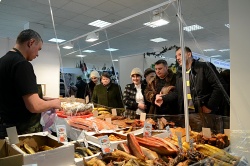 У прилавка с рыбными деликатесами мало кто задерживался. Была опасность просто потерять сознание. Во-первых: для многих - время строгого поста, когда рыба исключается. Во-вторых: визуально очень вкусно и, к сожалению, дорого.