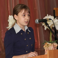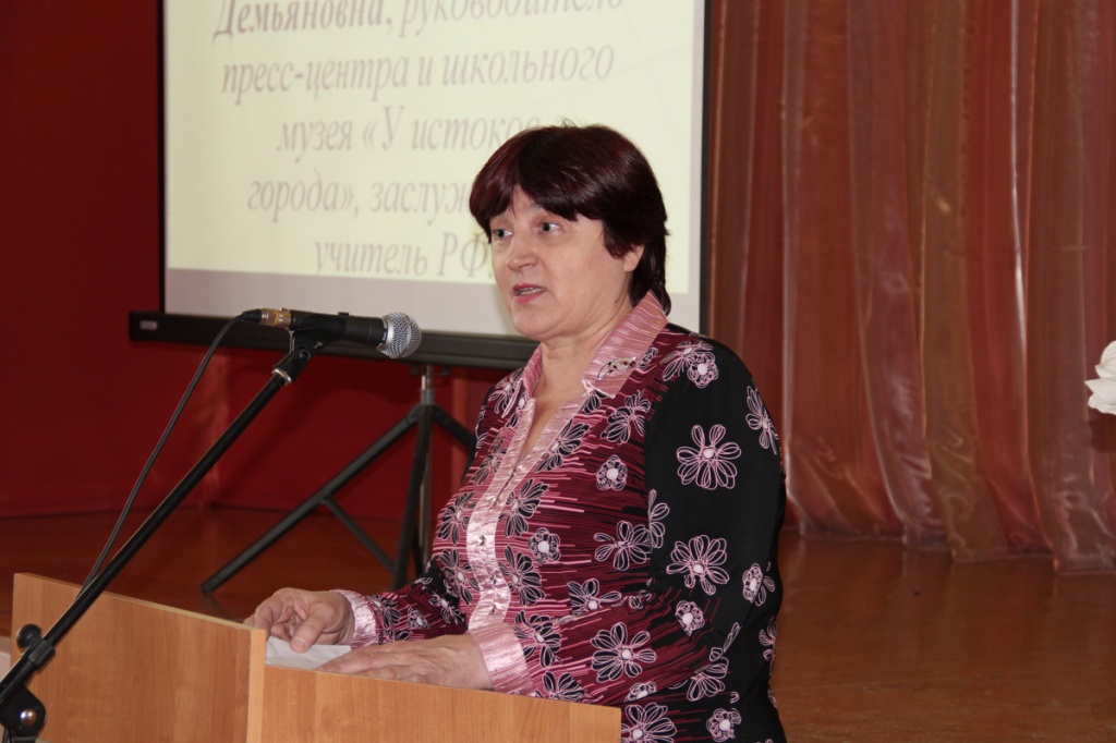 Открыла конференцию директор школы, заслуженный учитель РФ Нина Демьяновна Кляшторная: «Сегодняшняя конференция – своеобразный итог, прошедшей недавно Недели русского языка и литературы, которая уже преобразуется в декаду. В этот период ребята создают свои творческие работы самых разнообразных жанров. В этом году нас очень порадовали ваши работы о роли книги в жизни человека, о судьбе книги в мире интернета, о судьбе русского языка, его чистоте. Книга – прежде всего, явление духовное, и мы очень рады, что можем обсудить эти темы вместе с такими почетными гостями. Надеюсь, что услышанное сегодня отзовется в ваших душах, а это – самое главное».