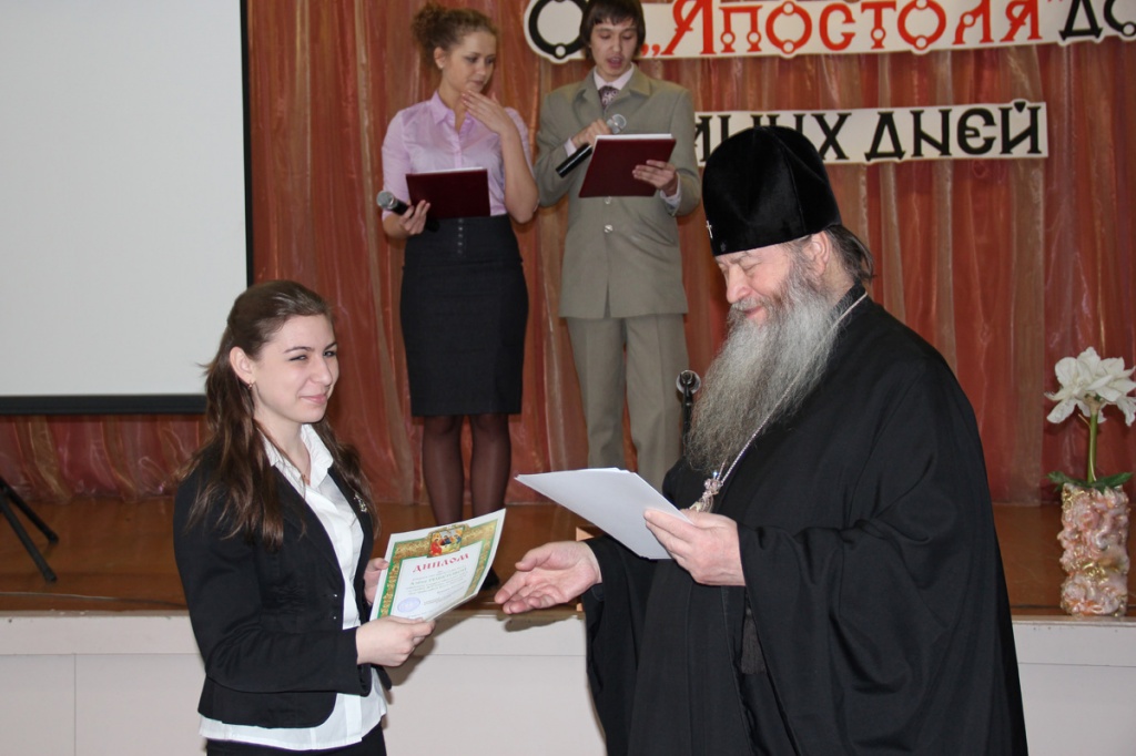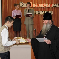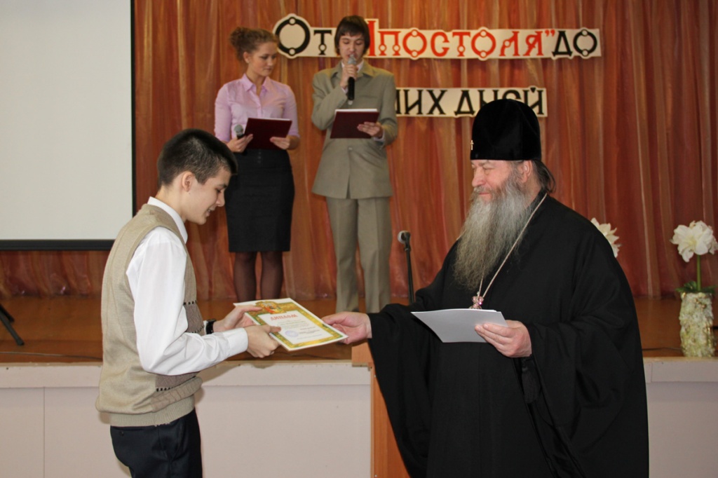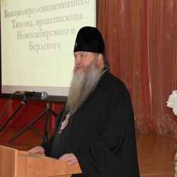 С приветственным словом к учащимся обратился управляющий Новосибирской Епархией Высокопреосвященнейший Тихон, Архиепископ Новосибирский и Бердский: «Второй год в нашей стране проводится День православной книги, и конечно, этот праздник заставляет нас задуматься о жизненных ценностях. Книга это опыт человечества, который передается из поколение в поколение. Человеку за свою жизнь невозможно все узнать, а из книги он может почерпнуть многое.