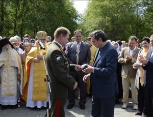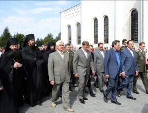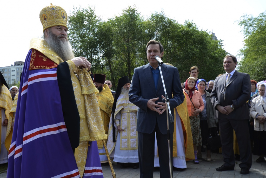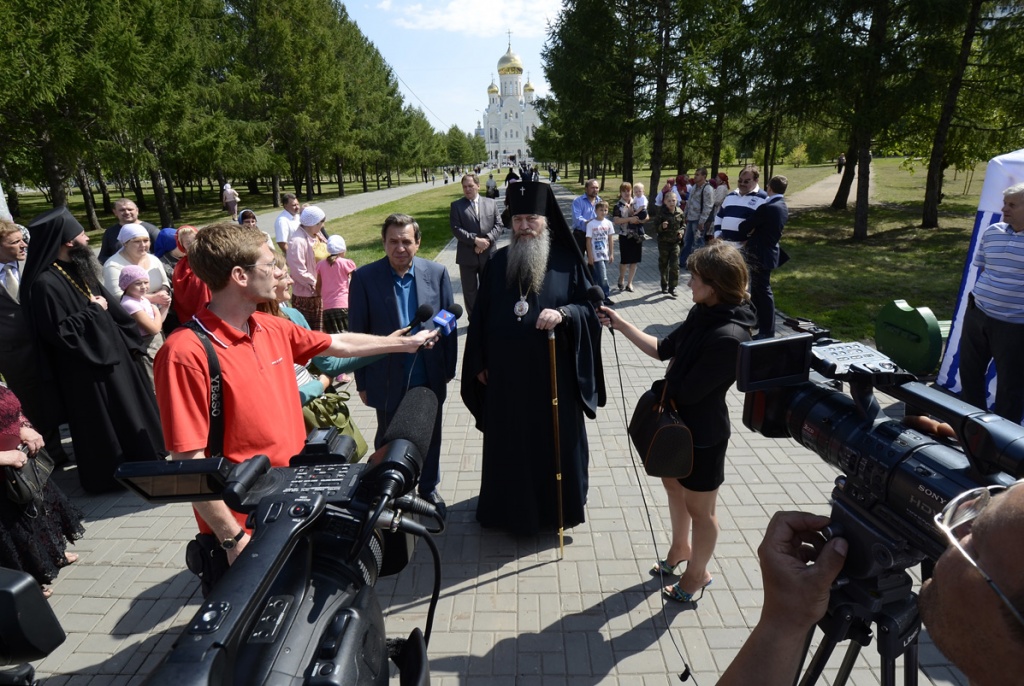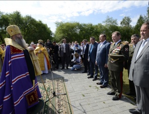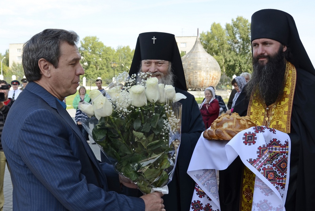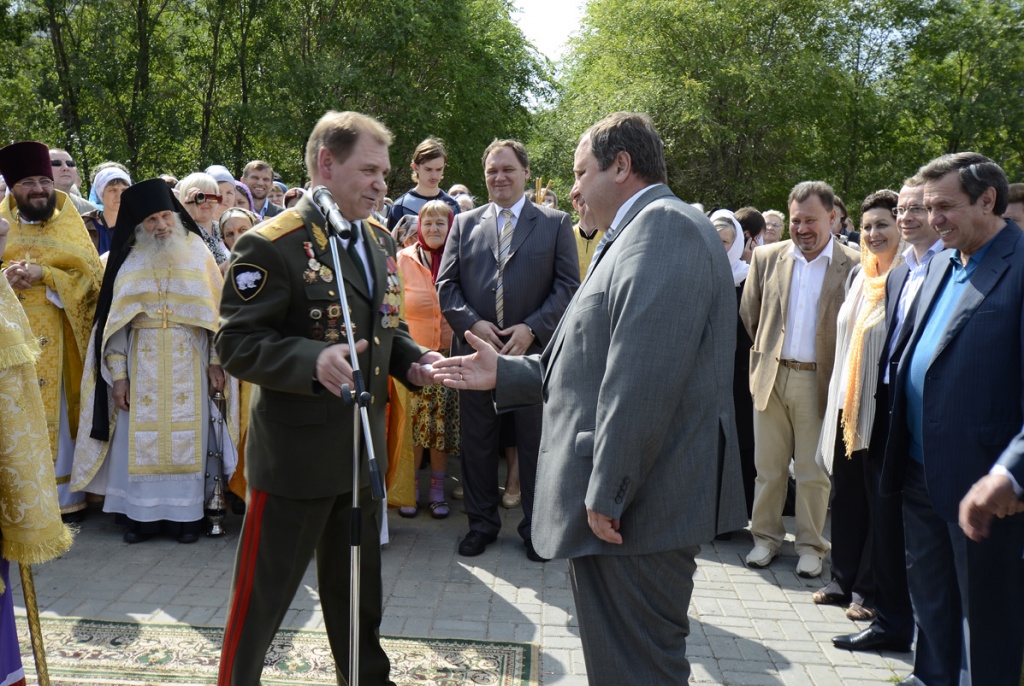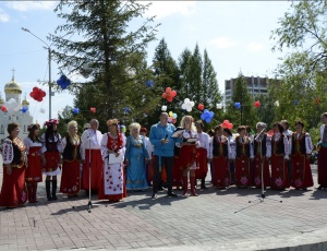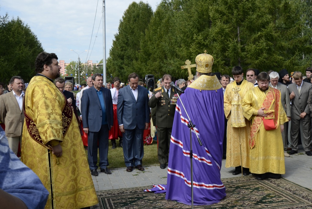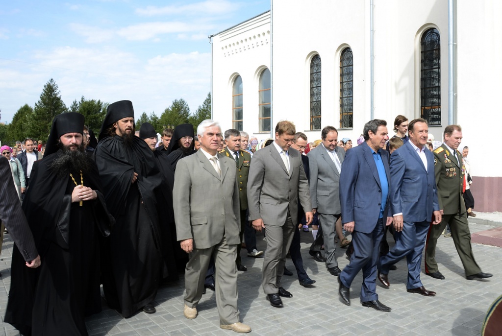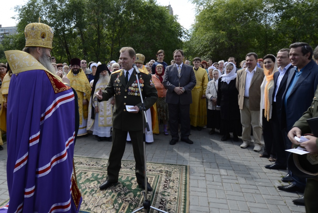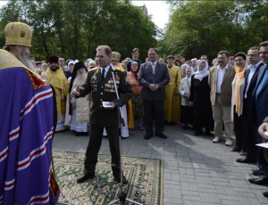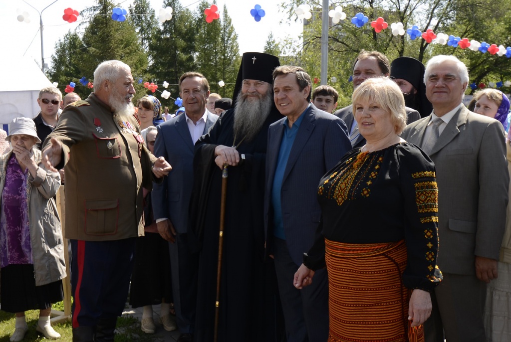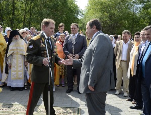 День крещения Руси и единения славянских народов в Новосибирске31 июля 2011 года, Новосибирской Епархией Русской Православной Церкви, совместно с мэрией города и администрацией Ленинского района Новосибирска, Украинским и Белорусским национальными культурными центрами и центром Православной Культуры «Русский щит», в Троицком сквере, были проведены праздничные мероприятия, посвященные памятной дате в истории славянских народов – Дню Крещения Руси, заложившим духовную основу единения славянских народов. По приглашению Владыки Тихона, в торжественных мероприятиях приняли участие мэр города Новосибирска В.Ф. Городецкий, председатель Законодательного собрания Новосибирской области И.Г. Мороз, председатель Избирательной комиссии Новосибирской области Ю.Ф. Петухов, руководитель представительства МИД России в Новосибирске С.А. Чуфистов, руководитель департамента Полномочного Представительства Президента РФ в СФО А.Г. Филичиев, первый заместитель командующего восками Сибирского Регионального командования ВВ МВД РФ, герой России, генерал-майор И.С. Груднов и заместитель командующего восками Сибирского Регионального командования ВВ МВД РФ генерал-майор А.В. Батрак, руководитель отдела Посольства Республики Бедарусь в Москве Л.С. Лавров, глава администрации Ленинского района города Е.А. Пономарев, представители мэрии и Правительства Новосибирской области. День Крещения Руси – «день, от которого идет история современного цивилизационного выбора стран, крещеных в киевской купели» отмечать на государственном уровне в день памяти святого равноапостольного великого князя Владимира, с 2008 года, по предложению Архиерейского собора Русской Православной Церкви, с которым архипастыри Церкви обратились к президентам России, Украины и Белоруссии. По окончании Божественной Литургии в Свято-Троице-Владимирском соборе, состоялся Крестный ход вокруг собора и далее в Троицкий сквер, к стеле – месту будущего памятника «Единения трех славянских народов», где Высокопреосвященнейший Тихон, Архиепископ Новосибирский и Бердский, в сослужении священнослужителей Новосибирской Епархии Русской Православной Церкви, отслужил молебен. По окончании молебна, к почетным гостям и всем присутствующим на торжествах с приветственными словами обратились Владыка Тихон, мэр В.Ф. Городецкий и генерал, герой России И.С. Груднов.. Генерал И.С. Груднов вручил памятные медали, посвященные 200-литию образованию Внутренних войск МВД России, Архиепископу Тихону, В.Ф. Городецкому и А.Г. Филичеву. Владыка Тихон, В.Ф. Городецкий и И.Г. Мороз с почетными гостями осмотрели выставку народных промыслов, организованную в Троицком сквере, ответили на вопросы представителей средств массовой информации. В Троицком сквере состоялся концерт творческих коллективов Украинского и Белорусского национальных культурных центров, центра Православной Культуры «Русский щит», народные гуляния. При содействии Сибирского Регионального командования Внутренних войск МВД России, в Троицком сквере, была развернута полевая кухня, где любой желающий мог поесть солдатской каши «с дымком». Фотографии представлены Владимиром Николаевичем Осинцевым.