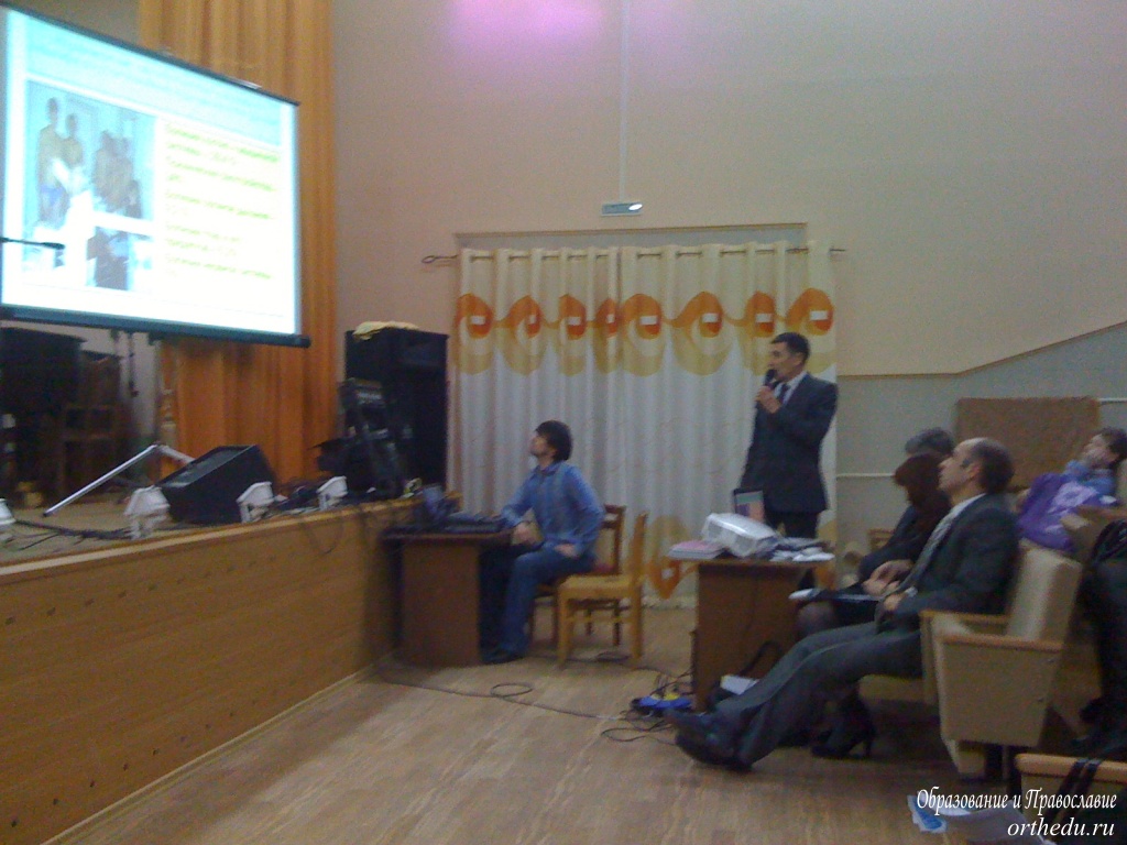 Следующий докладчик, Н.Н. Шелегин, учитель ОБЖ МОУ СОШ №2 г. Искитима, провел параллель между верой и армией в России и на примере истории показал, что вера необходима для солдата не менее чем пища.