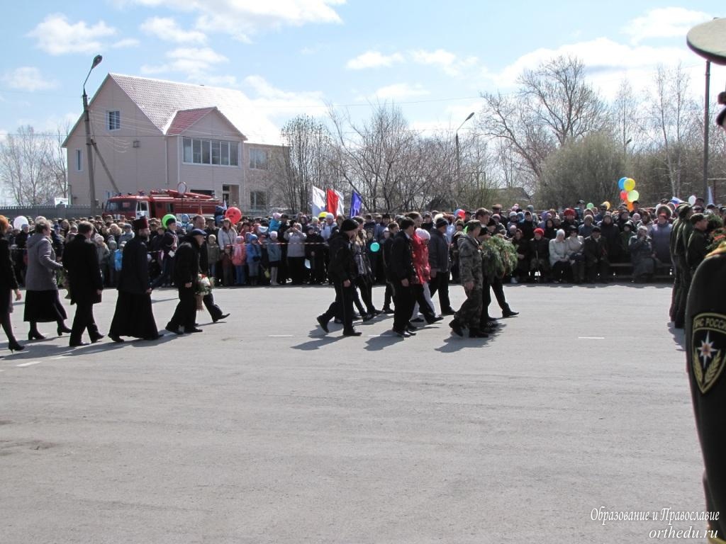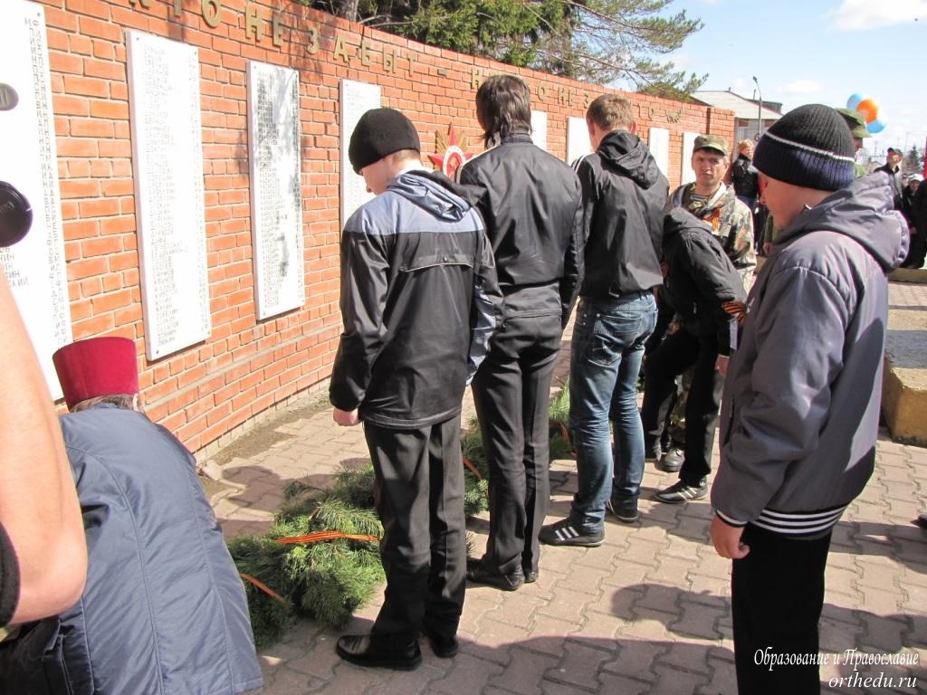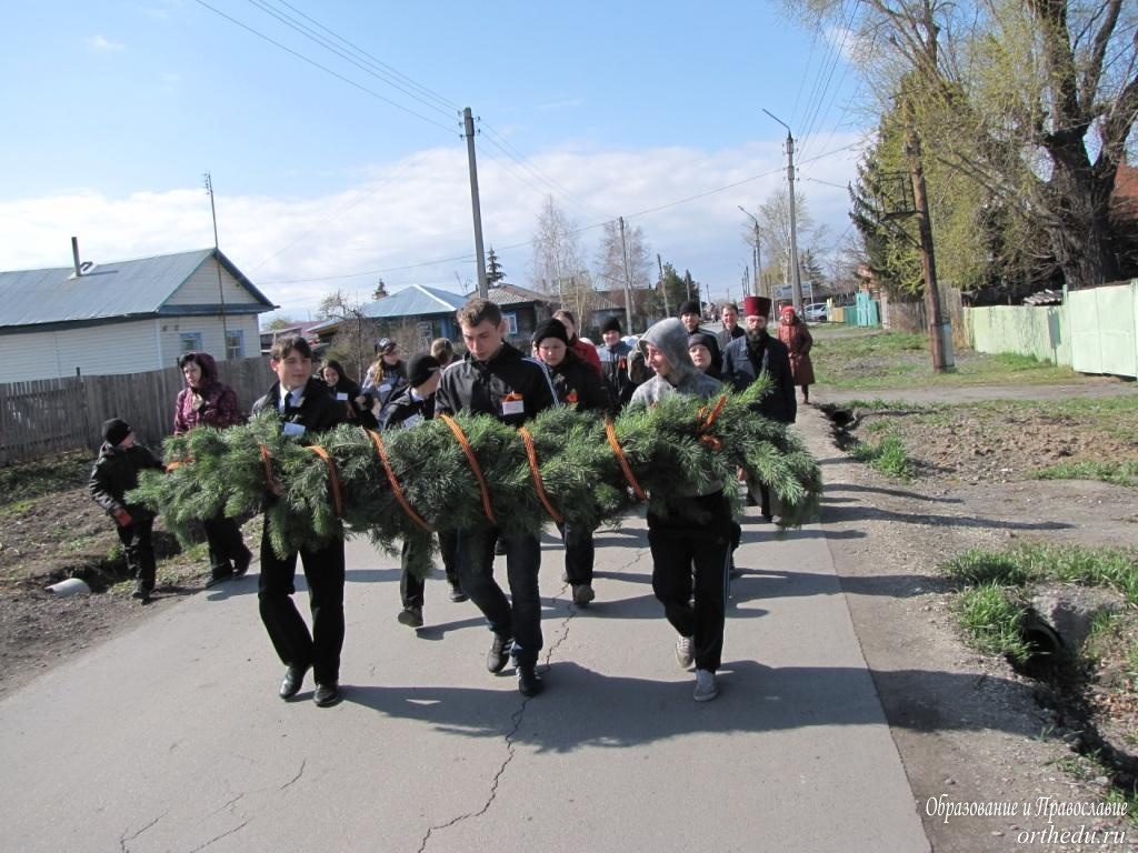 День Победы в Коченево. Воинские знамёна – в храме Архистратига МихаилаПеред тем, как в День Победы, 9 Мая, в торжественном параде пройти перед участниками митинга в р.п. Коченёво, военнослужащие-срочники вместе с офицерским составом и знамёнами расположенных поблизости полка связи и Спасательного центра МЧС приняли участие в молебне в храме во имя Архистратига Михаила. Эта традиция поддерживается много лет, для многочисленных участников поминальной службы этого одновременно печального и радостного Дня, одетых в военную форму, находилась просторная площадка даже тогда, когда только начиналось в 1995 году возведение нового здания нашего храма. Проходили молебны и возле памятника Матери-Родины, где на мемориальных пилонах высечены имена коченёвцев, отдавших жизнь за Победу в Великой Отечественной войне. Правда, на сей раз нескольким группам пришедших всё же пришлось ожидать своих товарищей на улице, потому что в самом храме, как говорится, яблоку было негде упасть, так плотно, плечом к плечу, стояли на молебне прихожане и военные. Что, конечно, символично, ведь если в прошедшие годы этот молебен начинался с поминовения усопших воинов – защитников Отечества, то нынче он был особенным. Перед святыми образами и под сенью воинских знамён возносящие молитву к Богу благодарили Спасителя нашего Господа Иисуса Христа за дарование Победы в Великой Отечественной войне. Текст этот был составлен 200 лет назад, после того, как русские войска разбили французских захватчиков в Отечественной войне 1812 года. А произнёсший краткую проповедь настоятель храма во имя Архистратига Михаила протоиерей Тимофей Морев призвал научиться преданно любить своё Отечество «Если Бог за нас , то кто же против нас?» - заставил задуматься его вовсе не риторический вопрос. После молебна под звуки духового оркестра военнослужащие стройными рядами за воинскими знамёнами проследовали из храма на площадь для парада Победы. И чуть позже, во время возложения цветов к памятнику, за солдатами, несущими хвойную гирлянду, перевитую гвардейской лентой, можно было увидеть подростков с похожим венком. Это за старшими товарищами, точно так же, как стояли рядом во время молебна, следовали участники военно-патриотический клуба «Архистратиг», не так давно созданного при нашем храме по инициативе его настоятеля.
