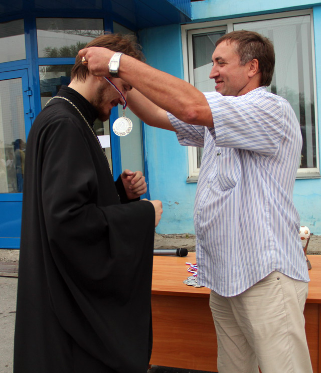 В любом виде спорта всегда есть не только победители, но и проигравшие. В нынешнем футбольном турнире ими стали семинаристы. Возможно, студентам не хватило должной физической подготовки и боевого опыта. Тем не менее, они не опускали руки, играли с мальчишеским задором, и есть все основания полагать, что в следующий раз они уже не окажутся на последнем месте. Погода благоприятствовала турниру. Небольшой дождик, пролившийся в середине соревнования, не сказался на игре. В общем, спортсмены остались довольны погодными условиями, назвав их «идеальными» для лета: солнце зашло за тучи, жара резко спала, поднялся легкий прохладный ветерок.