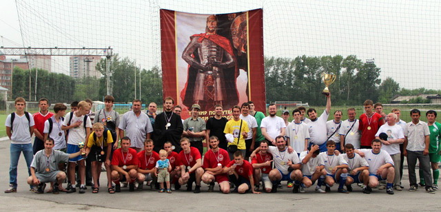 Православные приходы сошлись на футбольном полеВ Новосибирске, по благословению правящего Архиерея, прошел 1-й турнир по футболу среди приходских команд Новосибирской митрополии на «Кубок святого Александра Невского». В соревнованиях приняли участие шесть команд, которые представляли Вознесенский кафедральный собор, Преображенский кафедральный собор города Бердска, Александро-Невский собор, храм в честь Успения Пресвятой Богородицы на Затулинке, Знаменский храм и Новосибирскую духовную семинарию. На футбольных полях встретились не только прихожане, но и священнослужители. К примеру, капитаном футбольной команды Александро-Невского собора стал священник Андрей Тупиченко.