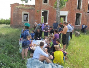 Поруганный и брошенный храм Святой Троицы9 июля 2012 года в рамках визита правящего архиерея в Чистоозёрный район, в заброшенном храме Святой Троицы в с. Юдино был организован субботник. В субботнике приняли участие: Владыка Филипп, благочинный Купинского благочиния иеромонах Мелхиседек, иерей Михаил, прихожане и дети из детского оздоровительного лагеря «Зелёная роща».