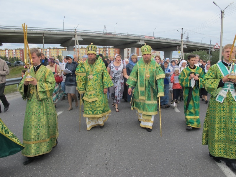 Дружественный визит в Салехардскую епархиюС 31 июля по 2 августа 2012 года Преосвященный Владыка Филипп побывал с визитом в Салехардской епархии. Поездка стала возможна благодаря приглашению епископа Салехардского и Ново-Уренгойского Николая с целью расширения дружественных контактов. 1 августа на престольном празднике в храме в честь преподобного Серафима Саровского Чудотворца (настоятель протоиерей Олег Нелин, г. Новый Уренгой), оба архипастыря совершили Всенощное бдение и Божественную литургию. Епископ Салехардский и Ново-Уренгойский Николай поблагодарил Владыку Филиппа за визит, поздравил с праздником и преподнёс в дар икону св. прп. Серафима Саровского. После богослужения состоялся Крестный ход от храма в честь преподобного Серафима Саровского Чудотворца до строящегося храма и церковного комплекса. На следующий день в память пророка Илии архиереи совершили Всенощное бдение и Божественную литургию в сослужении духовенства Салехардской епархии/