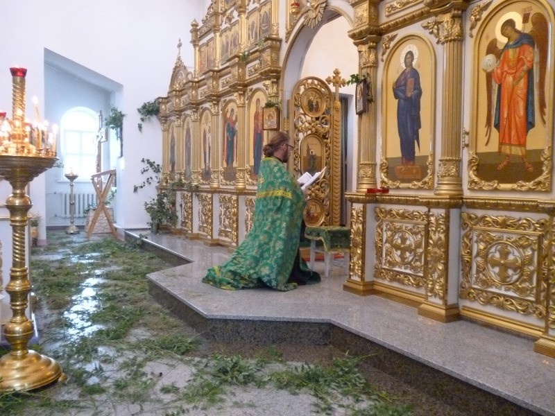 Праздничное богослужение в Кафедральном соборе г. Карасука накануне дня Святой ТроицыВ украшенном боголюбивыми прихожанами Кафедральном соборе г. Карасука в канун двунадесятого праздника, Дня Святой Троицы (Пятидесятницы), прошло всенощное бдение, которое завершилось всеобщей исповедью. На исповедь пришло более 50 человек. Это говорит о том, что включая исповедников, которые придут в собор утром перед литургией, и малых ребят, которым исповедь ещё не обязательна, в День сошествия Святого Духа на Апостолов к Чаше подойдут около 80 христиан, что для такого небольшого городка как Карасук – явление радостное! Перед богослужением все прихожане приняли участие в благоукрашении храма, а некоторые остались и до позднего вечера – поставить и укрепить берёзки, которые по древней традиции православный люд из века в век ставил как символ жизни в Храмах Божиих. Прихожане особенно старались, ведь в понедельник возвращается в Карасук из рабочей поездки Преосвященнейший епископ Филипп, и всем сотрудникам собора, и прихожанам хотелось показать не на словах, а на деле, что тот дух христианских традиций, который заботливой рукой прививает епископ, пребывает в сердцах, душах и умах его паствы.