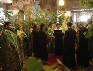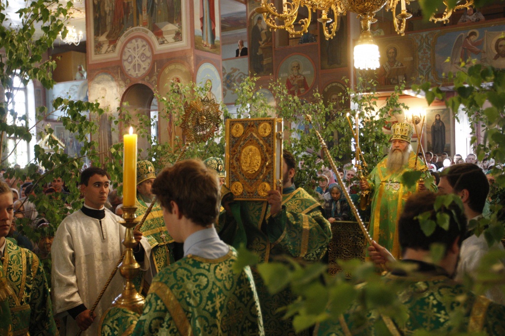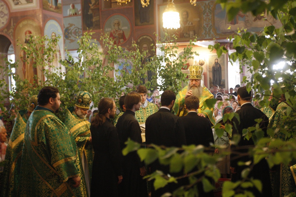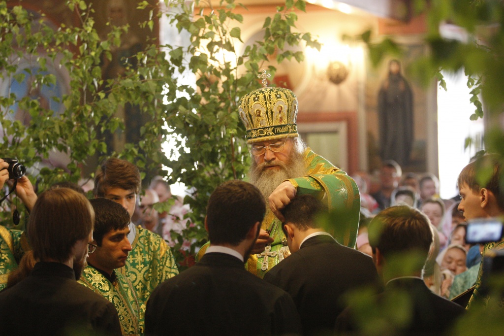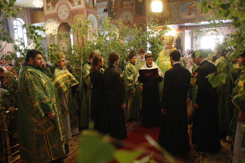 Божественная литургия в день Святой Троицы в Вознесенском кафедральном соборе23 июня в день Святой Троицы Митрополит Новосибирский и Бердский Тихон возглавил Божественную Литургию и вечерню в Вознесенском кафедральном соборе. Перед началом богослужения Владыка Тихон совершил чин пострижения в чтецов выпускников Новосибирской православной духовной семинарии. Архиерей благословил семинаристов на ношение подрясников и стихарей.