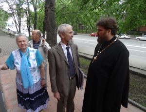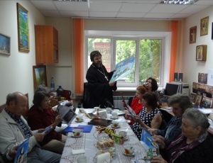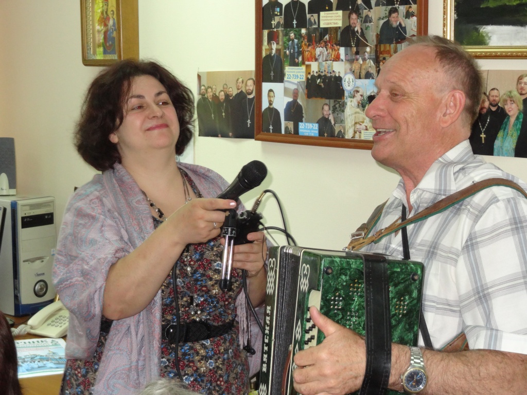 Радио «Слово» в гостях у клуба православных авторов «В начале было Слово»Накануне Великого Двунадесятого праздника Дня Святой Троицы состоялось очередное заседание клуба православных авторов « В начале было Слово». В этот раз в гостях у православных авторов побывала известная Новосибирская радиожурналист Елена Волкова. С давних лет «Общество книголюбов» под руководством Т.В. Пендюриной, тесно сотрудничает и дружит со многими средствами массовой информации, в том числе с «Радио Слово областным депутатским каналом УКВ 71 27». Интерес к деятельности клуба возрастает. Членов клуба с каждым разом становится все больше и больше. Актив составляет уже более пятидесяти человек. Протоиерей Иаков Конкин - руководитель Издательского Совета Новосибирской Митрополии, Духовник и руководитель клуба, регулярно встречается с авторами. В этот раз батюшка рассказывал о православном празднике, о многогранной деятельности Новосибирской Епархии Русской Православной Церкви, о работе Издательского Совета и о юбилеях Новосибирской Епархии. В связи с этими торжественными событиями, всем членам клуба были вручены: специальный выпуск газеты "Вестник Новосибирской Митрополии" № 7 - июнь 2013 г., посвященный 90-летию Новосибирской Епархии, 100-летию Вознесенского кафедрального собора и 120-летию Новосибирска, а также 65-летию Митрополита Новосибирского и Бердского Тихона, юбилейные календари, брошюры «100 лет Вознесенскому кафедральному собору» и открытки к 90-летию Новосибирской Епархии». Заседание клуба шло более трех часов. С интересом слушали протоиерея Иакова Конкина. Елена Волкова записывала на диктофон выступления всех присутствующих для ее новой радиопередачи. Авторы с удовольствием читали стихи и даже пели. Время пролетело очень быстро. Не заметили, как на дежурство «Православного телефона Доверия», который находится в стенах Епархиальной службы «Содействие» и «Общества книголюбов» пришел протоирей Александр Матрук. Встреча была очень теплой, впрочем, как и всегда. Еще вспоминали прекрасного человека – патриота Сибирской земли, поэта, книголюба, члена клуба православных авторов - Анатолия Петровича Бондарева, скоропостижно скончавшегося 19 мая 2013 года. На предыдущем заседании клуба, которое проходило 26 апреля 2013 года, в Официальной Резиденции Новосибирской Митрополии, Анатолий Петрович обращался к Митрополиту Тихону с просьбой оказать содействие в давно начавшемся строительстве Часовни в его родном селе Сарапулка. Анатолий Петрович ушел, а строительство часовни продолжается, и стихи его живут в наших сердцах. Хороший человек! Настоящий православный христианин! Вечная память! СИБИРЬ