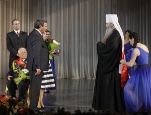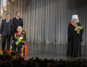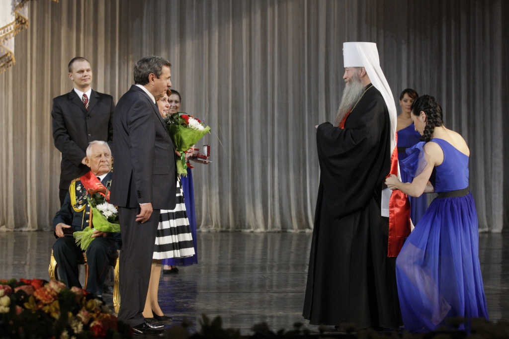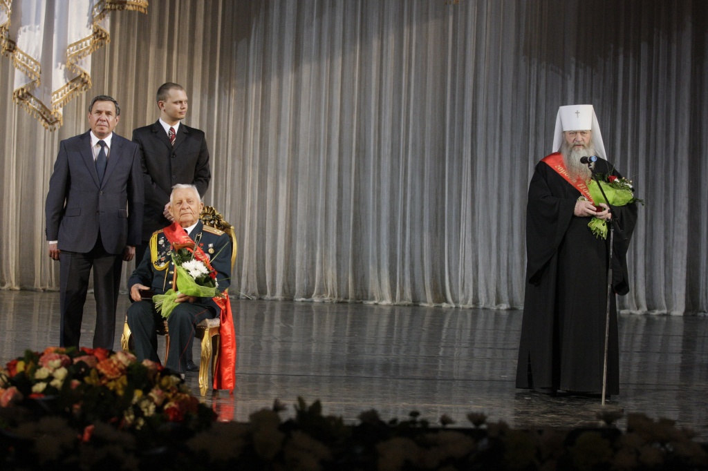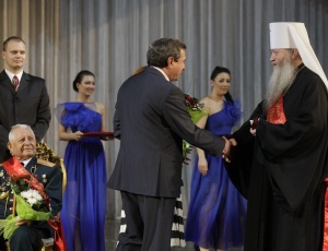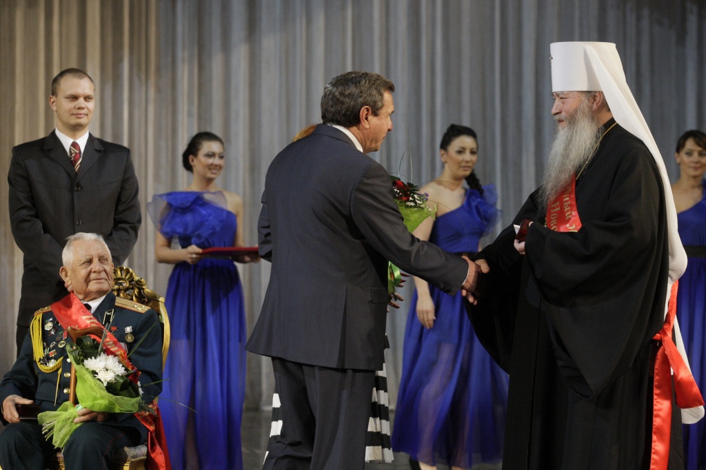 Митрополиту Тихону присвоено звание почетного жителя Новосибирска29 июня на Митрополиту Новосибирскому и Бердскому Тихону было присвоено звание Почетного жителя города Новосибирска. Накануне празднования 120-летия Новосибирска в Театре оперы и балета состоялось торжественное собрание, посвященное Дню города. За активную духовно-просветительскую, миссионерскую и благотворительную деятельность званием почетного жителя города Новосибирска был награжден Митрополит Новосибирский и Бердский Тихон. Также за активную общественную деятельность и большой вклад в нравственное и военно-патриотическое воспитание молодежи звания удостоились два Героя Советского Союза — Дмитрий Бакуров и Леонид Пономаренко, за большой вклад в развитие культуры и системы дополнительного образования детей в городе Новосибирске звания «Почетный житель Новосибирска» присвоено директору детско-юношеского центра «Старая мельница» Леониду Сикоруку. В ответном слове Митрополит Тихон поблагодарил руководство городаза оказанную честь. "Город - это люди, и мы заботимся о том чтобы эти люди были патриотами и законопослушыми гражданами, которые живут по чести и совести. Сегодня Церковь получила возможность заниматься социальной деятельностью, заботиться о людях, которые очутились на грани нищеты, без жилья, в больницах. Мы стараемся помогать этим людям, обратить на них внимание общественности, чтобы воспитать в людях сострадание, человеколюбие и милосердие. Особенно радостно мне получить это звание вместе с однополчанином моего отца Леонидом Николаевичем Пономаренко".