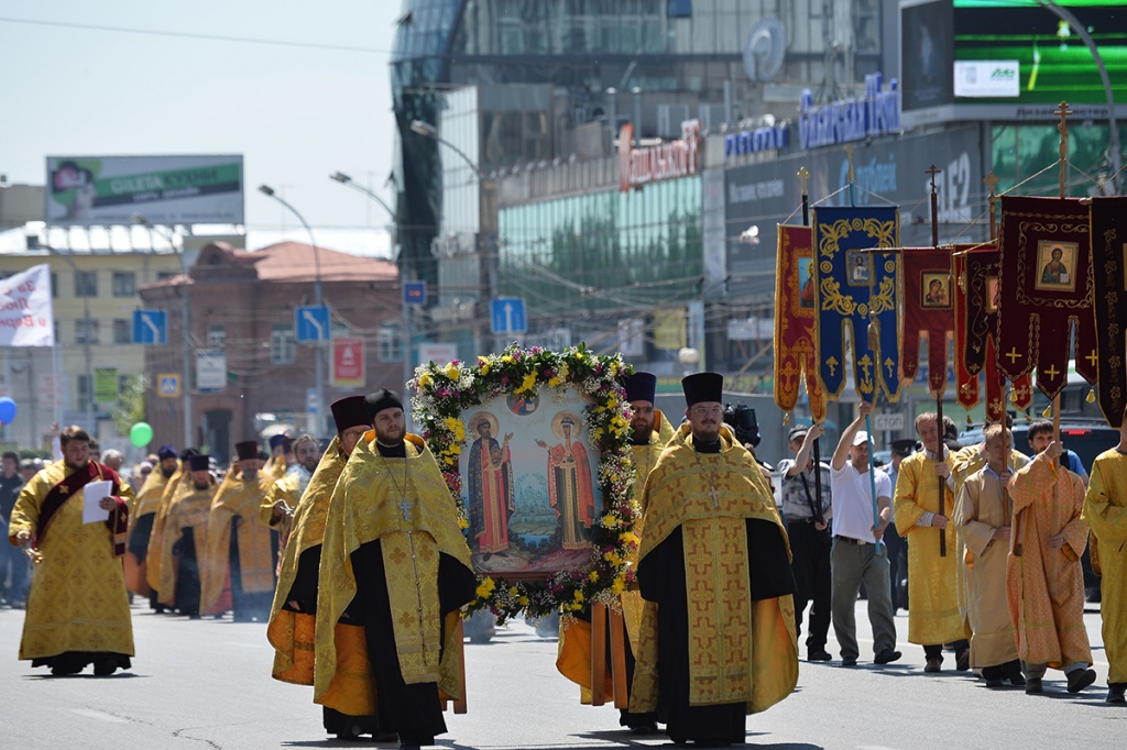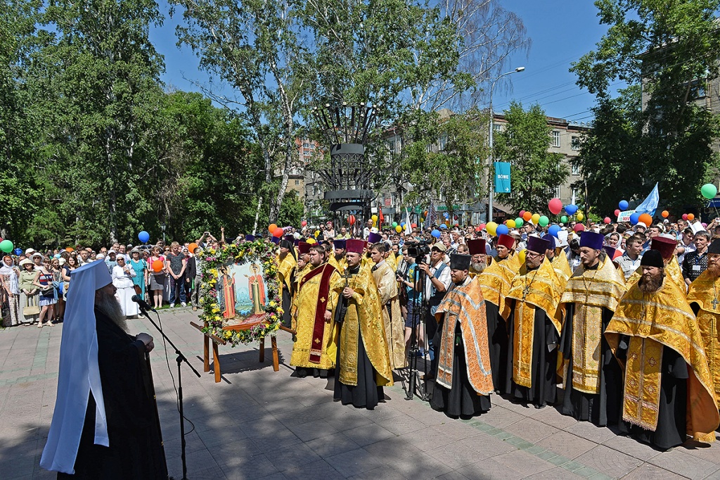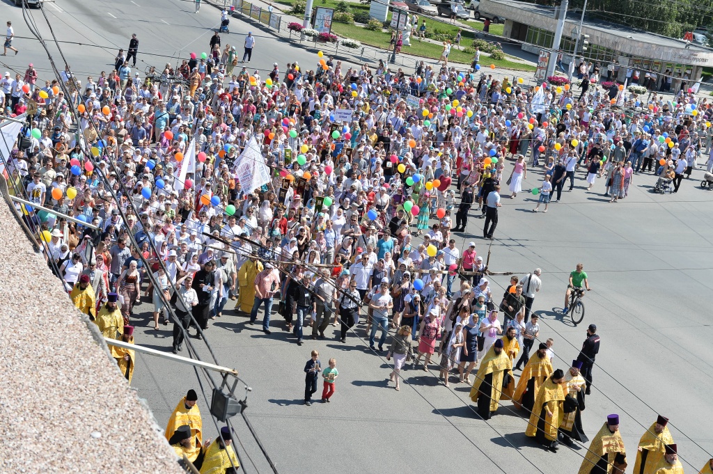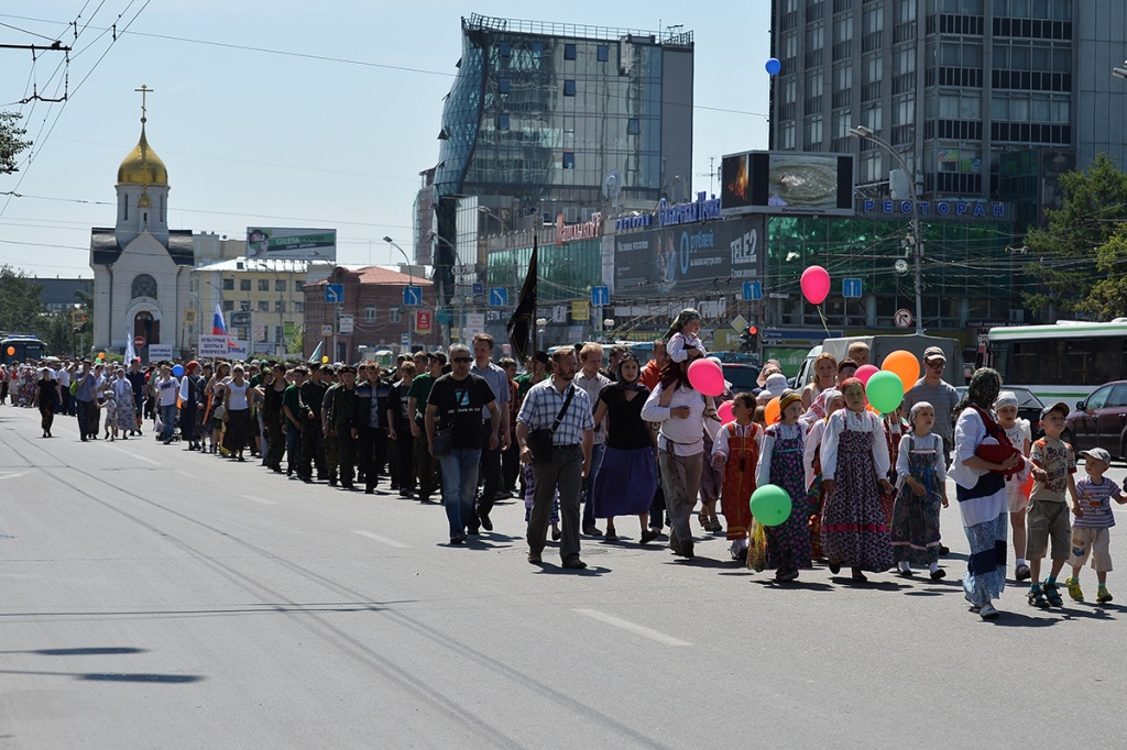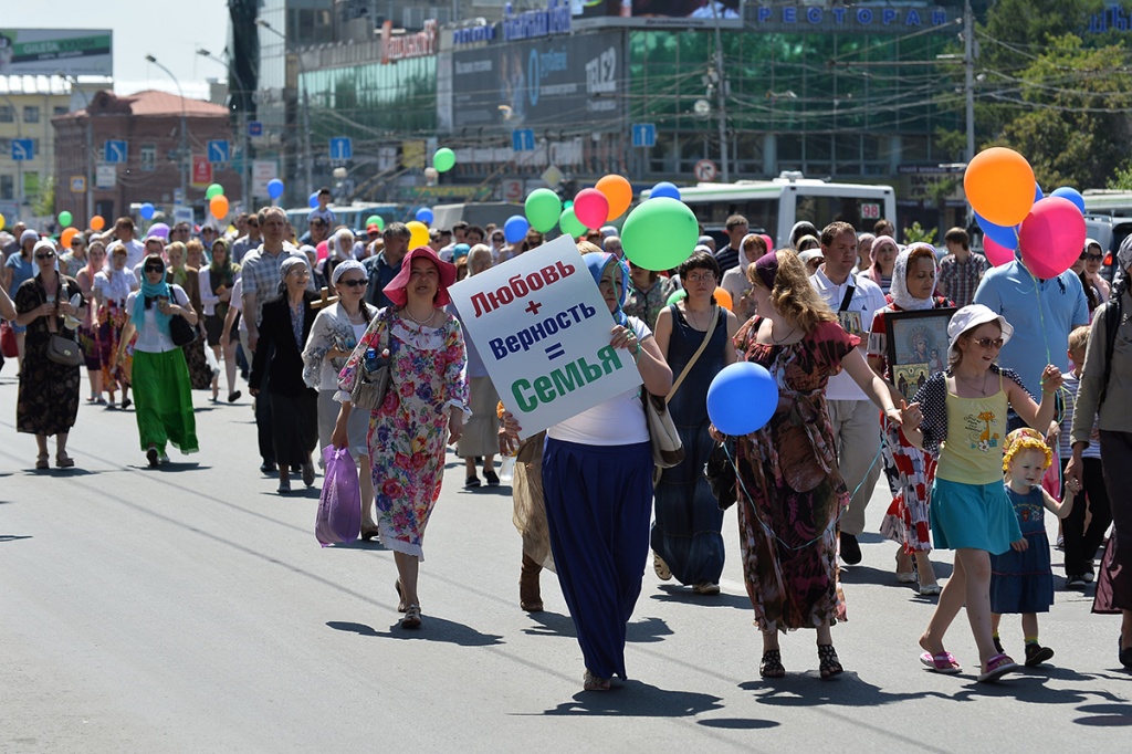 В Новосибирске прошел первый в Сибири молодежный Крестный ходВ Новосибирске прошел первый в Сибири молодежный Крестный ход 14 июля в честь Дня семьи, любви и верности в Новосибирске состоялся первый в Сибири молодежный Крестный ход, собравший около четырех тысяч верующих. День семьи, любви и верности и память святых князей Петра и Февронии Муромских отмечается в России 8 июля - с 2008 года этот праздник признан церковно-государственным. В этом году празднование было перенесено на ближайшее после 8 июля воскресенье. Центром праздника в Новосибирске уже традиционно стал Нарымский сквер - именно там в прошлом году установили и освятили памятник святым благоверным князьям Петру и Февронии, покровителям семейного счастья. "Праздник этот еще молодой, и он особенно важен для современной молодежи, - считает один из организаторов праздника Екатерина Дубровская, - ведь пример святых Петра и Февронии показывает нам образ идеальной православной семьи". Именно по инициативе Молодежного совета Новосибирской Митрополии был организован Крестный ход, приуроченный к семейному празднику. Действительно, в шествии приняли участие, в основном молодые люди - представители православных молодежных клубов, общественных организаций, национальных культурных центров. Много было и семей: молодые родители шли с детьми, кто-то пригласил на Крестный ход родителей. Крестный ход начался с молебна в Первомайском сквере, затем шествие прошло по Красному проспекту в Нарымский сквер - к памятнику святым Петру и Февронии у стен Вознесенского собора. Там участников Крестного хода приветствовал Митрополит Новосибирский и Бердский Тихон. Поздравив всех собравшихся с праздником, Владыка Тихон принял участие в церемони награждения православных многодетных семей. С трех часов дня и до 10 вечера в Нарымском сквере проходили праздничные представления, народные гуляния, были организованы творческие мастерские, фотосессии, конкурсы.