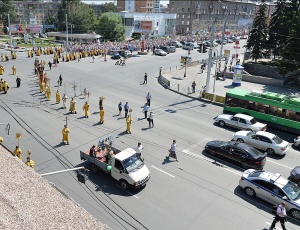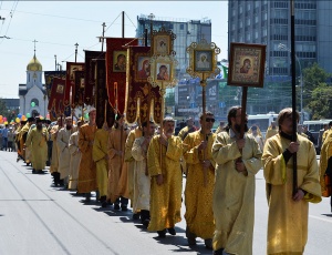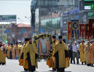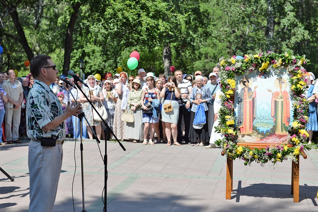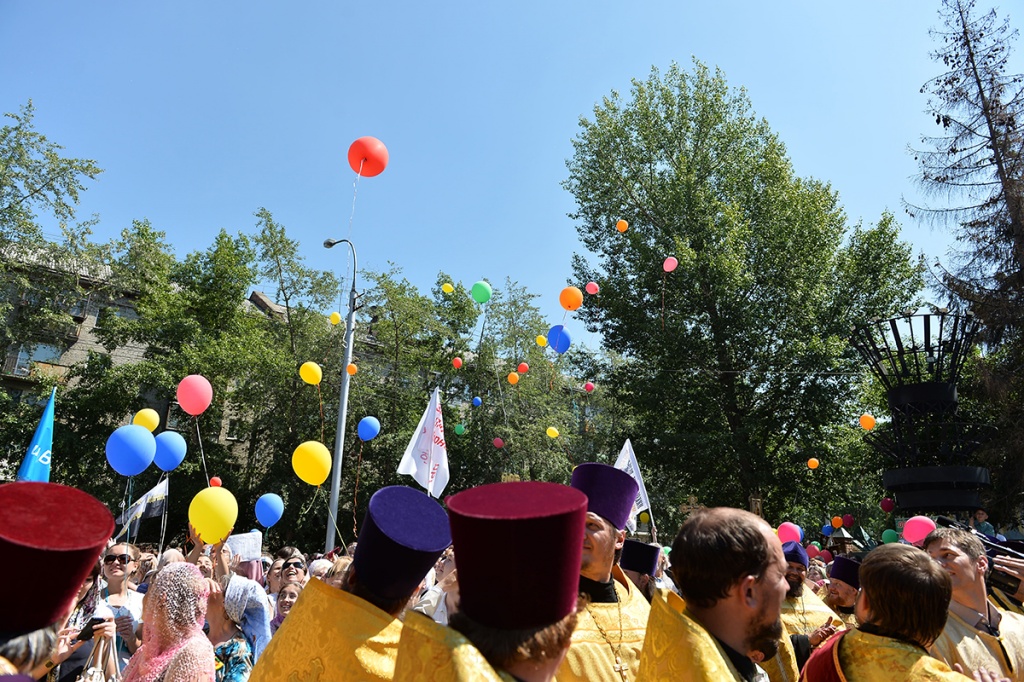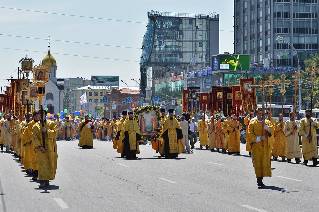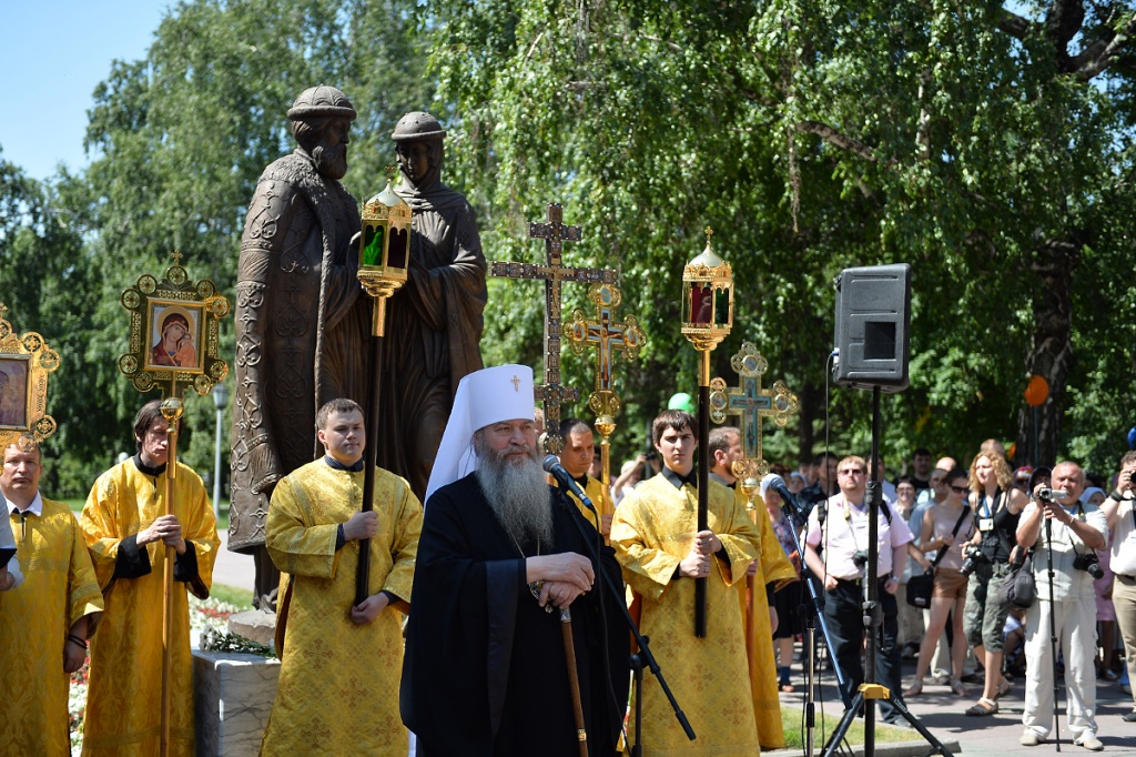 В Новосибирске прошел первый в Сибири молодежный Крестный ходВ Новосибирске прошел первый в Сибири молодежный Крестный ход 14 июля в честь Дня семьи, любви и верности в Новосибирске состоялся первый в Сибири молодежный Крестный ход, собравший около четырех тысяч верующих. День семьи, любви и верности и память святых князей Петра и Февронии Муромских отмечается в России 8 июля - с 2008 года этот праздник признан церковно-государственным. В этом году празднование было перенесено на ближайшее после 8 июля воскресенье. Центром праздника в Новосибирске уже традиционно стал Нарымский сквер - именно там в прошлом году установили и освятили памятник святым благоверным князьям Петру и Февронии, покровителям семейного счастья. "Праздник этот еще молодой, и он особенно важен для современной молодежи, - считает один из организаторов праздника Екатерина Дубровская, - ведь пример святых Петра и Февронии показывает нам образ идеальной православной семьи". Именно по инициативе Молодежного совета Новосибирской Митрополии был организован Крестный ход, приуроченный к семейному празднику. Действительно, в шествии приняли участие, в основном молодые люди - представители православных молодежных клубов, общественных организаций, национальных культурных центров. Много было и семей: молодые родители шли с детьми, кто-то пригласил на Крестный ход родителей. Крестный ход начался с молебна в Первомайском сквере, затем шествие прошло по Красному проспекту в Нарымский сквер - к памятнику святым Петру и Февронии у стен Вознесенского собора. Там участников Крестного хода приветствовал Митрополит Новосибирский и Бердский Тихон. Поздравив всех собравшихся с праздником, Владыка Тихон принял участие в церемони награждения православных многодетных семей. С трех часов дня и до 10 вечера в Нарымском сквере проходили праздничные представления, народные гуляния, были организованы творческие мастерские, фотосессии, конкурсы.