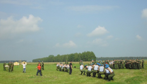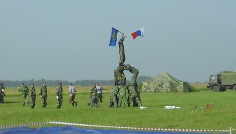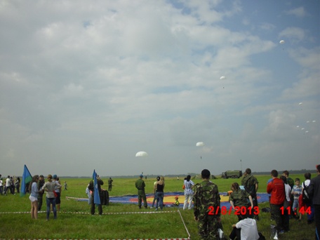 Областной праздник десантников2 августа 2013 года на аэродромах в окрестностях г. Бердска прошел областной праздник десантников. Он начался с возложения цветов ветеранами Бердской бригады специального назначения к памятнику однополчанам, убитыми в боях с террористами, посягавшими на территориальную целостность России Это прославленное соединение было расформировано приказом министра обороны С. Иванова за то, как горько шутят разведчики, что они слишком хорошо воевали более десяти лет на Кавказе. Шести бердским спецназовцам присвоено звание Героя России. Наши земляки до сих пор не верят тому, что эта войсковая часть ликвидирована правительством РФ, министры которого любят при случае называть себя патриотами и интересы которого она защищала. Праздник начался с построения подразделений соединения специального назначения, впервые принимавшего участие в Дне воздушно-десантных войск на приобской земле. Торжественный молебен о даровании побед славному Русскому воинству и доблестным десантникам отслужил прямо на аэродроме настоятель прихода во имя святого страстотерпца благоверного Царя Николая в г. Новосибирске, иерей Николай Москалюк, исполняюший должность помощника командира бригады по работе с верующими военнослужащими. На праздник прибыли сотрудники областного управления молодёжной политики и кадеты нескольких детских патриотических клубов из Новосибирска. Проведением и судейством наземных показательных выступлений и соревнований солдат спецназа руководил ветеран Бердской бригады, инструктор по рукопашному бою, старший урядник Сибирского казачьего войска Максим Самукин. По благословению Преосвященного Луки (Волчкова), епископа Искитимского и Черепановского, в мероприятиях участвовали руководитель епархиального Отдела по взаимодействию с вооруженными силами, правоохранительными органами и казачеством, иерей Виктор Зотин, казаки Искитимского историко-патриотического объединения сибирских казаков, кадеты православного казачьего военно-патриотического клуба «Родина» при приходе в честь Владимирской иконы Пресвятой Богородицы в г. Искитиме, а также сибирские казаки из областного центра. Искитимские атаман и начальник казачьего штаба представились начальнику штаба соединения спецназа, подполковнику И., передали ему список казаков приготовительного разряда, осенних призывников 2013 года, а также издания Искитимской епархии и казачьи газеты для служилых казаков. Из Искитима приехали и выпускники военно-спортивного клуба «Разведчик», которые уже этой осенью пополнят ряды сибирских военных разведчиков. Они повидались с однокашниками по клубу, уже проходящими срочную службу в бригаде. Порадовал искитимец, рядовой спецназа Максим Д., доложивший атаману о своём решении поступить на сверхсрочную службу, заключив контракт. В ближайшее время он будет назначен на должность командира отделения и произведён в младшие сержанты. С 2012 года в Спецназе служит и сын первого атамана Бердской станицы Ново-Николаевского отдела им. Ермака Тимофеевича Сибирского казачьего войска есаула С. Елисеева. Не отстают от старших товарищей-призывников и воспитанники клуба «Родина»: одетые в чистую походную (камуфлированную) форму с казачьими и клубными нашивками, с подшитыми белыми подворотничками и в голубых беретах, он