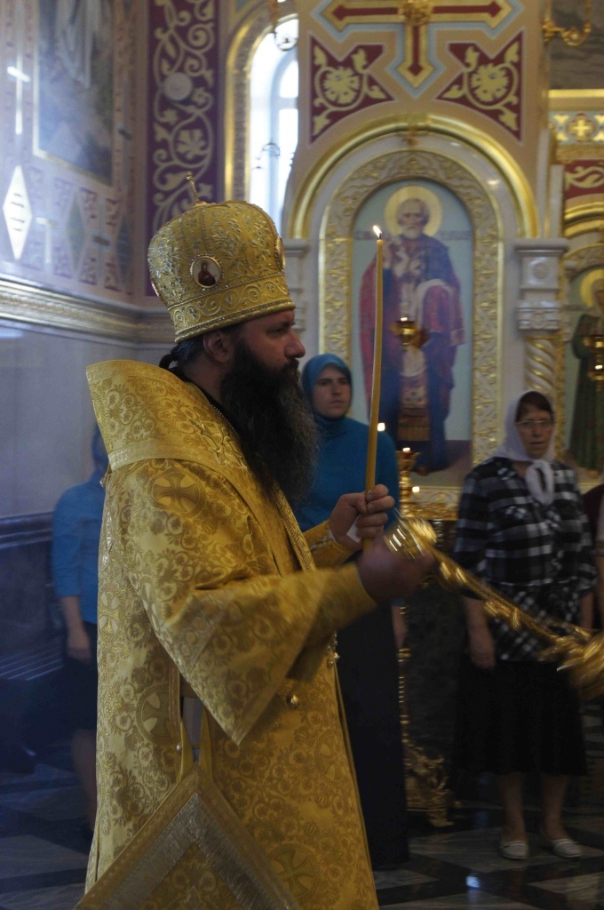 Престольный праздник в Каргате1 – 2 августа 2013 года. Епископ Каинский и Барабинский Феодосий посетил город Каргат, где накануне Дня памяти Пророка Илии совершил Всенощное бдение в соборе Илии Пророка и в самый Праздник отслужил Божественную Литургию в со служении настоятеля собора иерея Максима Сопронова и священства Новосибирской и Каинской епархий. После Божественной литургии был совершен Крестный ход и отслужен молебен Божией Матери перед чудотворной её иконой «Семистрельная» («Умягчение злых сердец»), преподобному Серафиму Саровскому перед ростовой иконой с частицей его святых мощей, и Илии Пророку. Архипастырь обратился к верующим с словами назидания, сказав, что Пророк Божий Илия своим безграничным послушанием слову Божию, безупречной чистотой, ревностью о славе Божией, любовью к молитве, аскетическим, подвижническим образом жизни воистину был велик и славен перед Богом и людьми. Люди называли его при жизни человеком Божиим, и когда встречались с ним, падали ниц перед ним, прозревая великую силу, которую имел пророк. Владыка Феодосий, поздравив настоятеля собора и всех каргатцев с престольным праздником, призвал по мере сил и возможностей каждого подражать небесному покровителю - приходить в храм, совершать утренние и вечерние молитвы, регулярно прибегать к церковным таинствам, исповедоваться и причащаться Святых Христовых Таин. Сохранять в своих сердцах Божию благодать, укрепляясь в вере молитвами святого Пророка Илии, чтобы Господь сподобил во втором пришествии услышать его блаженный глас: "Приидите, благословенные Отца Моего, наследуйте Царство, уготованное вам от создания мира" (Мф.25:34). Аминь.