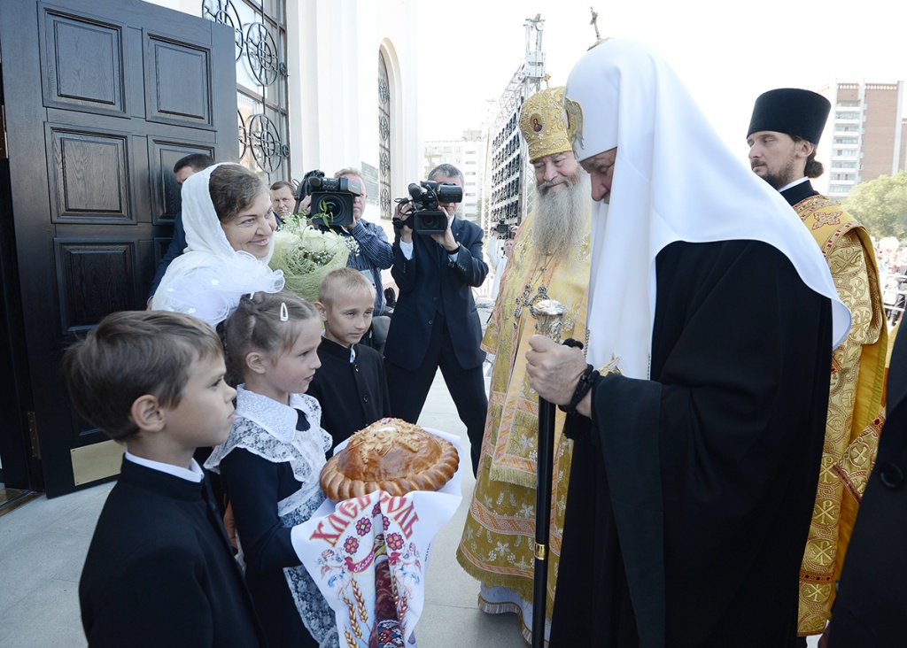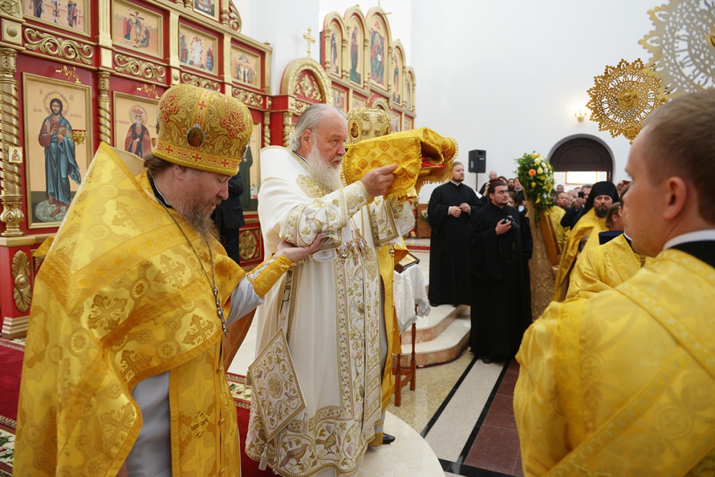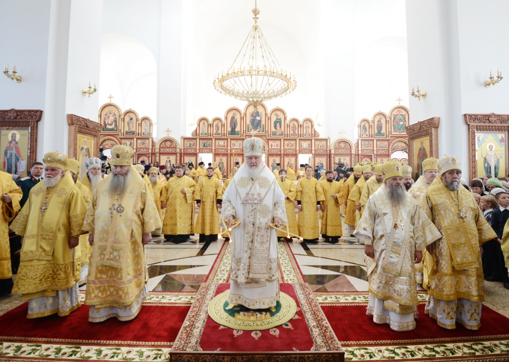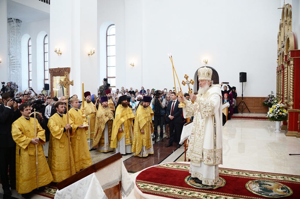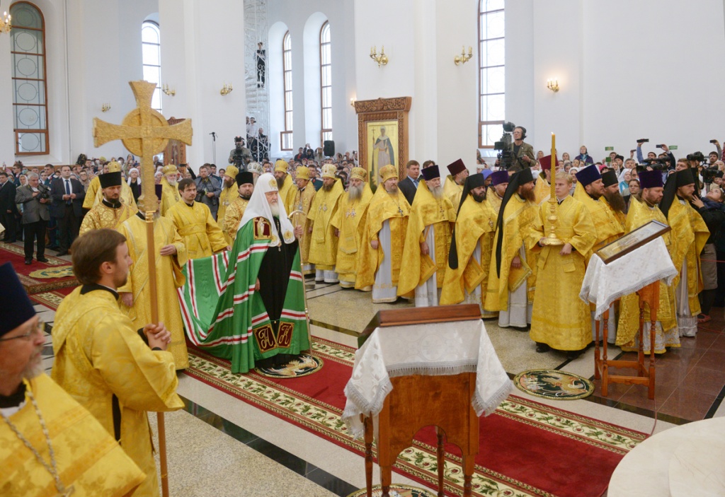 Предстоятель Русской Церкви совершил освящение верхнего храма Троице-Владимирского собора г. Новосибирска