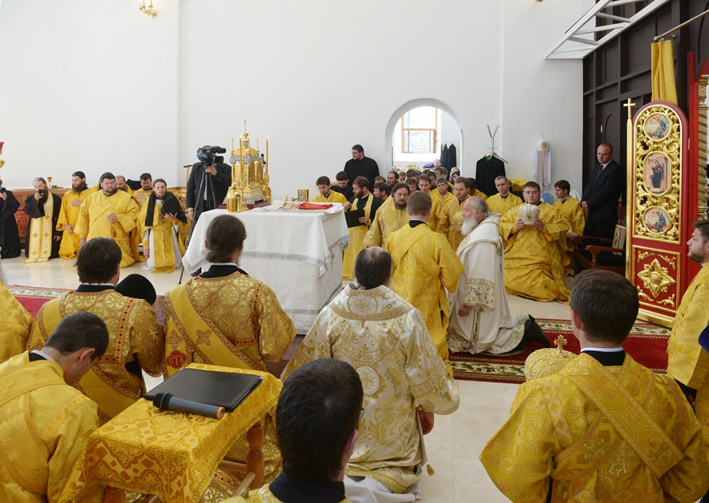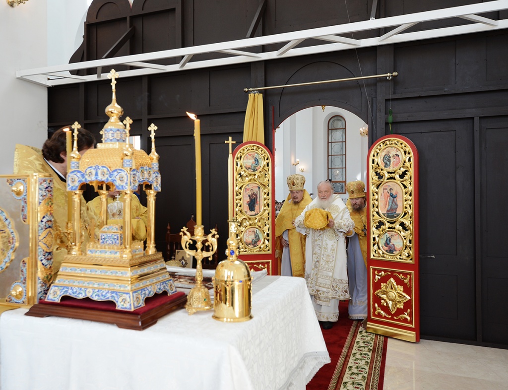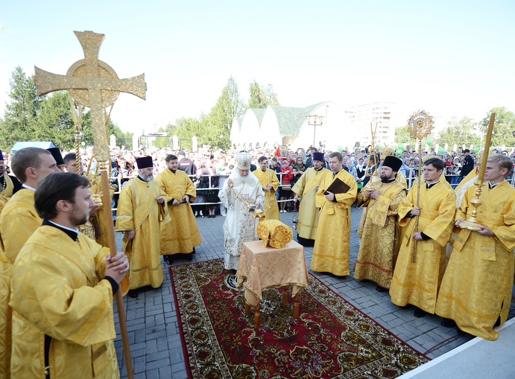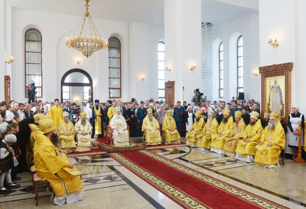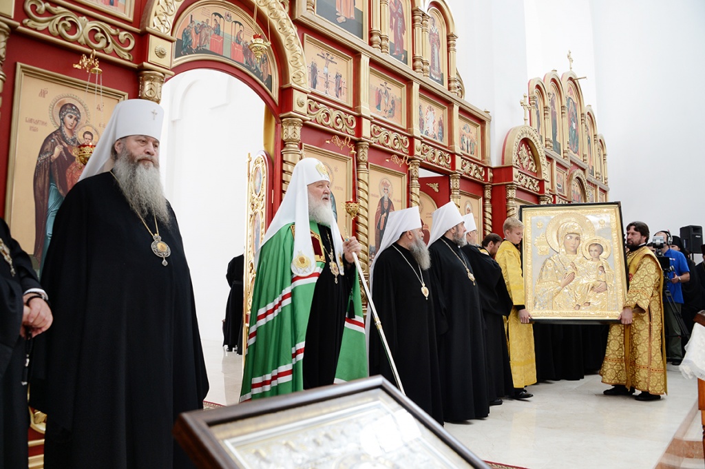 Предстоятель Русской Церкви совершил освящение верхнего храма Троице-Владимирского собора г. Новосибирска