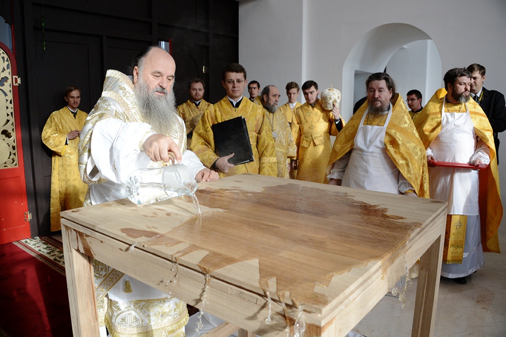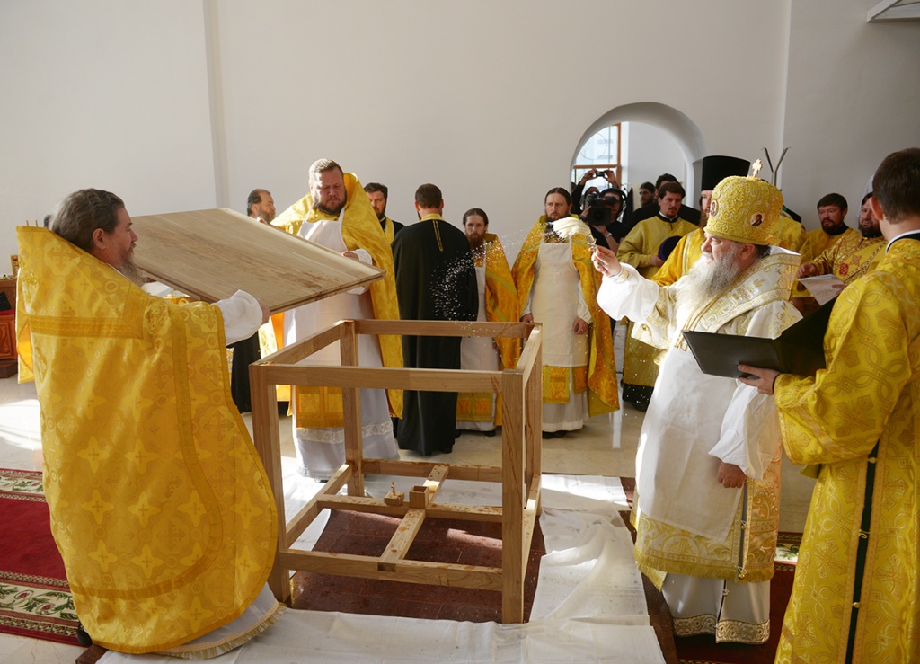 24 августа 2013 года, в ходе Первосвятительского визита в Новосибирскую митрополию, Святейший Патриарх Московский и всея Руси Кирилл совершил чин великого освящения в честь святого равноапостольного великого князя Владимира верхнего храма Троице-Владимирского собора г. Новосибирска и возглавил Божественную литургию в новоосвященном храме.