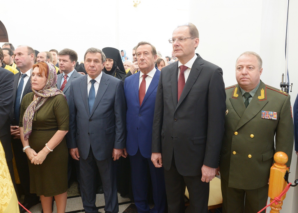 На богослужении присутствовали губернатор Новосибирской области В.А. Юрченко, председатель Законодательного собрания Новосибирской области И.Г. Мороз, мэр г. Новосибирска В.Ф. Городецкий, председатель Синодального информационного отдела В.Р. Легойда, благотворители и строители собора.