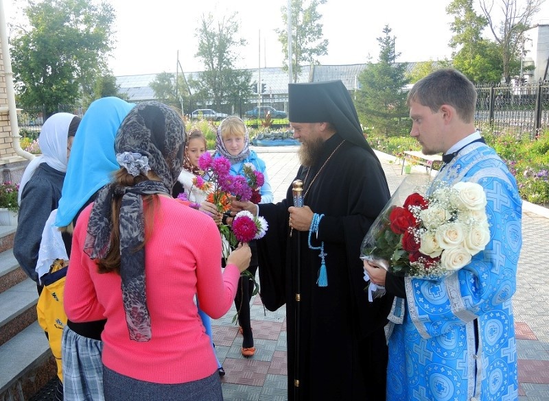 Архиерейская литургия и благословение детей на учёбу (видео)Накануне 30 августа Его Преосвященство епископ Филипп совершил чин погребения плащаницы Пресвятой Богородицы в Кафедральном соборе св. апостола Андрея Первозванного г. Карасука, во время которого был совершён крестный ход с плащаницей вокруг собора. 1 сентября/воскресение. Неделя 10-я по Пятидесятнице. Его Преосвященство епископ Филипп возглавил Божественную литургию в Кафедральном соборе св. апостола Андрея Первозванного г. Карасука. Его Преосвященству сослужили иерей Игорь Непша и иерей Сергий Шишов. По окончании Божественной литургии состоялся традиционный молебен перед началом учебного года. Затем Владыка окропил всех учащихся святой водой и дал им святительское благословение на учёбу. В проповеди Владыка рассказал прихожанам о приезде Святейшего Патриарха Кирилла в Новосибирскую митрополию, а также о том, что было подписано Соглашение губернатора Новосибирской области Василия Юрченко с митрополитом Новосибирским и Бердским Тихоном о строительстве 120 храмов в Новосибирской митрополии. Владыка сказал и о том, что православная молодёжь должна стремиться получить не только светское образование, но и духовное, тем более что в Новосибирске находятся Православная Духовная семинария и Свято-Макарьевский Православный Богословский институт, регентские и иконописные классы. И в заключение Владыка пожелал всем учащим и учащимся помощи Божией в предстоящем учебном году.