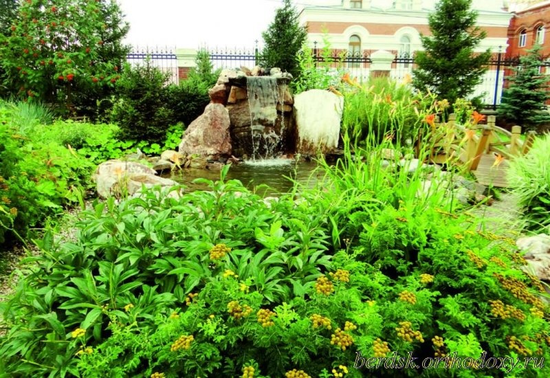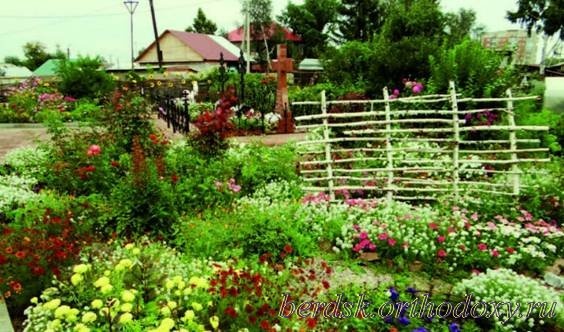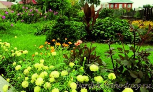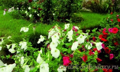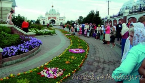 Цветник у храмаВо все века на Руси православные храмы являлись основной составляющей частью поселения, независимо от размеров того и другого. Наверное, излишне напоминать, что храм или просто церковь были местом не только ритуальным, но и местом, куда люди спешили практически во всех жизненных ситуациях. Праздничные службы, радость венчания, светлая печаль при отпевании и проводах в мир иной, благодарственные молебны и мольбы о спасении. Не только православные, но и светские праздники, к которым относились, например такие, как рождение наследника престола, праздники по случаю больших и малых побед - «За веру, царя, и отечество», все эти события, как правило, отмечались народом, как в самих церквях и храмах, так и на прихрамовых территориях - подворьях. В годы советского безвременья многие храмовые и просто народные традиции были забыты или вовсе утрачены. Сейчас постепенно идет возрождение традиций. Люди потянулись в храмы, в культурные центры при них, библиотеки. Тем родителям, кому посчастливилось определить своих детей в православные гимназии, неподдельно рады этому факту. Постепенно, шаг за шагом, Церковь возвращает былую культуру, приобщая к православному образу жизни все большее количество людей. Наглядным и даже во многом поучительным примером тому может послужить Преображенский собор города Бердска. Само здание собора выглядит величественно и благообразно благодаря соответствующей архитектуре, и об этом было написано уже немало. А вот о вот его подворье говорится очень мало, хотя сказать и рассказать, и главное посмотреть там есть на что. Более того, положа руку на сердце, можно признать и констатировать тот факт, что такого великолепного цветника, какой с любовью и настоящим профессионализмом разбит на подворье Преображенского собора, нет ни при одном храмовом подворье, включая сам Новосибирск и Область. Возможно, звучит это несколько вычурно, но если учесть, что речь идет о цветнике, то подобные эпитеты тут весьма уместны. Самое главное, что вся композиция цветника, занимающая, к слову, очень большую территорию, продумана до мелочей и не несет в себе ничего лишнего. Десятки, если не сотни наименований различных цветочных и травяных культур, совершенно отличных друг от друга, собраны в единую цветочную композицию. Ближе к осени, к престольному празднику Преображения и Успения Богородицы, отмечаемым в конце августа, растения и цветы находятся на пике своего цветения, радуя взор всех приходящих в собор своей необыкновенной красотой. На вопрос, как же удается в условиях короткого и порой неласкового сибирского лета, выпестовать такую красоту, цветница при храме Нина Аркадьевна, не задумываясь, отвечает: Господь помогает. Я словно физически, своими руками ощущаю эту помощь. Мысли о дизайне композиции сами, в нужное время приходят в голову. Постепенно, с началом первых теплых дней и все лето, мы с женщинами, служащими при храме и с послушницами, заняты высаживанием разных сортов цветов и зеленых насаждений. Удобряем землю, обрабатываем от сорняков, при необходимости поливаем и культивируем. Надо заметить, что плоды такого старания воистину налицо. Своеобразным апофеозом в создании цветочной прихрамовой композиции, по традиции, из года в год становится светлый праздник Успения Пресвятой Богородицы. Как сказал в своей 