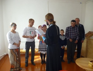 Литургия в храме села Зубково Краснозерского районаВ нашей епархии есть посёлки, где построен или восстановлен Храм Божий, но нет постоянного священнослужителя. В эти храмы раз в месяц приезжает священник для того, чтобы христиане могли участвовать в Таинствах Церкви. Вот и в селе Зубково в воскресный день, 22 сентября, православный люд смог помолиться в храме за Божественной литургией, исповедоваться и причаститься Святых Христовых Тайн. Несколько человек приняли Таинство Святого Крещения. Отрадно было видеть тот факт, что стараниями самих прихожан в храме поддерживается идеальный порядок: всё блестит свежеокрашенными поверхностями, накануне закончен ремонт кровли. Сейчас идут реставрационные работы над временно демонтированной “маковкой” храма, которая была в своё время изготовлена вручную местными умельцами. Её уникальность состоит в том, что каждая из деревянных “чешуек” – сегментов ромбовидной формы, из которых набирается сферическая поверхность, имеет размер всего с ладонь младенца! После её окраски и монтажа на кровле храма мы обязательно поместим фото этого произведения искусства в одной из последующих статей.