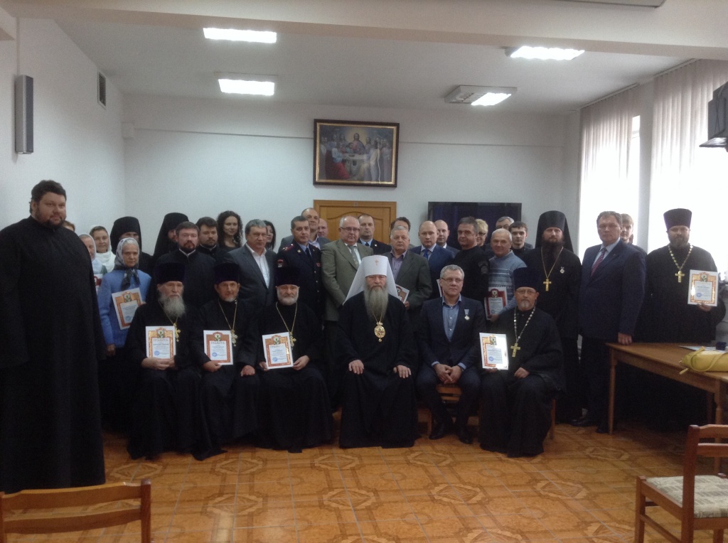 Митрополит Тихон: Каждый визит Святейшего Патриарха - это новая страница в истории городаМитрополит Тихон вручил награды к 1025-летию Крещения Руси. Владыка наградил Архиерейскими грамотами и благодарственными письмами сотрудников Епархиального управления, представителей власти и бизнеса. Также Митрополит Тихон отметил наградами духовенство, строителей, сотрудников и прихожан Троице-Владимирского собора за помощь в благоустройстве собора и своевременное завершение строительных работ. Напомним, что 24 августа Патриарх Кирилл совершил освящение верхнего храма Троице-Владимирского собора. "Сделано большое дело - в юбилейный год, когда празднуется 1025-летие Крещения Руси, мы подтвердили, что вера православная сохранена, что мы верны традициям наших святых предков, которые приняли христианство и тем самым приобщили Русь к мировой цивилизации, - обратился к собравшимся Митрополит Тихон. - У нас единое прошлое и, надеюсь, единое будущее. Каждый на своем месте исполняет послушание, и делает это во благо России и нашего города. Каждый визит Святейшего Патриарха - это новая страница в истории города. Нынеший визит - особый, он впишет особую страницу в историю. Мы пообещали Патриарху, что будем хранить православную веру и традиции предков. Благодарю всех за труды".