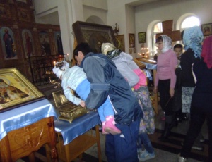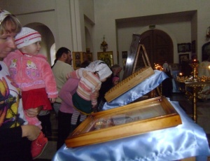 Христианские святыни в Чистоозерном районеС 28 сентября по 1 октября 2013 г. в Чистоозерном районе побывали христианские святыни. Люди нескончаемым потоком шли поклониться Честному и Животворящему Кресту Господню, святым угодникам. Святыни побывали в храме в честь Успения Пресвятой Богородицы р. п. Чистоозерного, в храме во имя прп. Сергия Радонежского с. Табулги ИК-15/91, в храме в честь Покрова Пресвятой Богородицы с. Покровки, в храме во имя св. благоверного князя Александра Невского с. Барабо-Юдино. Отец Михаил Прут с отеческой любовью обращался ко всем прихожанам, призывал к христианским добродетелям.